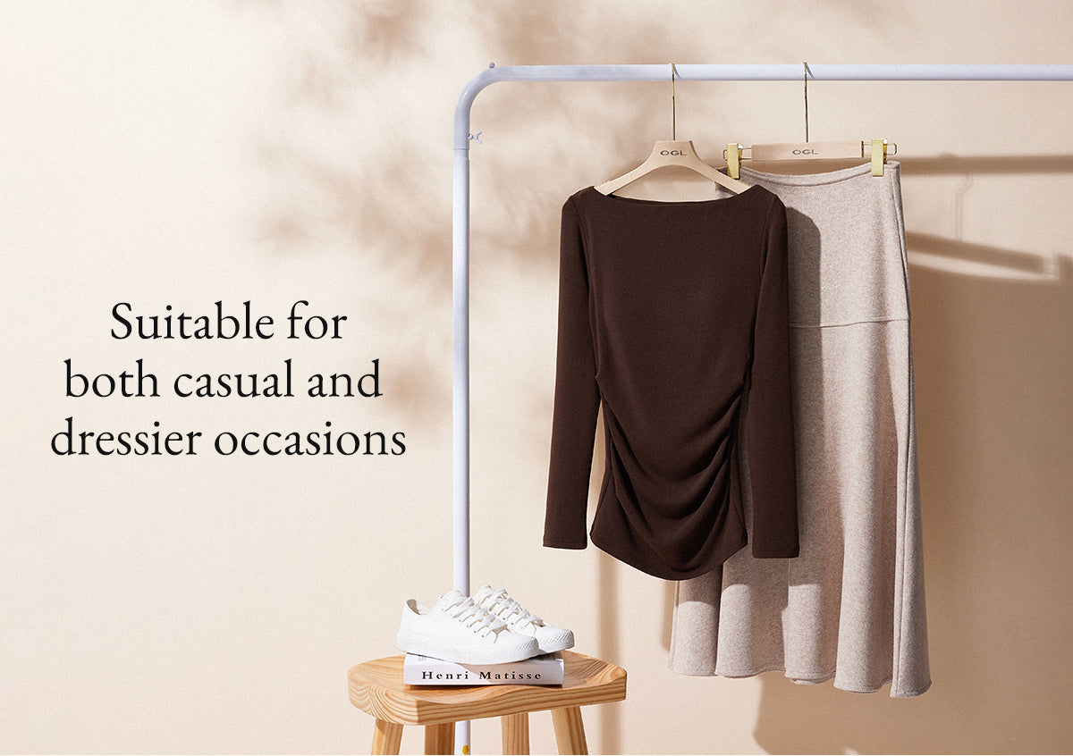 2Pcs Set Boatneck Tucks Brami Top & Flared Maxi Skirt