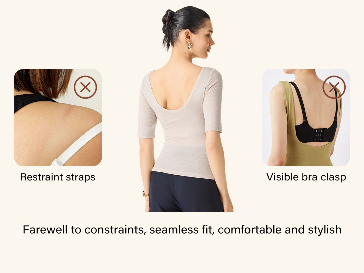 2Pcs Set Lyocell Cashmere Boatneck Elbow Length Sleeve Brami