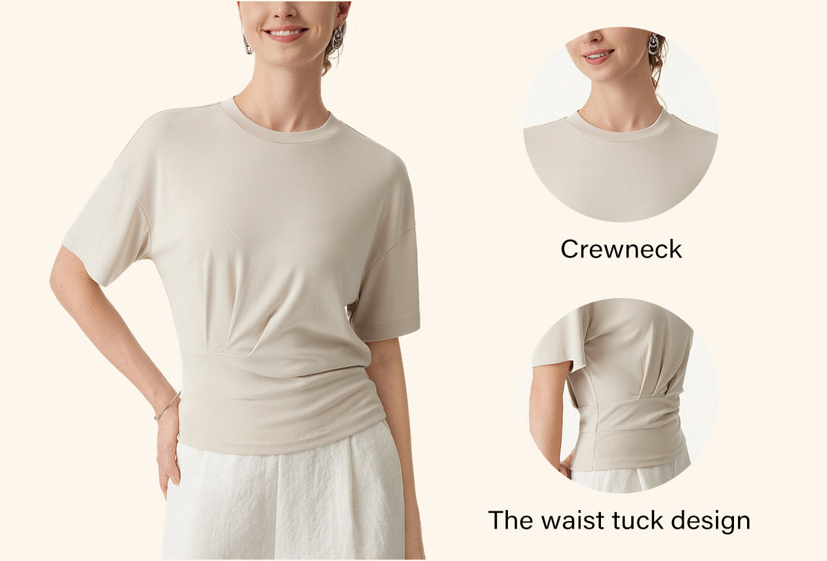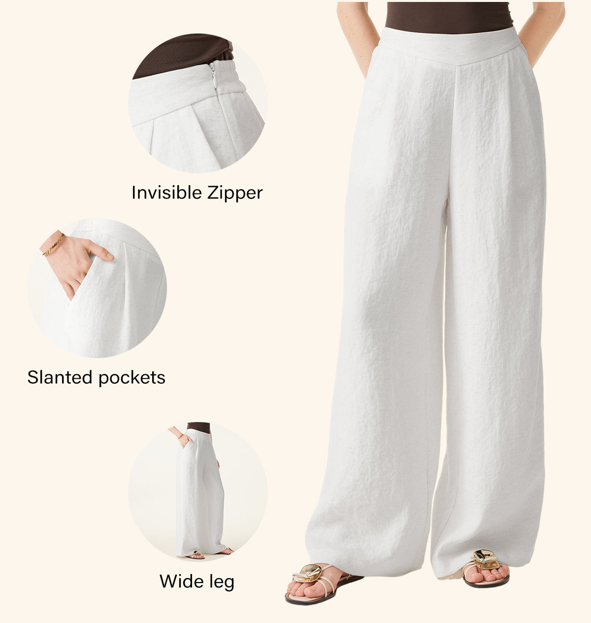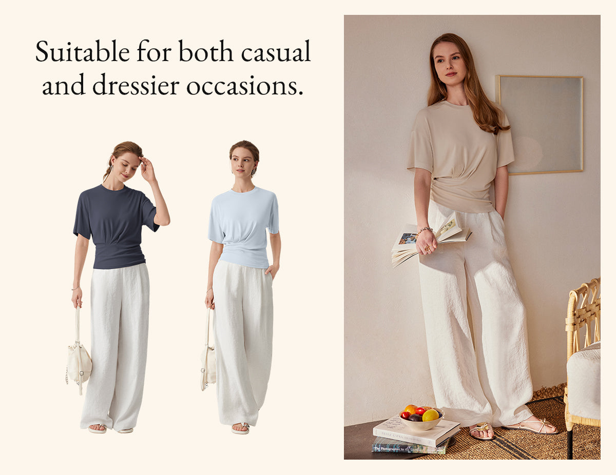 • 2Pcs Set Sandwashed Crewneck Short Sleeve Tee & Linen Mid Rise Wide Leg Pant with Pockets