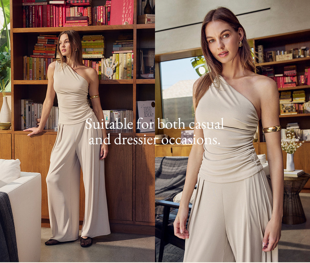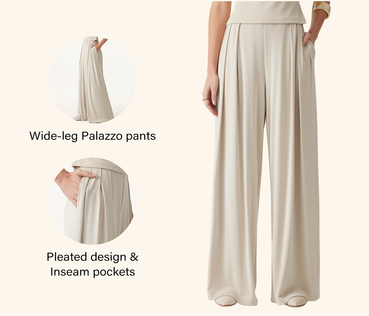 • 2Pcs Set Sandwashed Ruched Brami & Mid Rise Wide Leg Palazzo Pants with Pockets