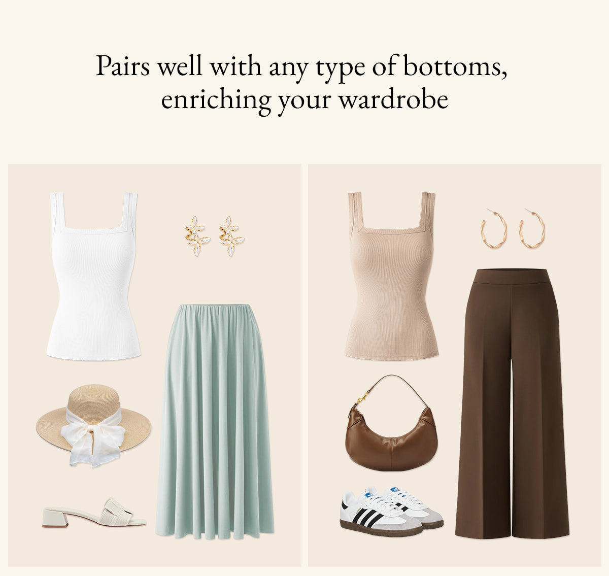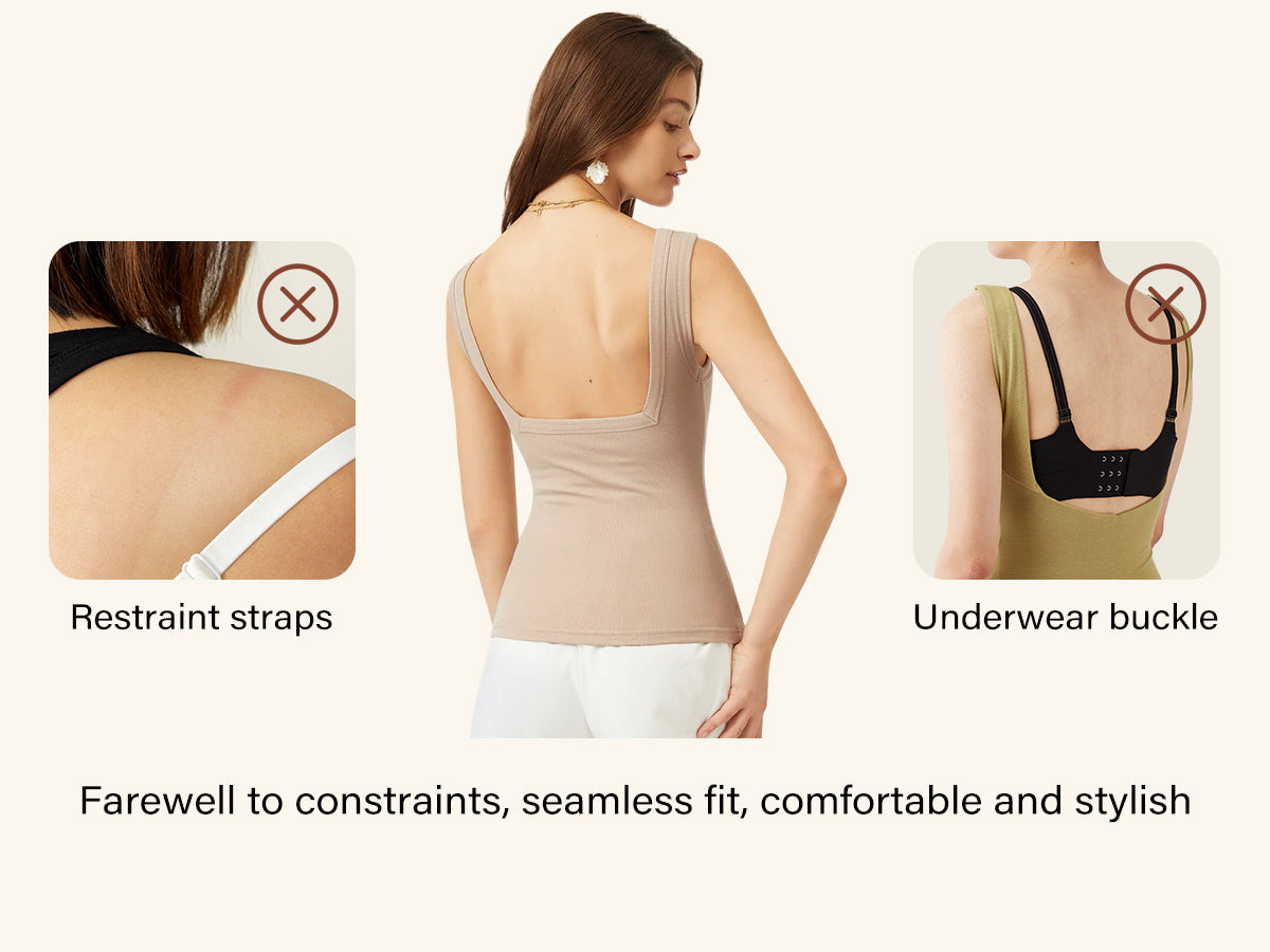 2Pcs Set Cropped Slinky Square Open-Back Brami Tank Top