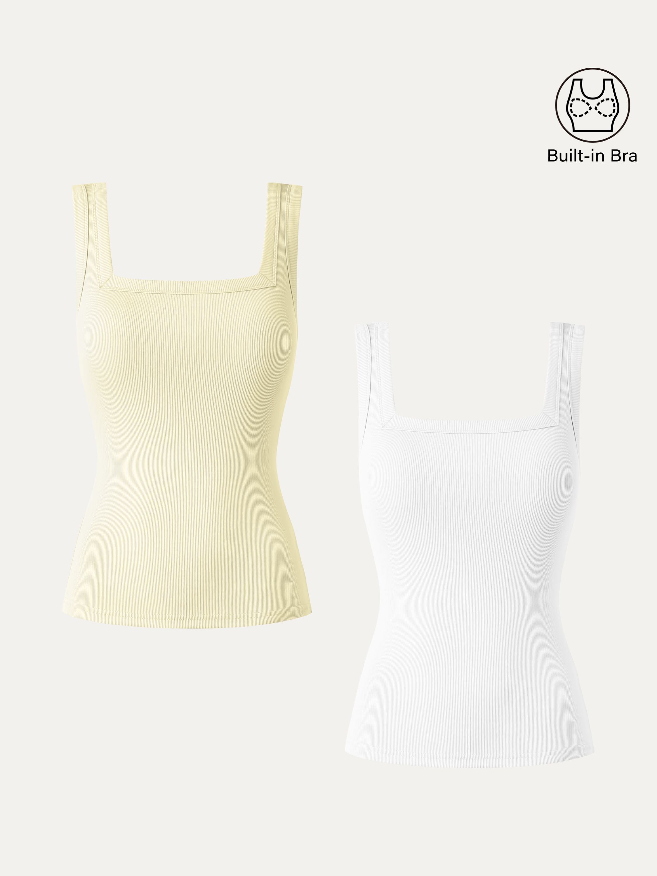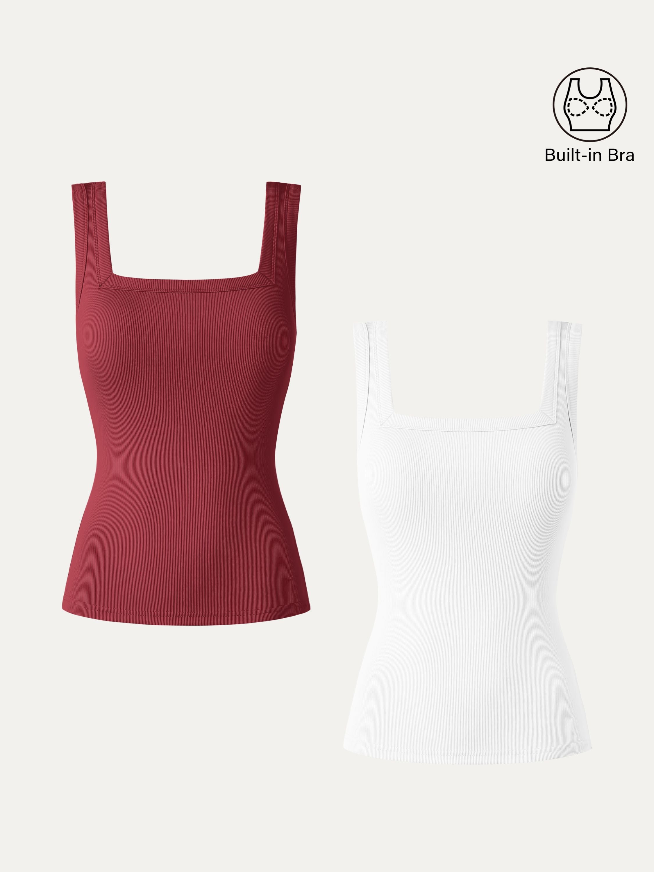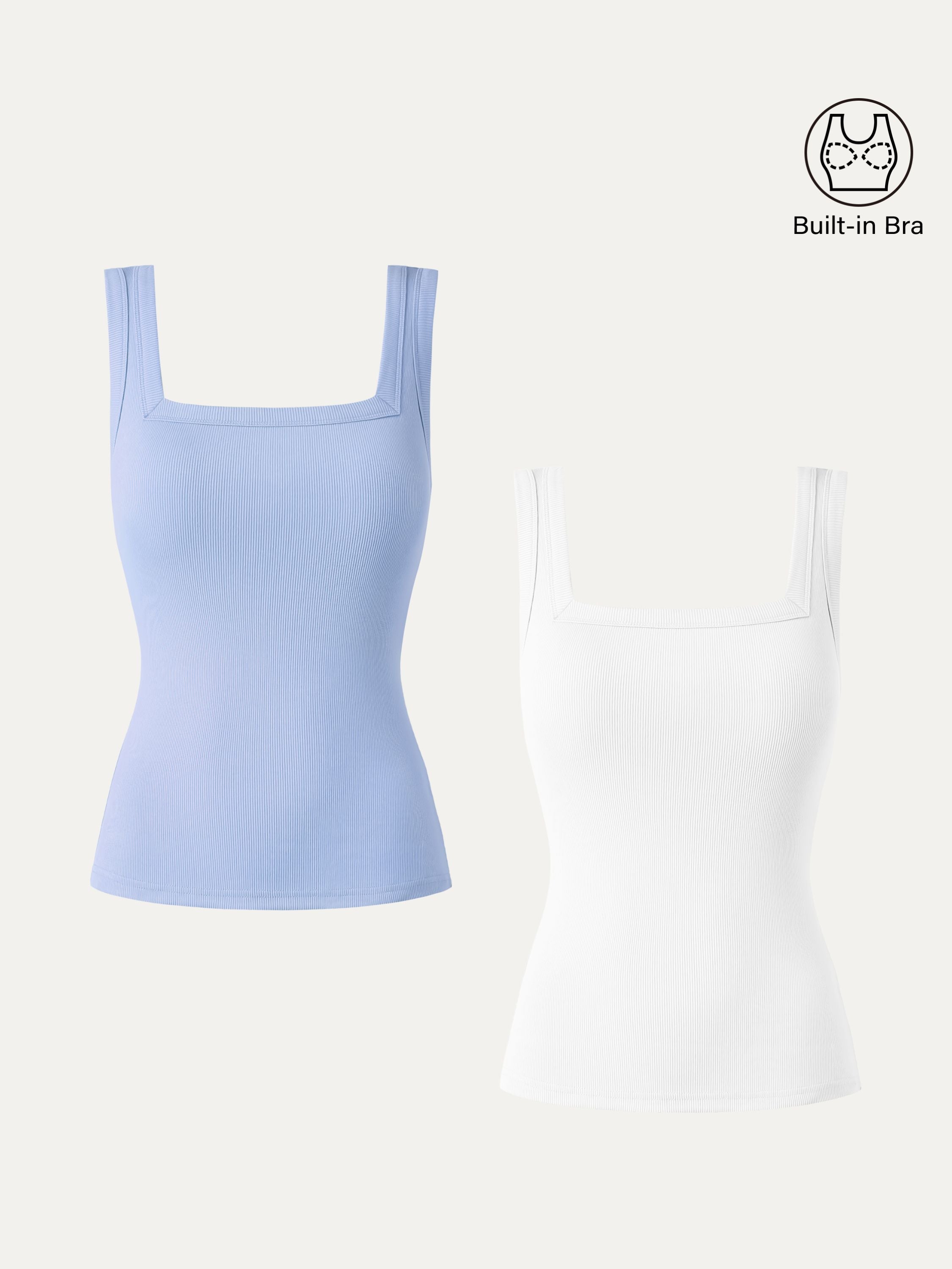 2Pcs Set Regular Slinky Square Open-Back Brami Tank Top