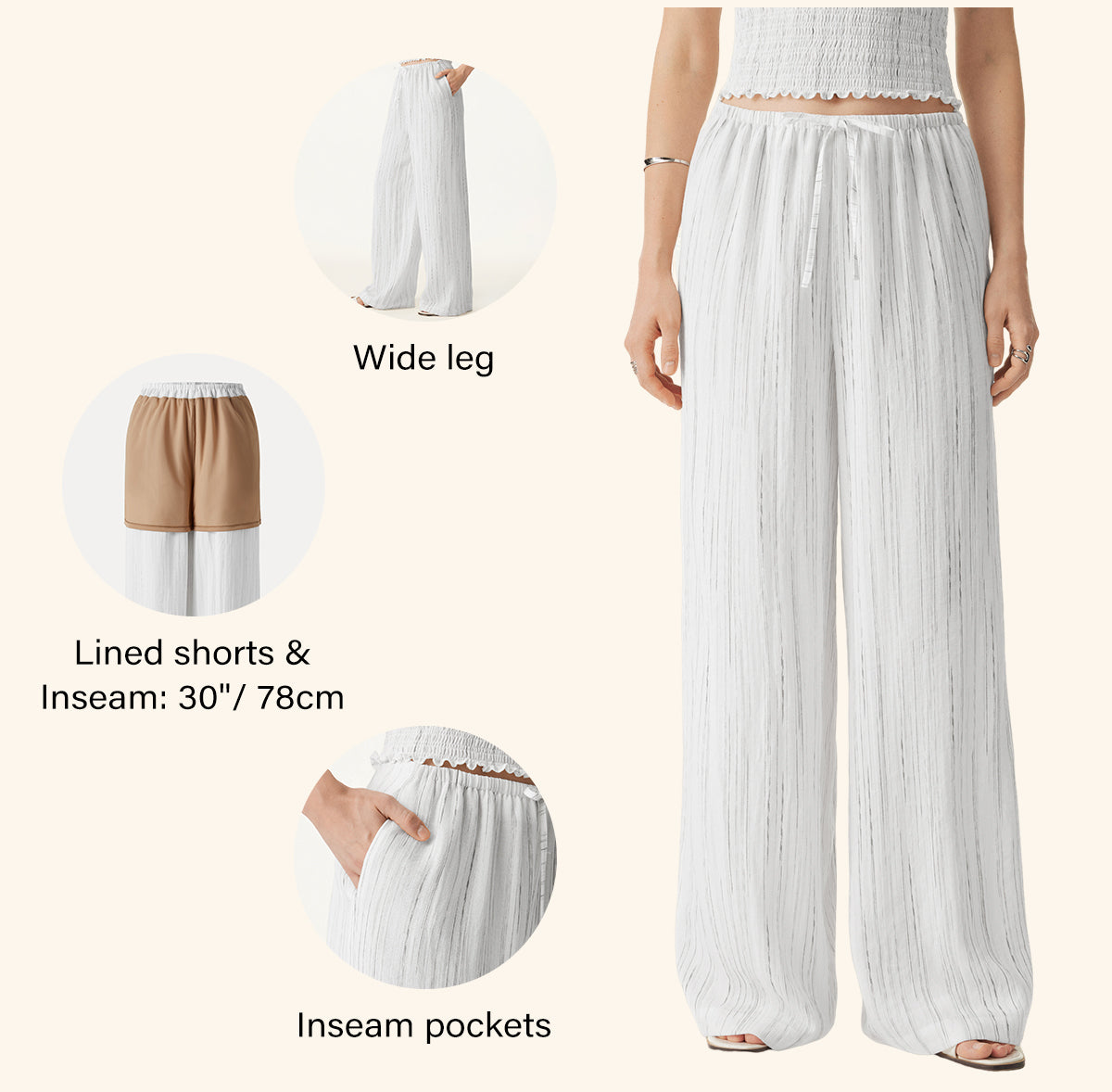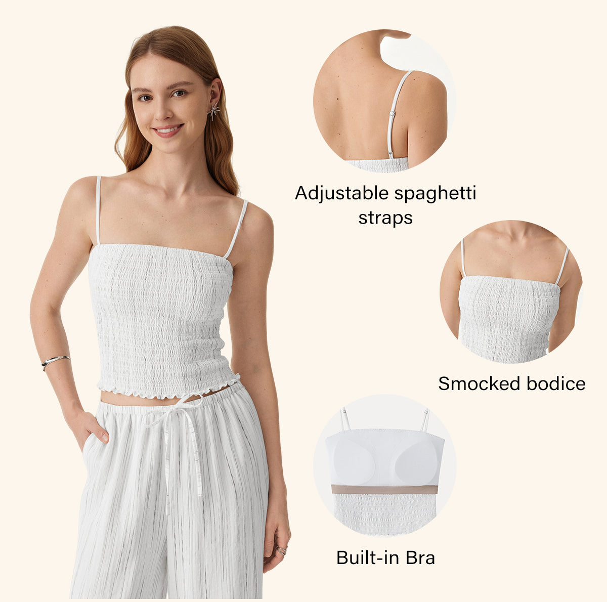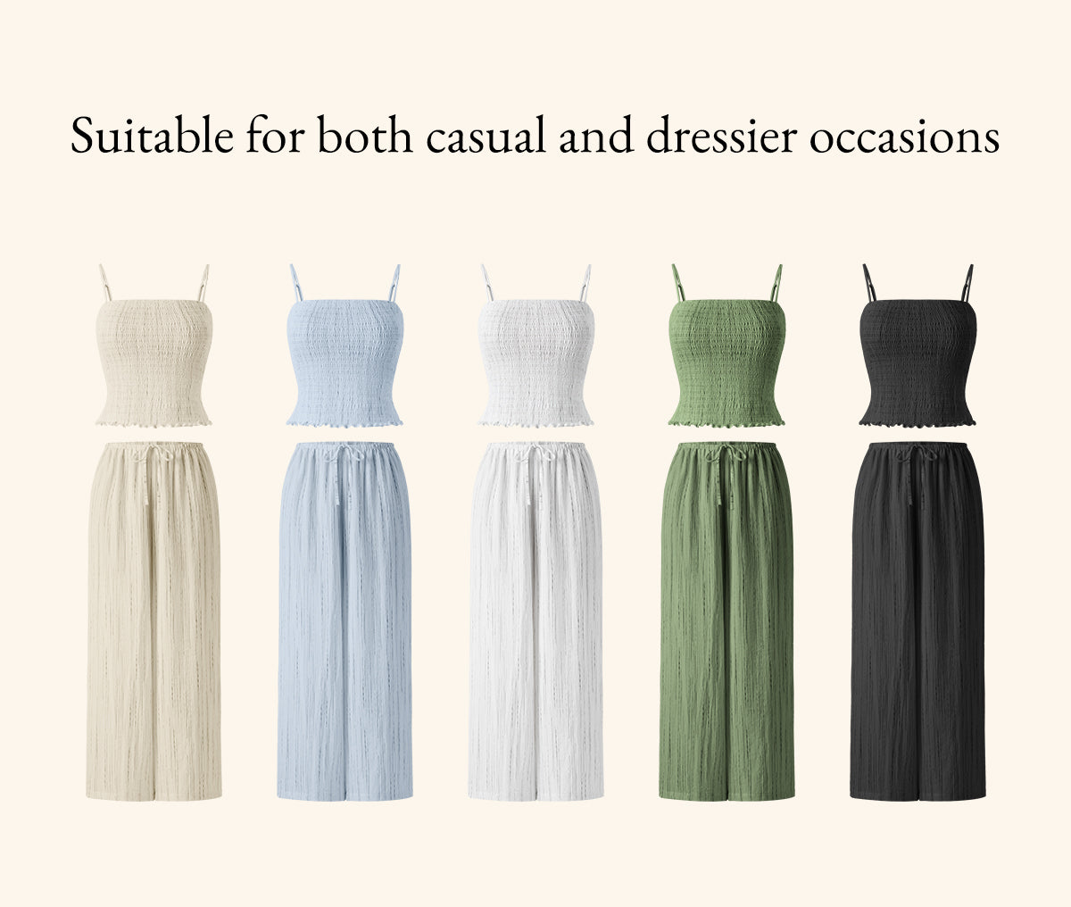 • 2Pcs Set Striped Adjustable Spaghetti Brami & Striped Wide Leg Pants with Pockets