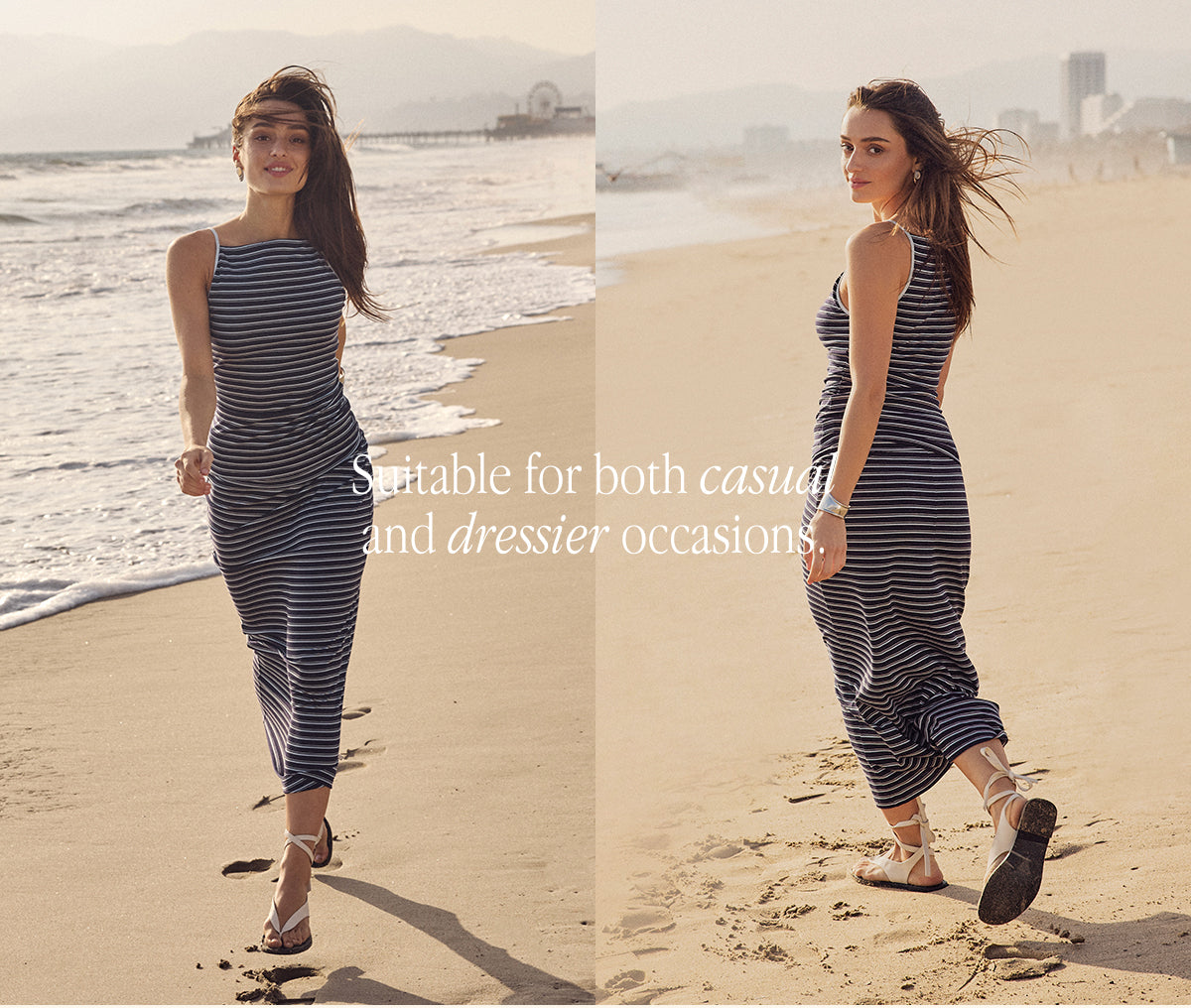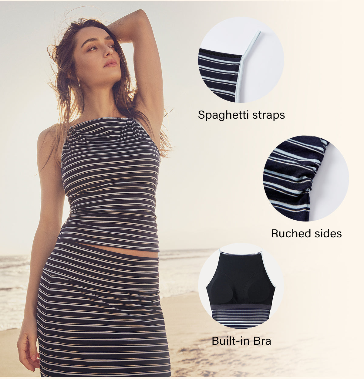 2Pcs Set Striped Spaghetti Brami & Low Rise Striped Midi Skirt