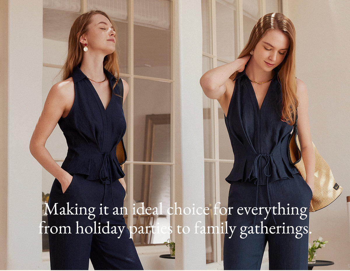 Collared V-neck Pleated Sleeveless Top with Drawstring