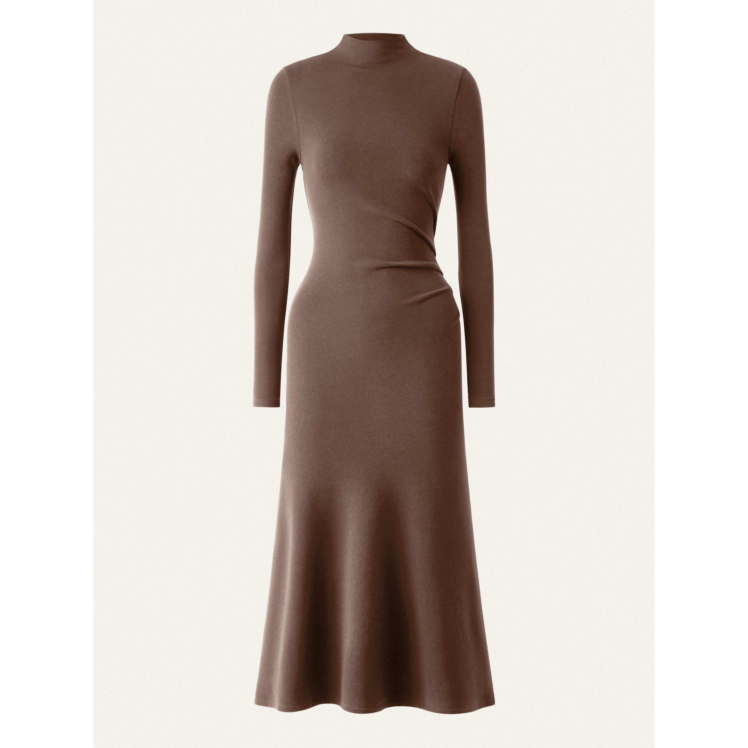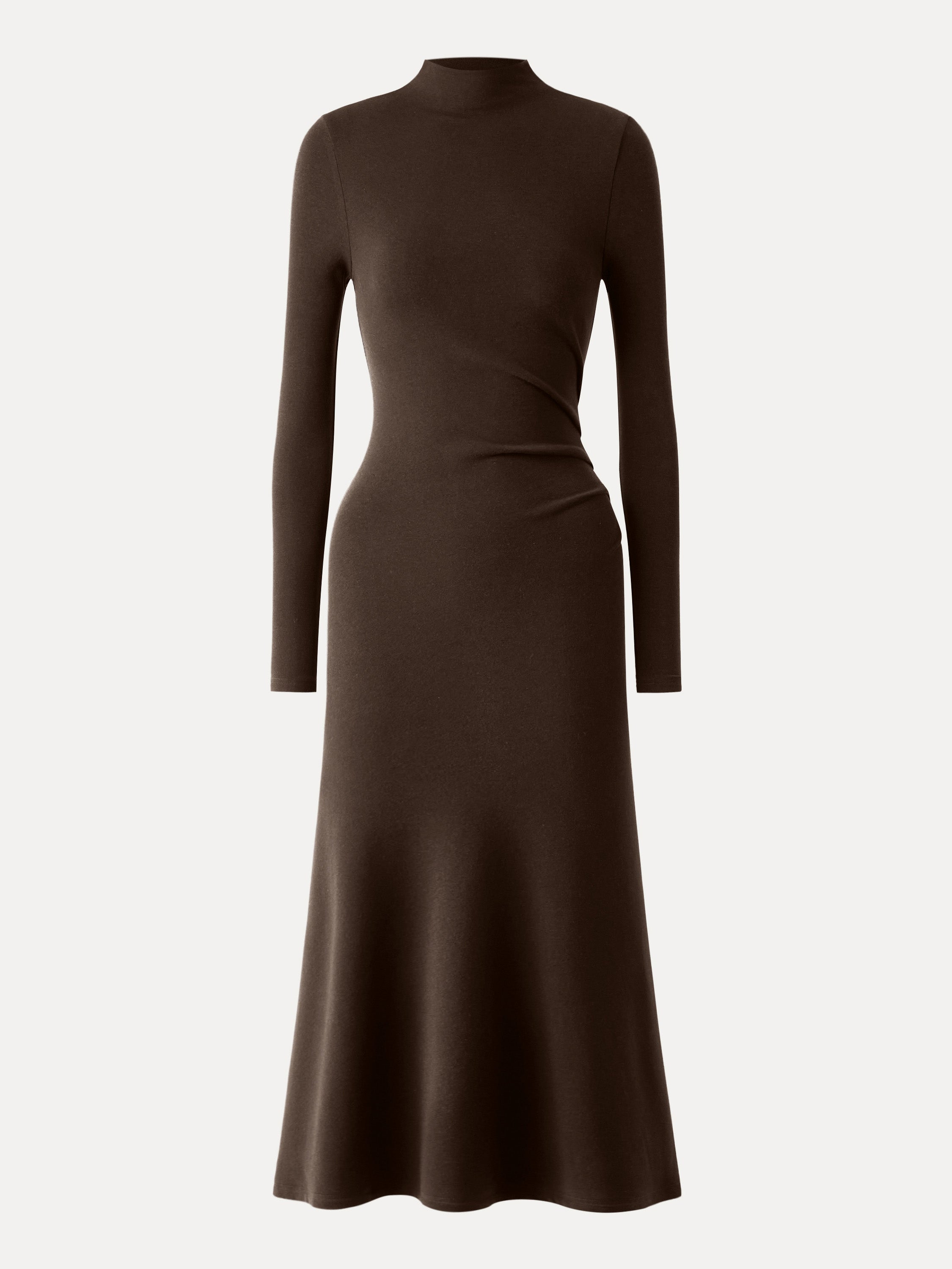 Heat-Tech Long Sleeves Mockneck Tucks Midi Dress