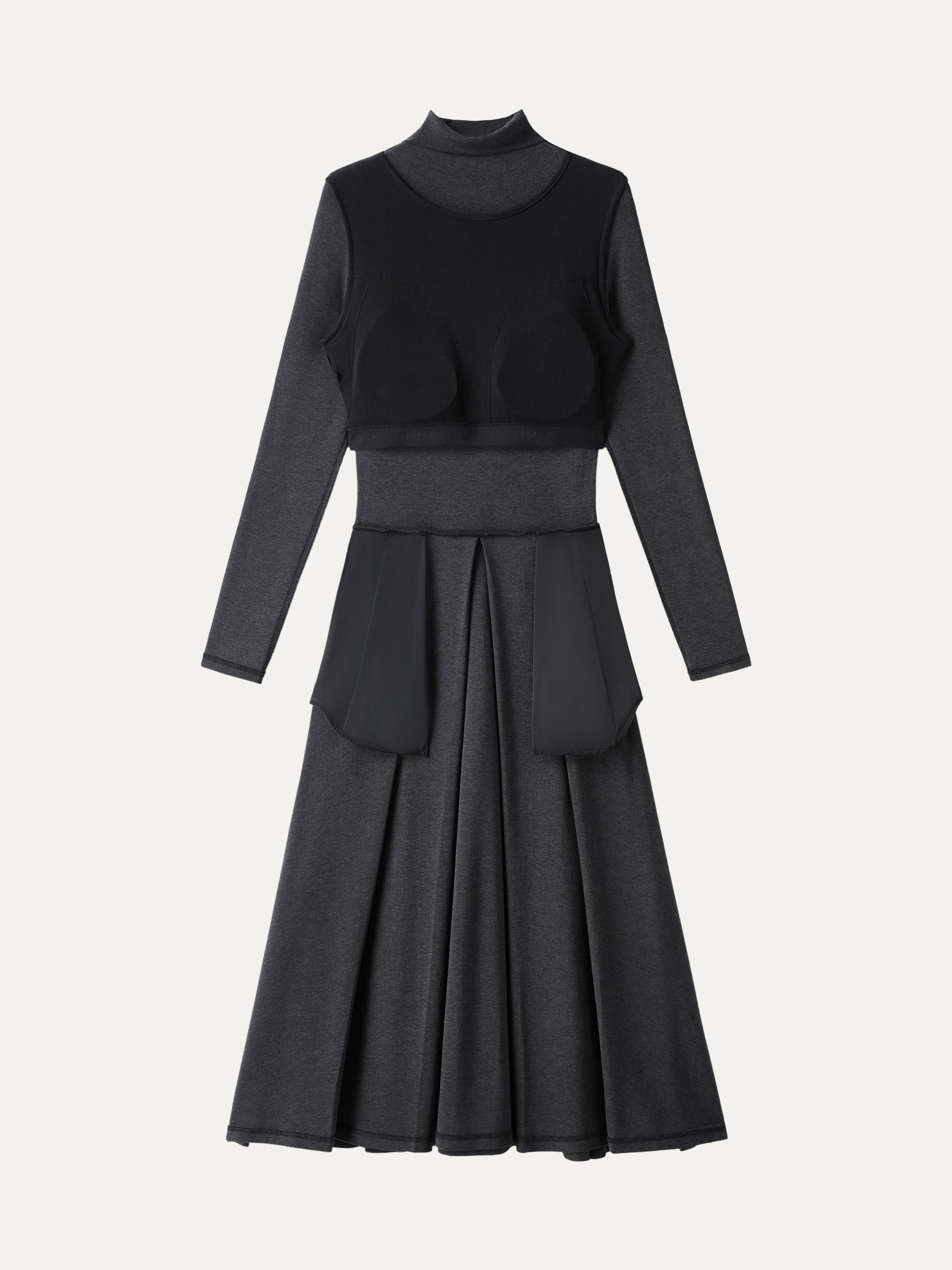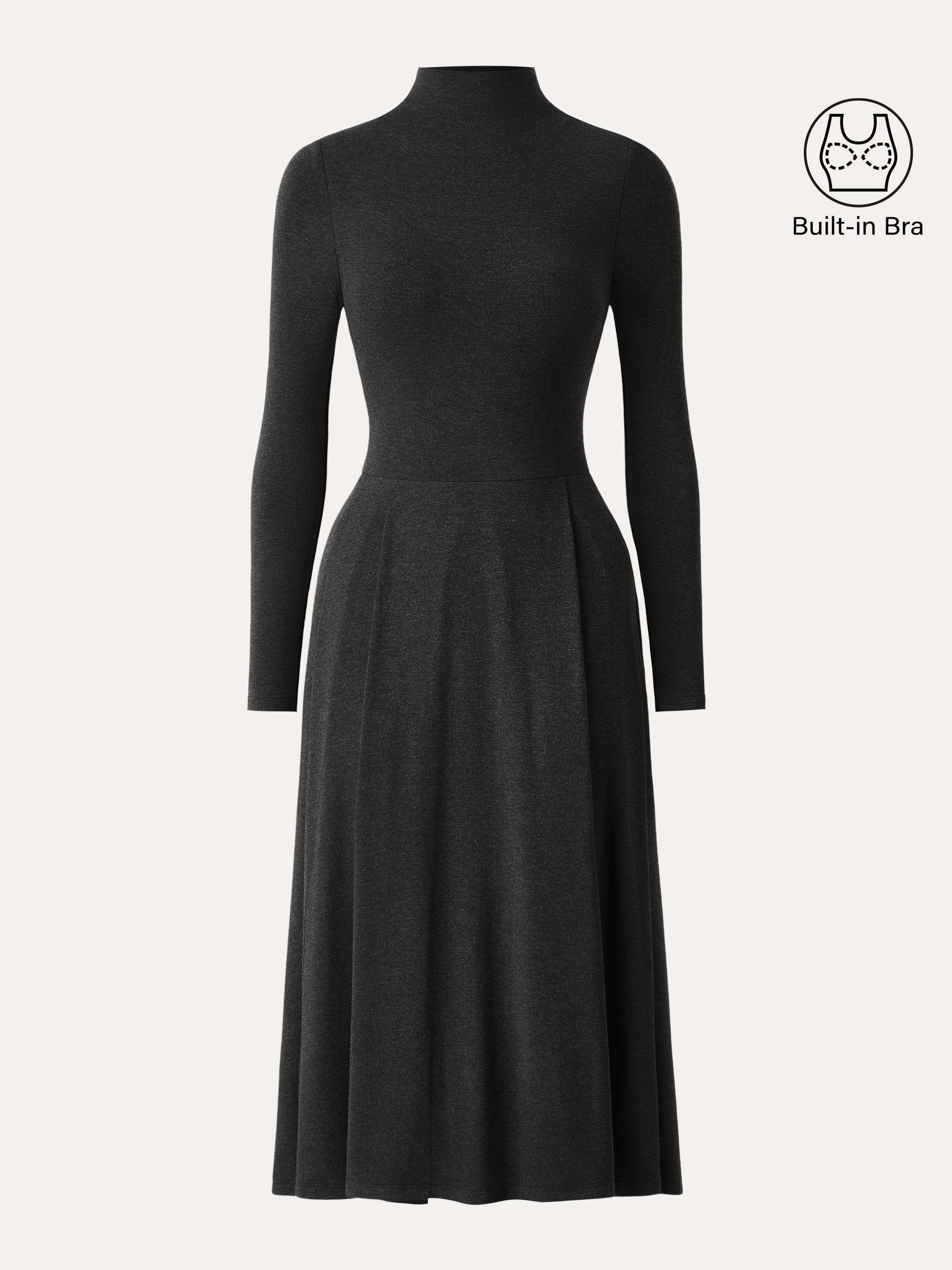 Light Warm Mockneck Pleated Midi Brami Dress with Pockets