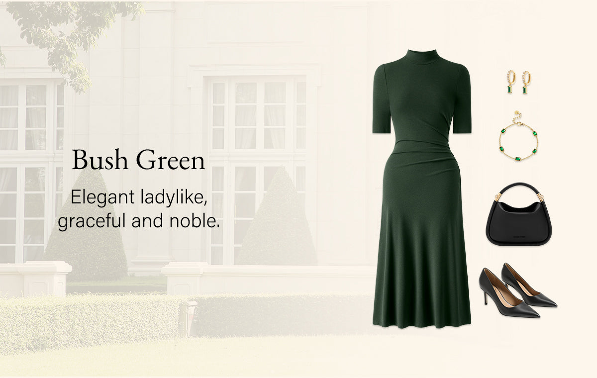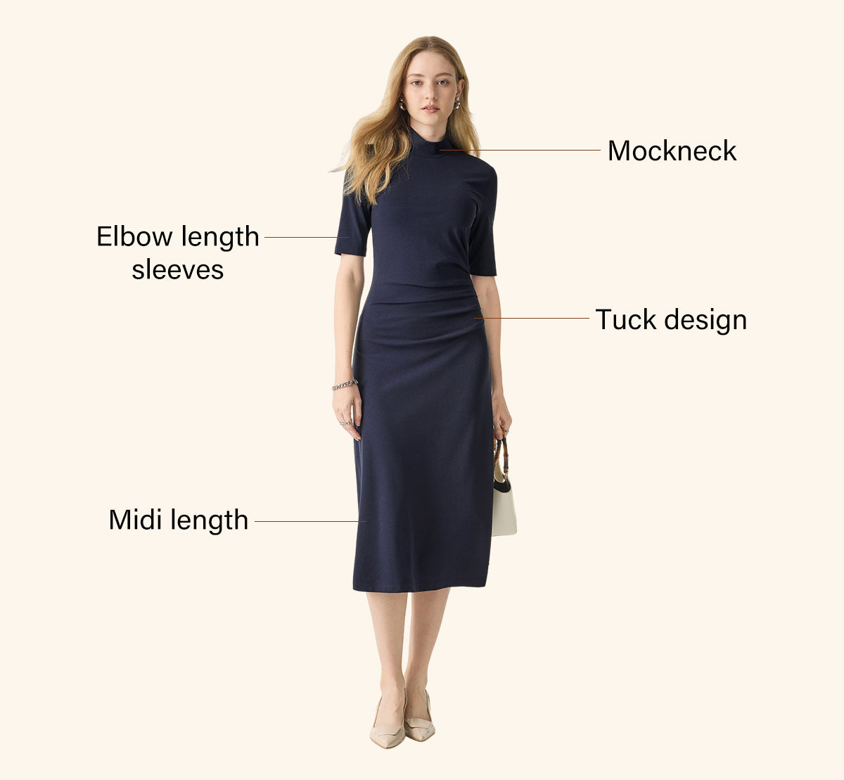 Mockneck Elbow Length Sleeve Tucked Midi Dress