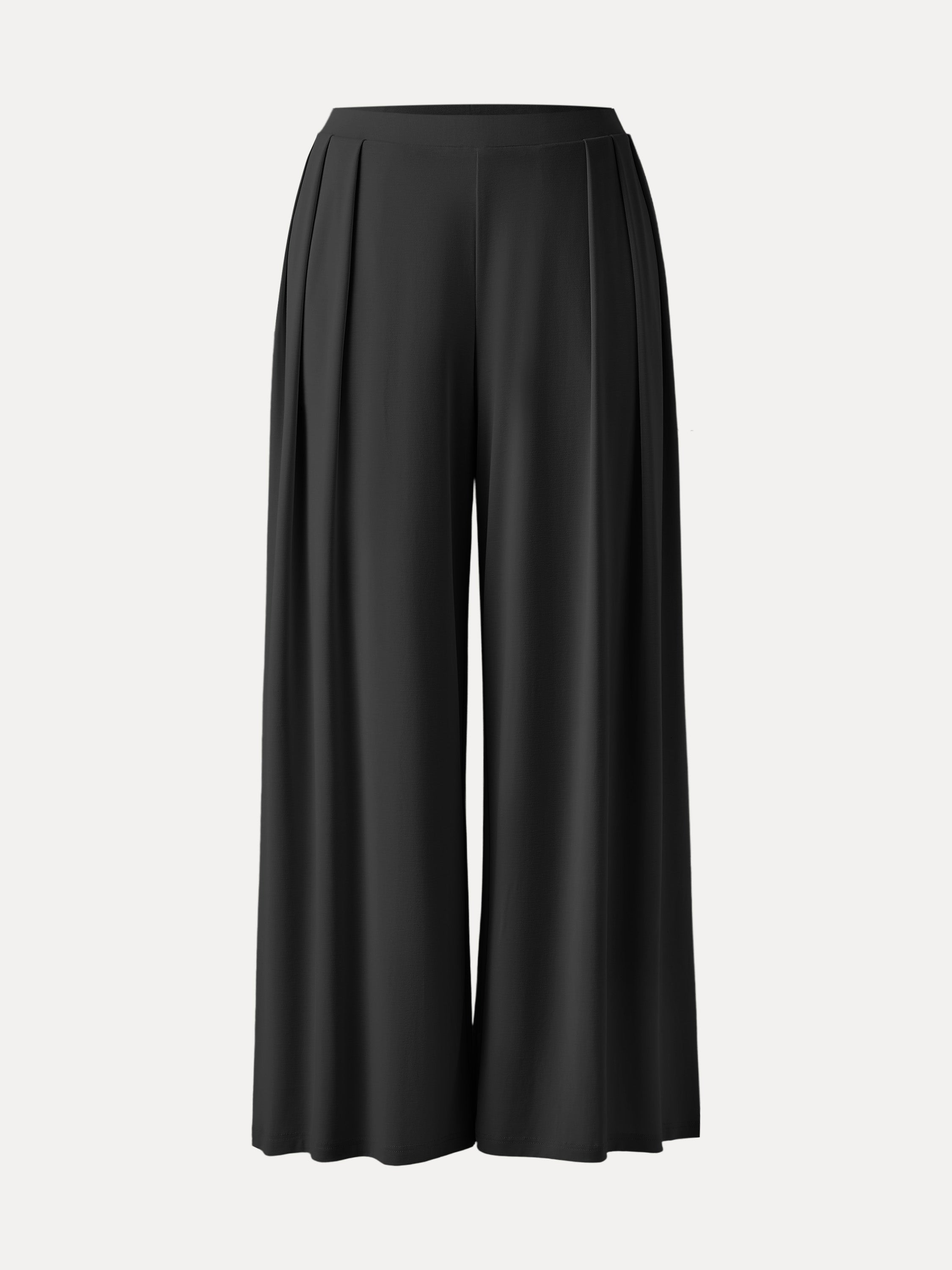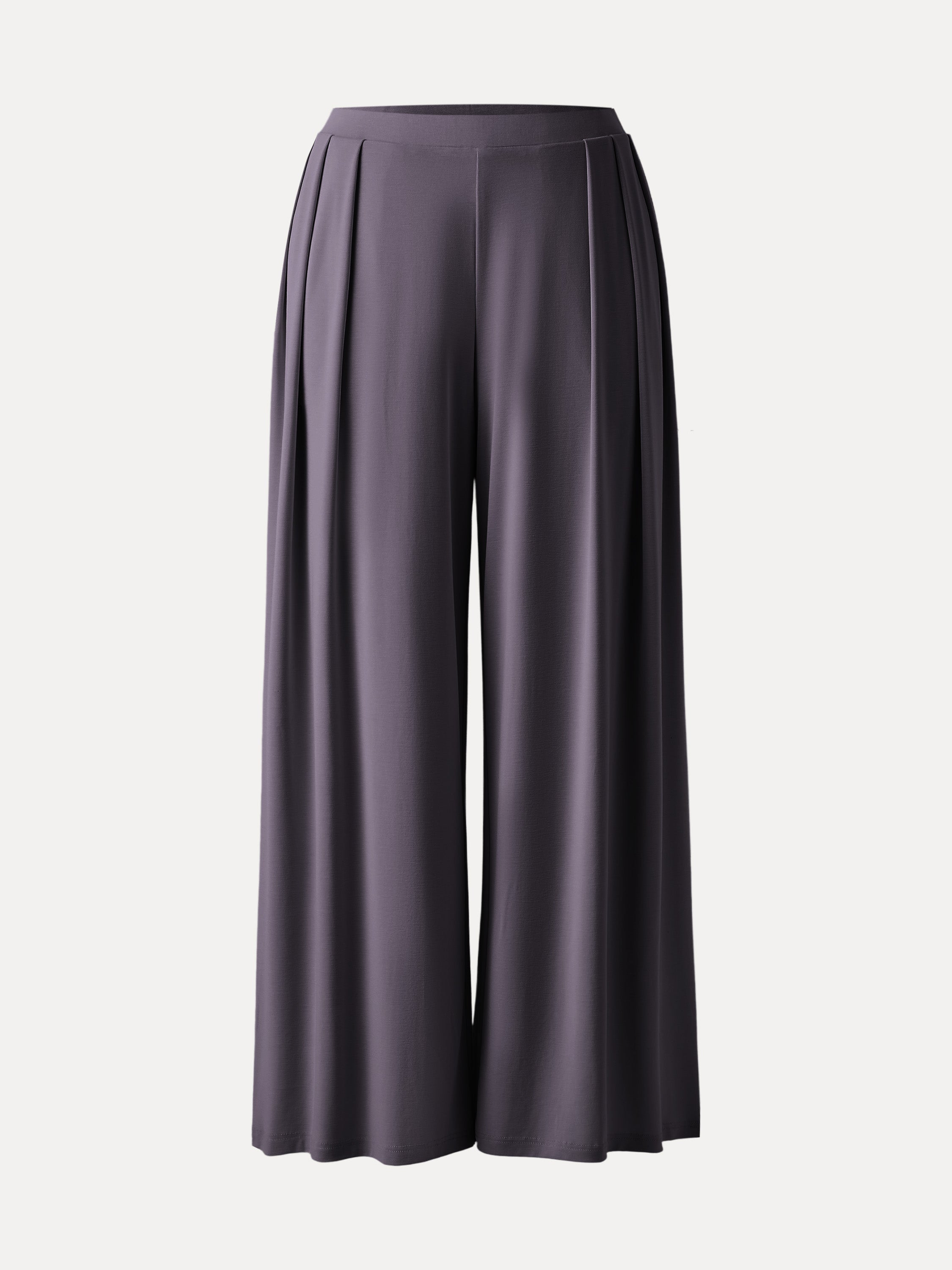 Sandwashed Mid Rise Pleated Wide Leg Palazzo Pants with Pockets