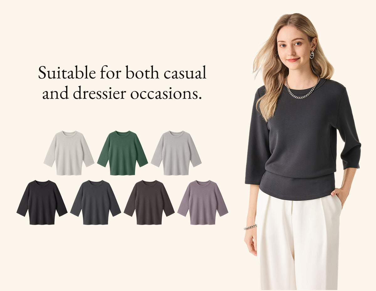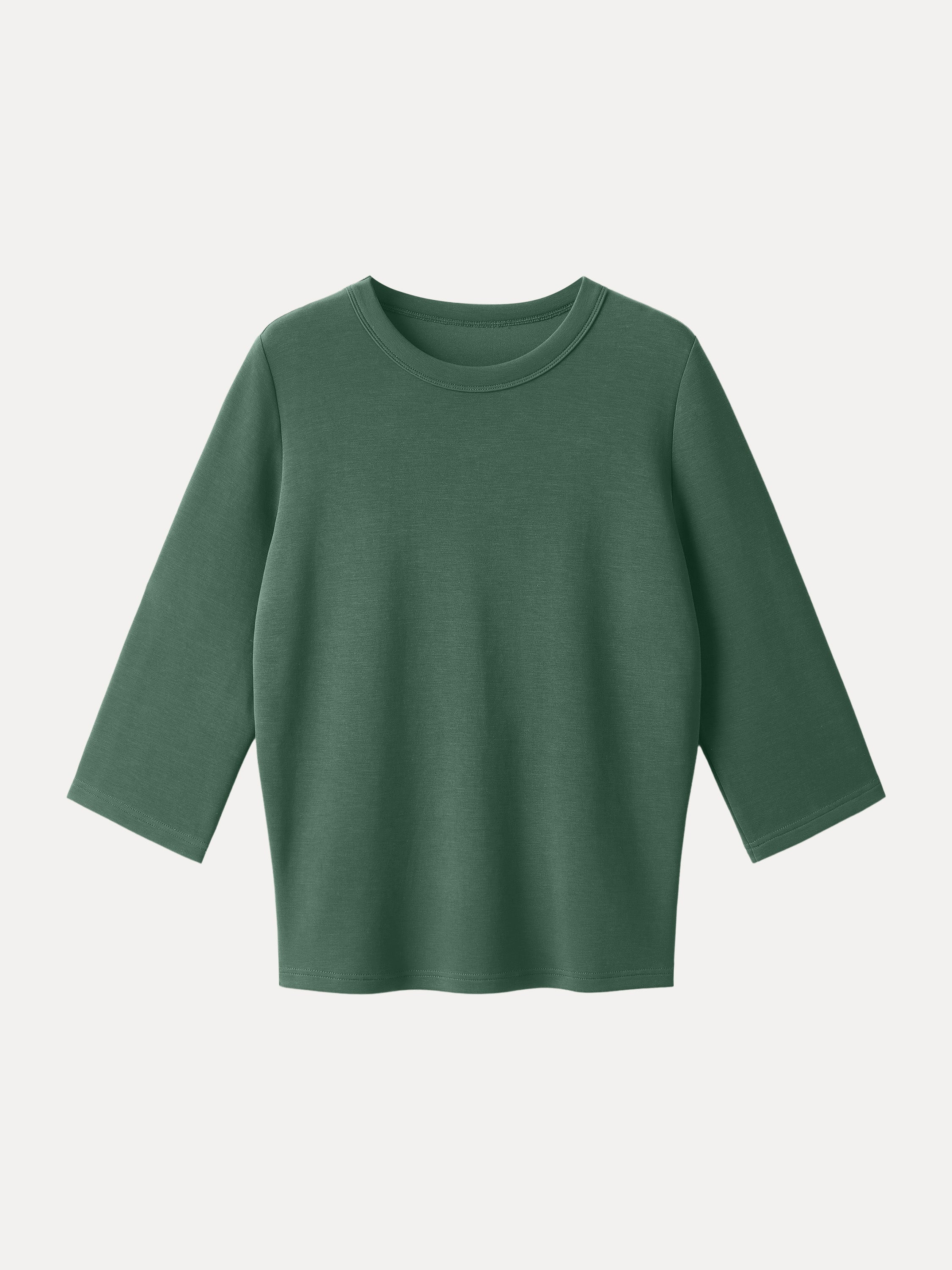 Sandwashed Spacer Crewneck 3/4 Sleeve Top
