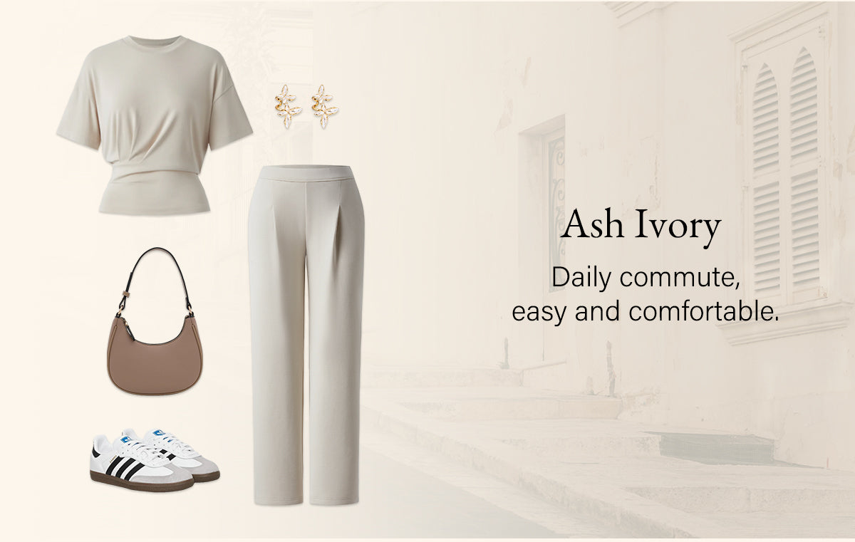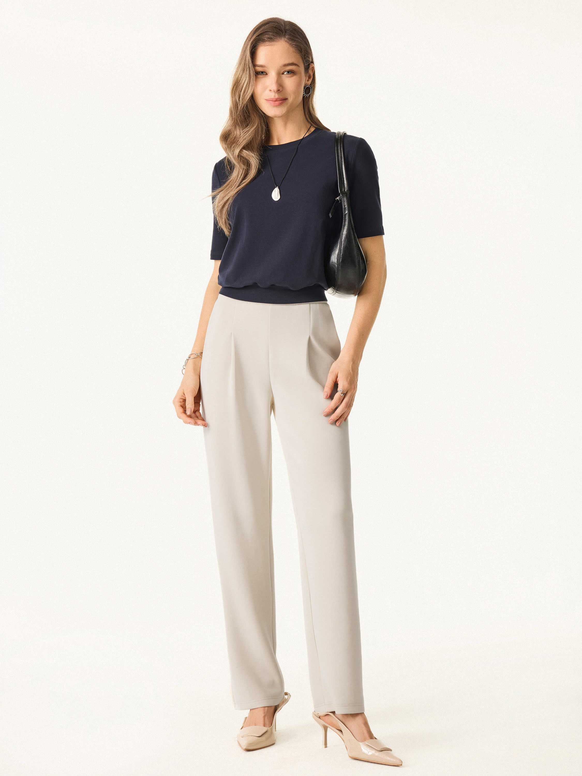 Sandwashed Spacer Mid Rise Straight Leg Pull-on Trousers with Pockets