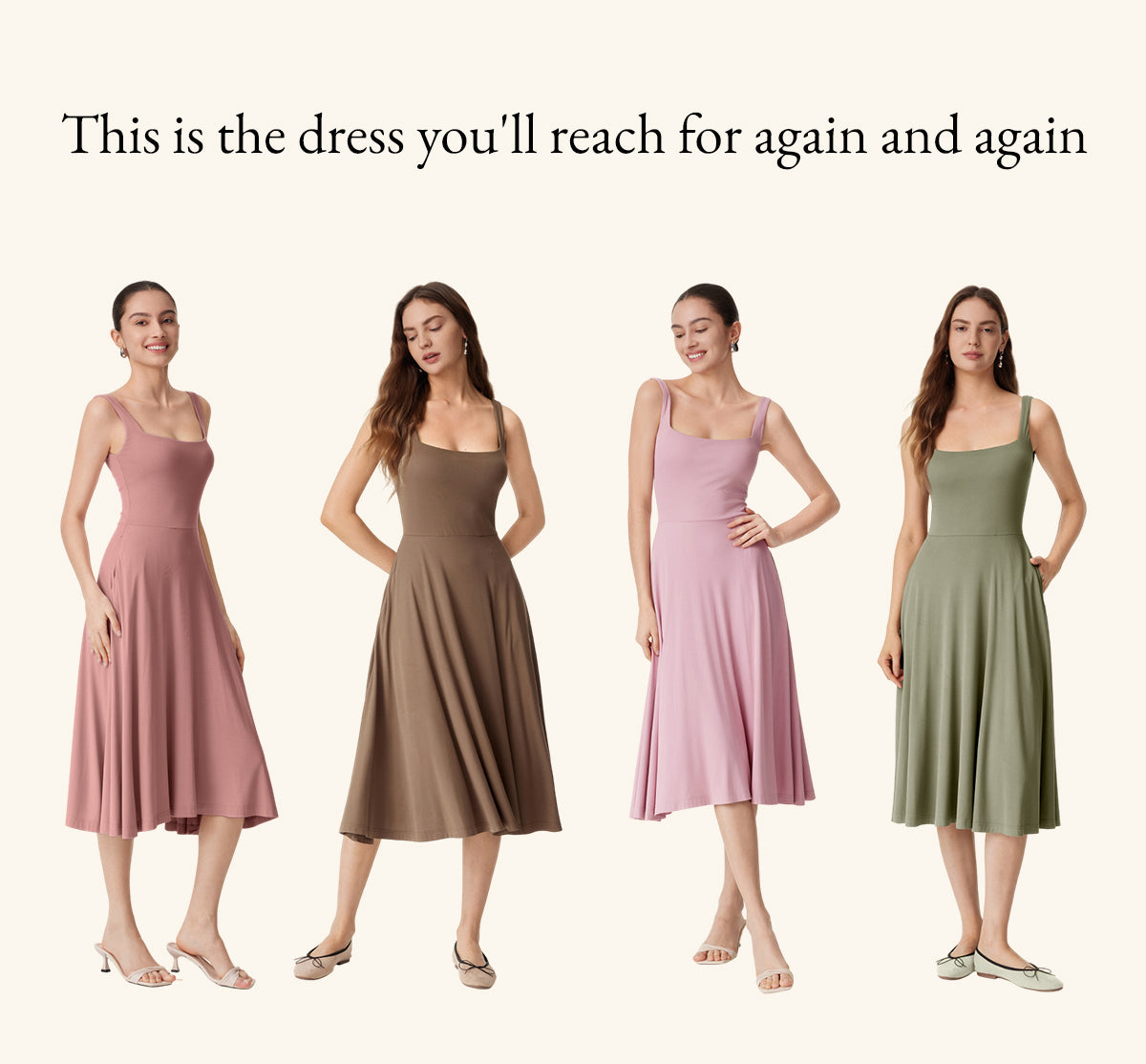 Square Neck Flowy New Airy Brami Midi Dress