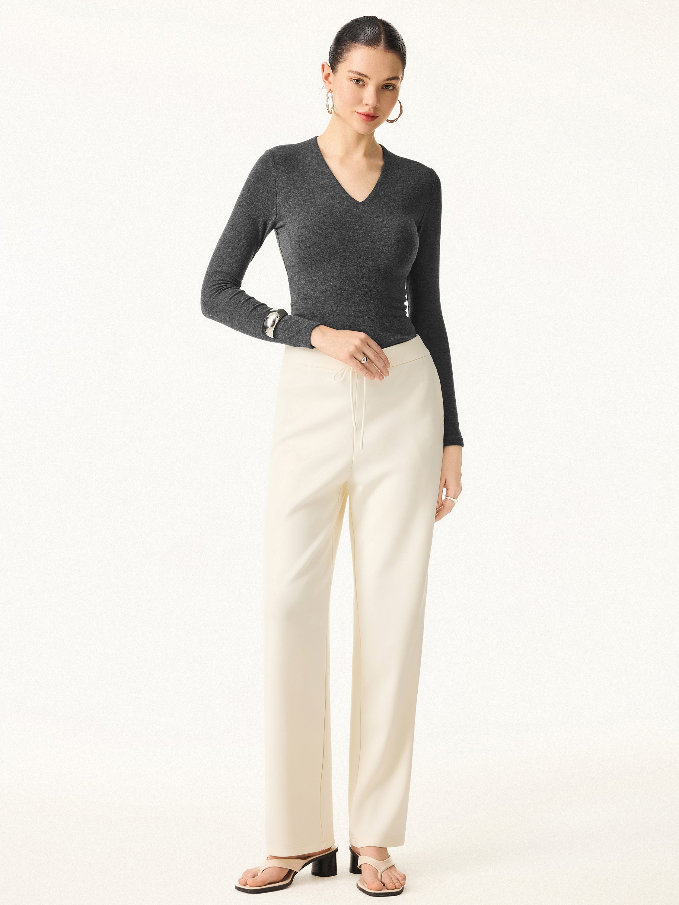 Stretch Cotton V-Neck Long Sleeve Brami Top