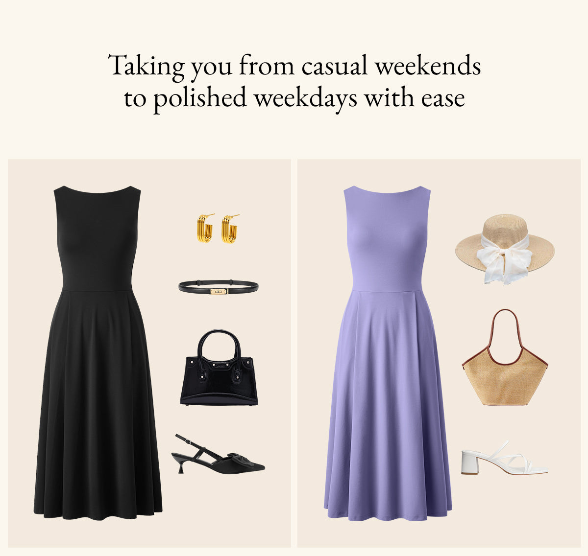 Boatneck Bamboo Ponte Brami Midi Dress with Pockets