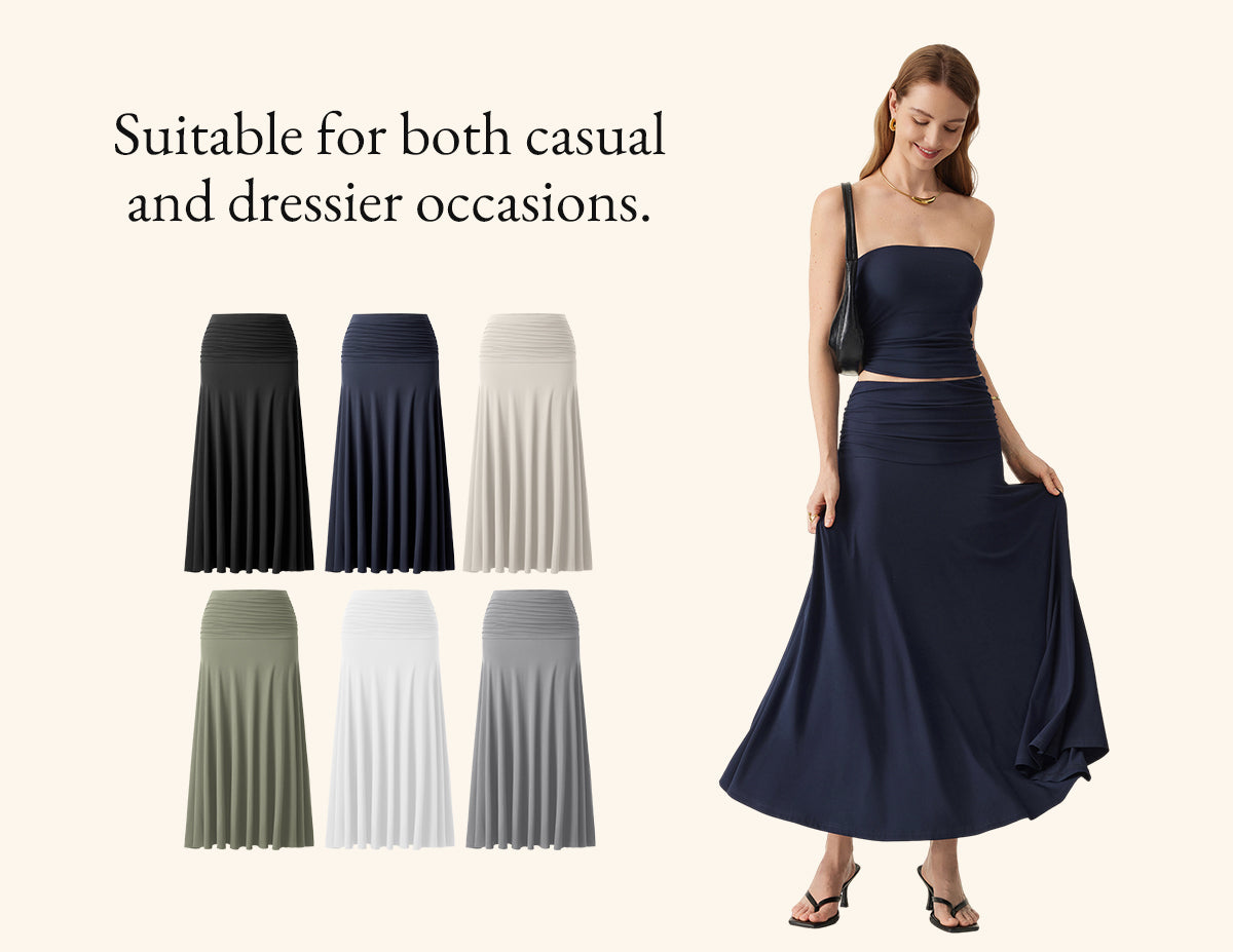 Ultrasoft Mid Rise A-line Ruched Maxi Skirt