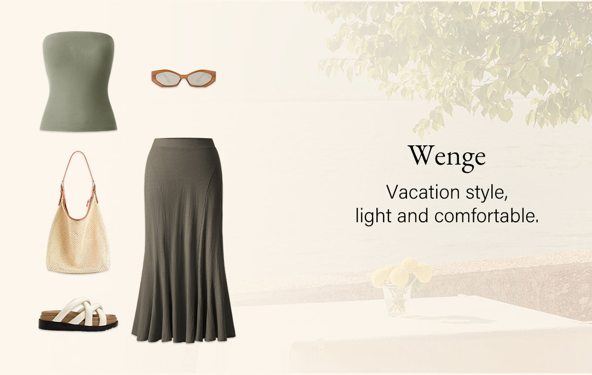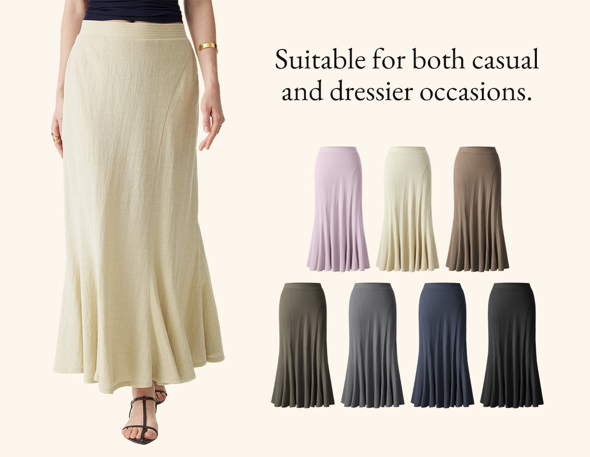 Wrinkle-resistant Cotton-linen Pull-on Midi Skirt