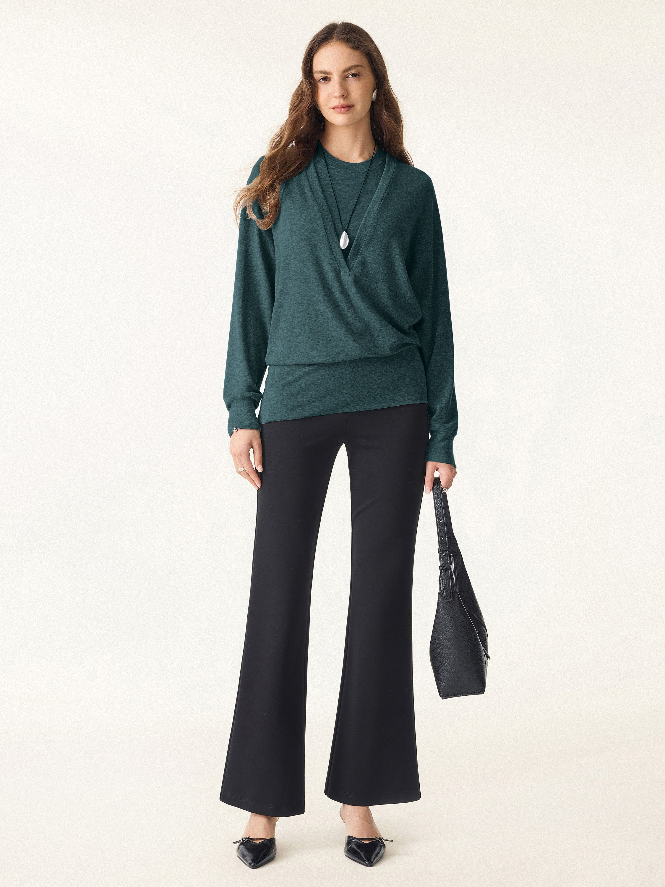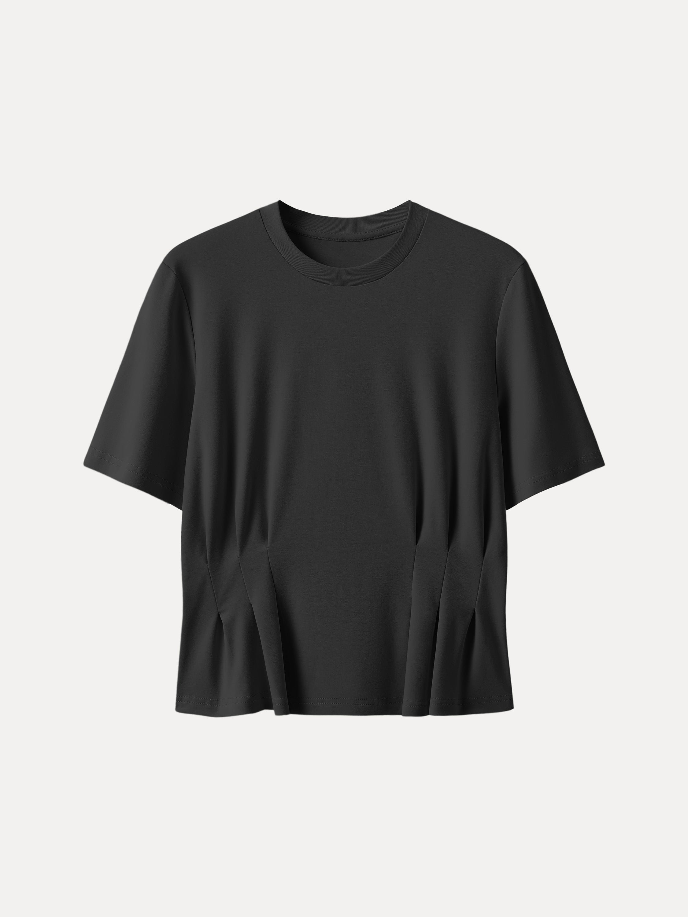 Boatneck Flutter Sleeve Side Tucked Long Tee