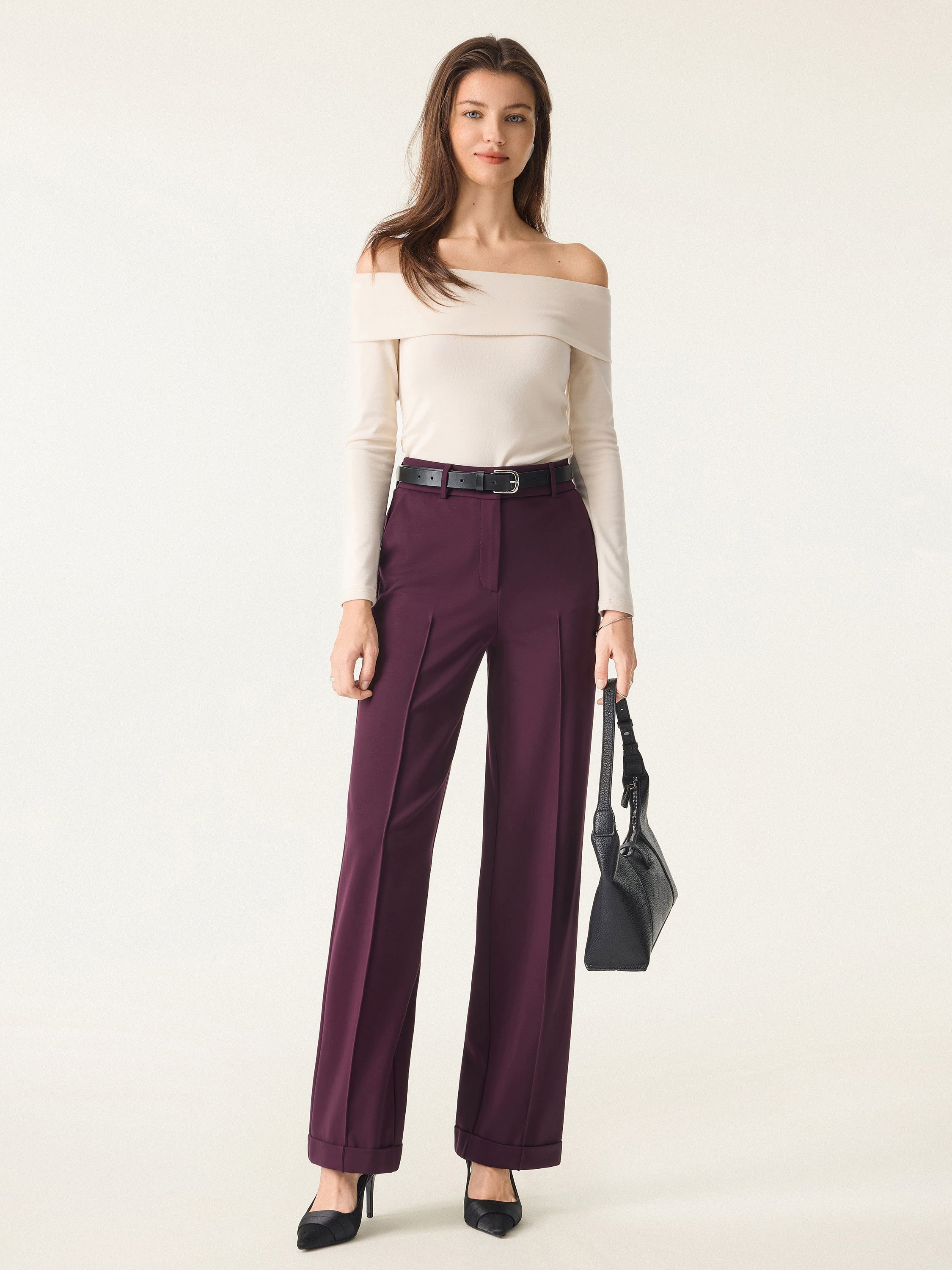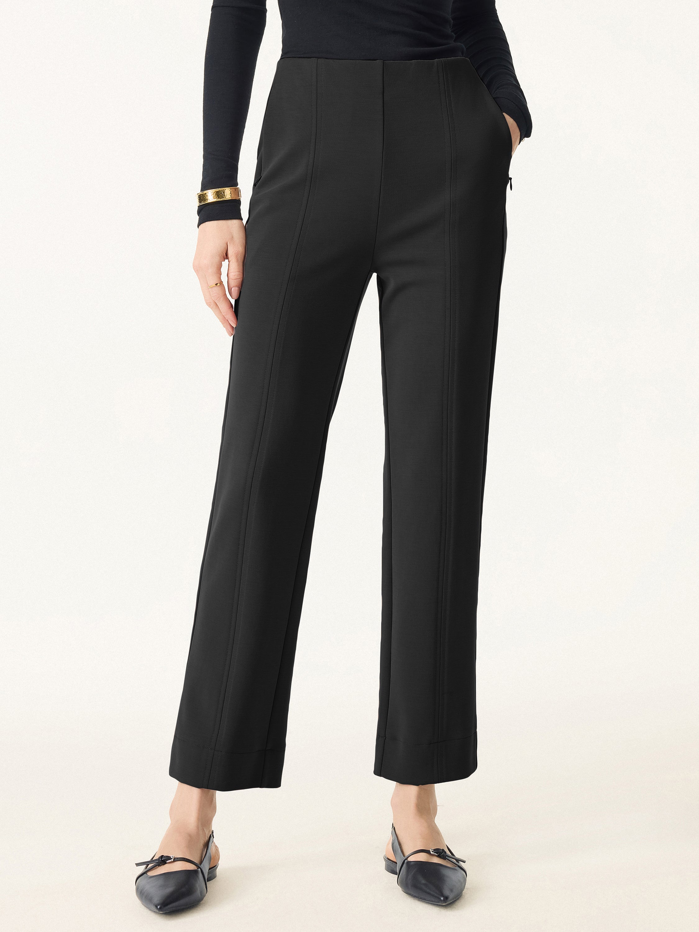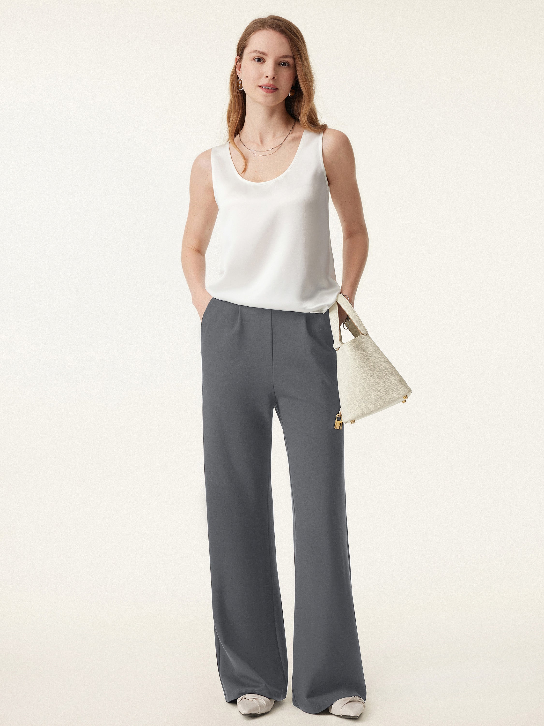High Rise Pull-on Wide Leg Pant with Adjustable Bar
