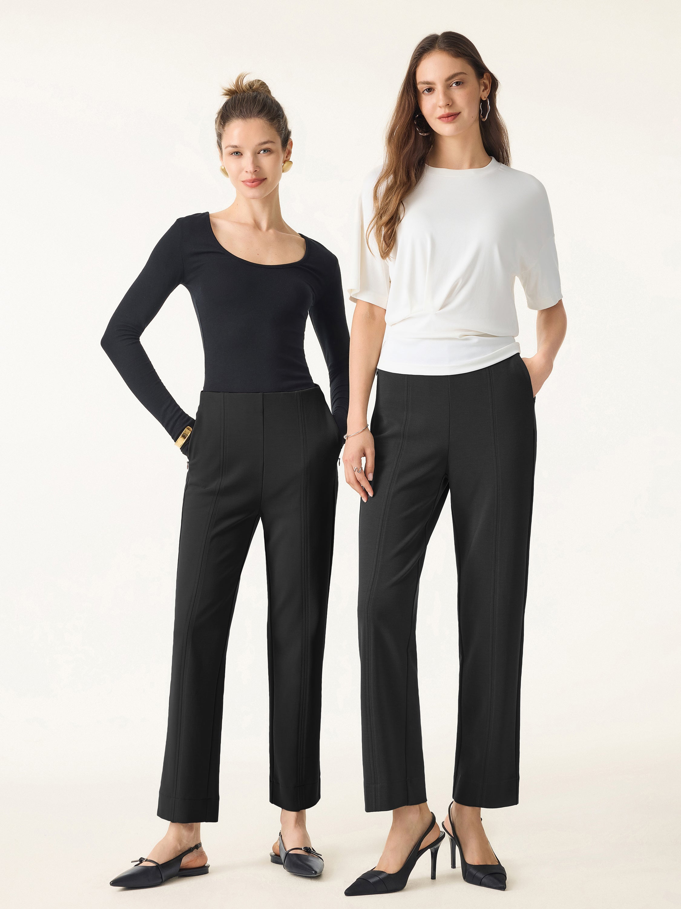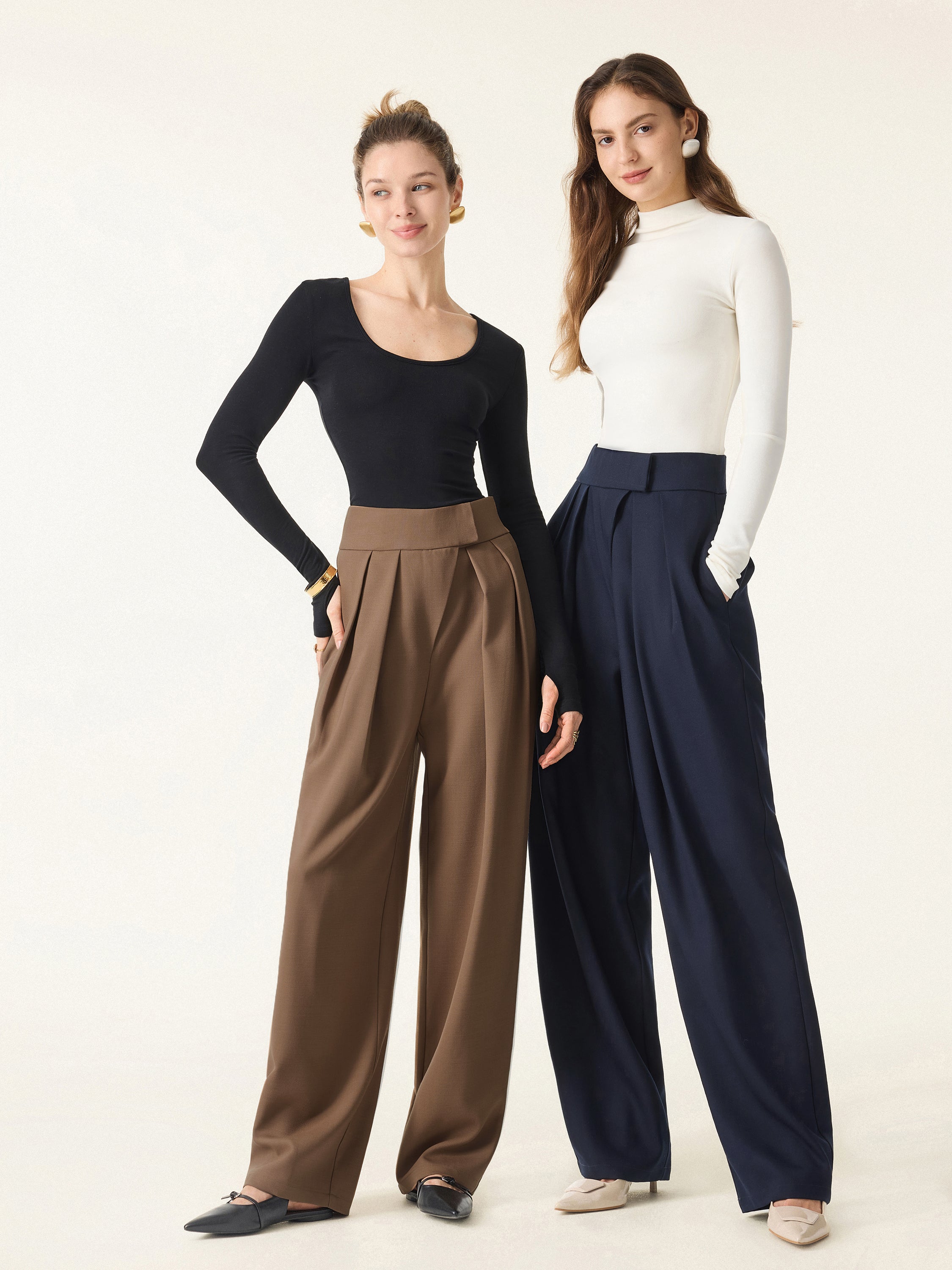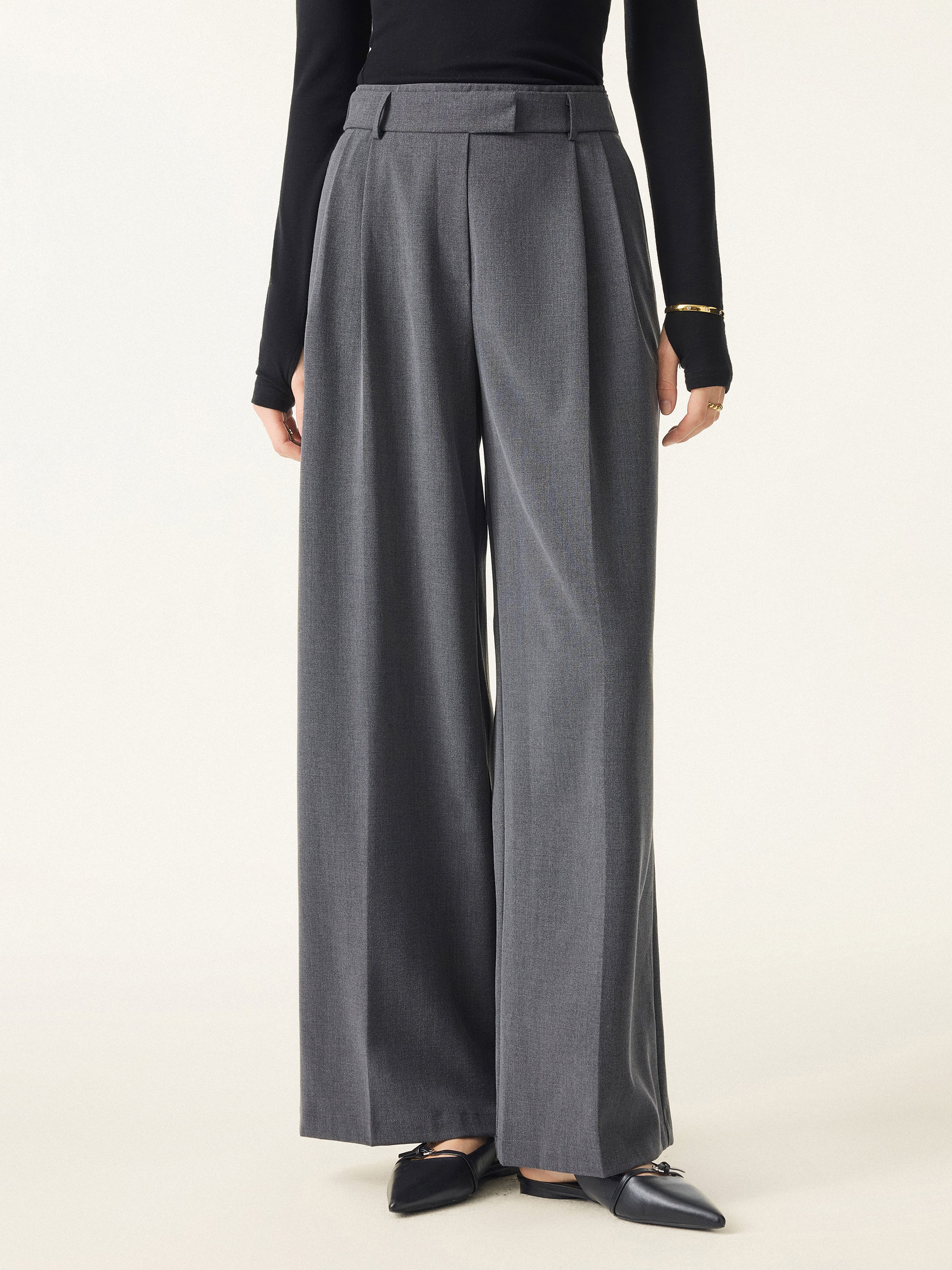 High Rise Pull-on Wide Leg Pant with Adjustable Bar