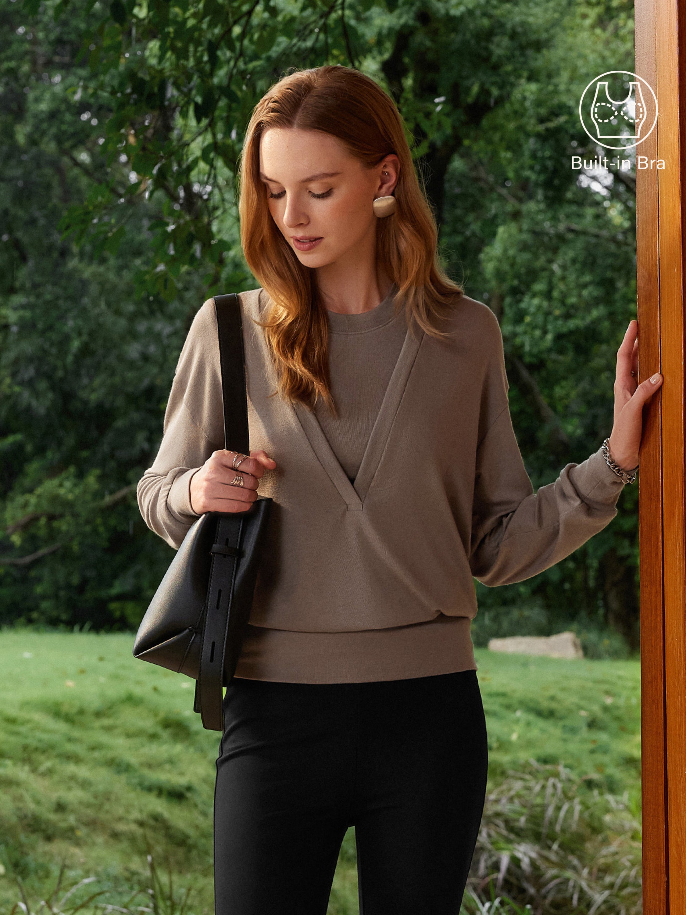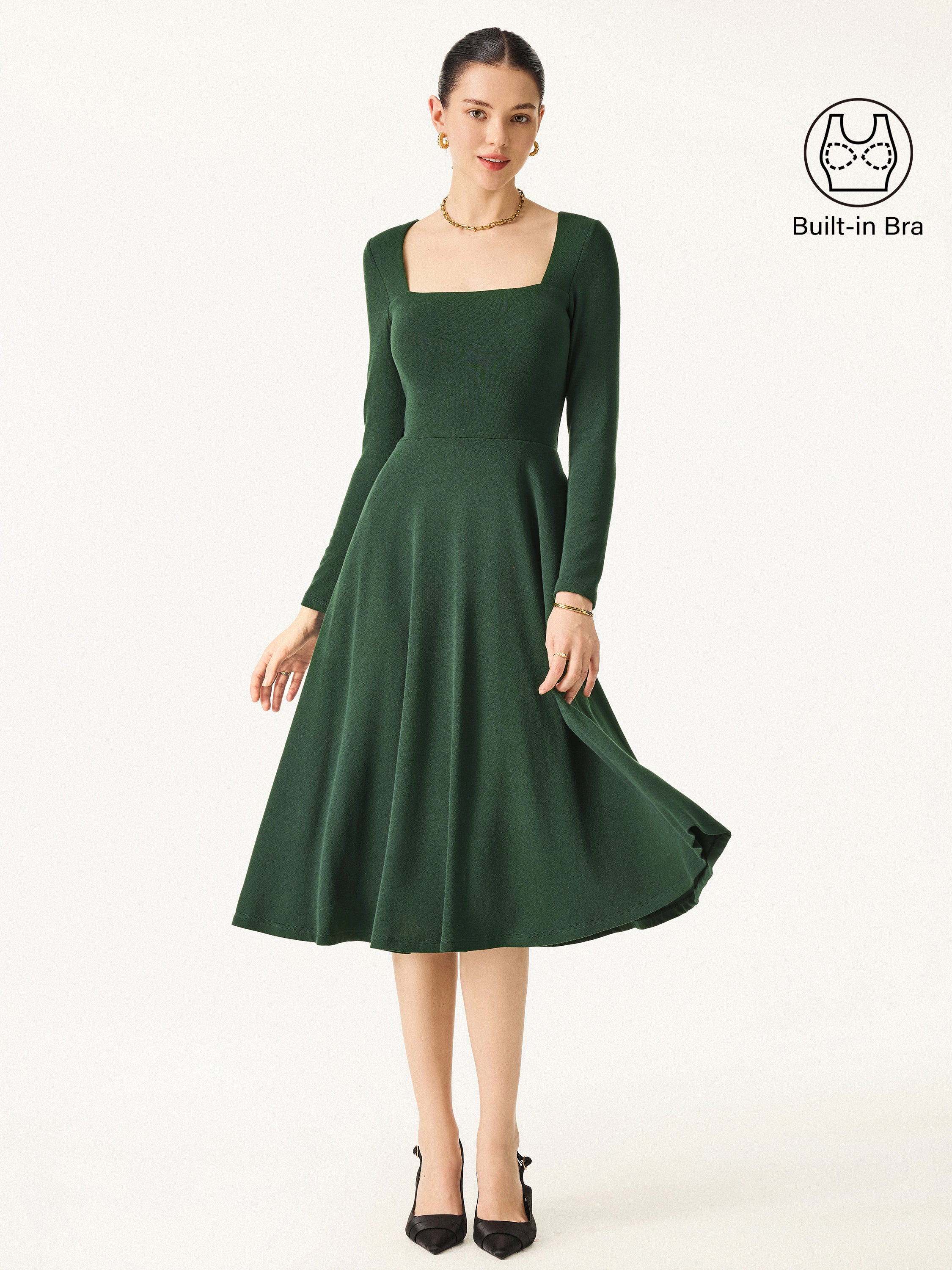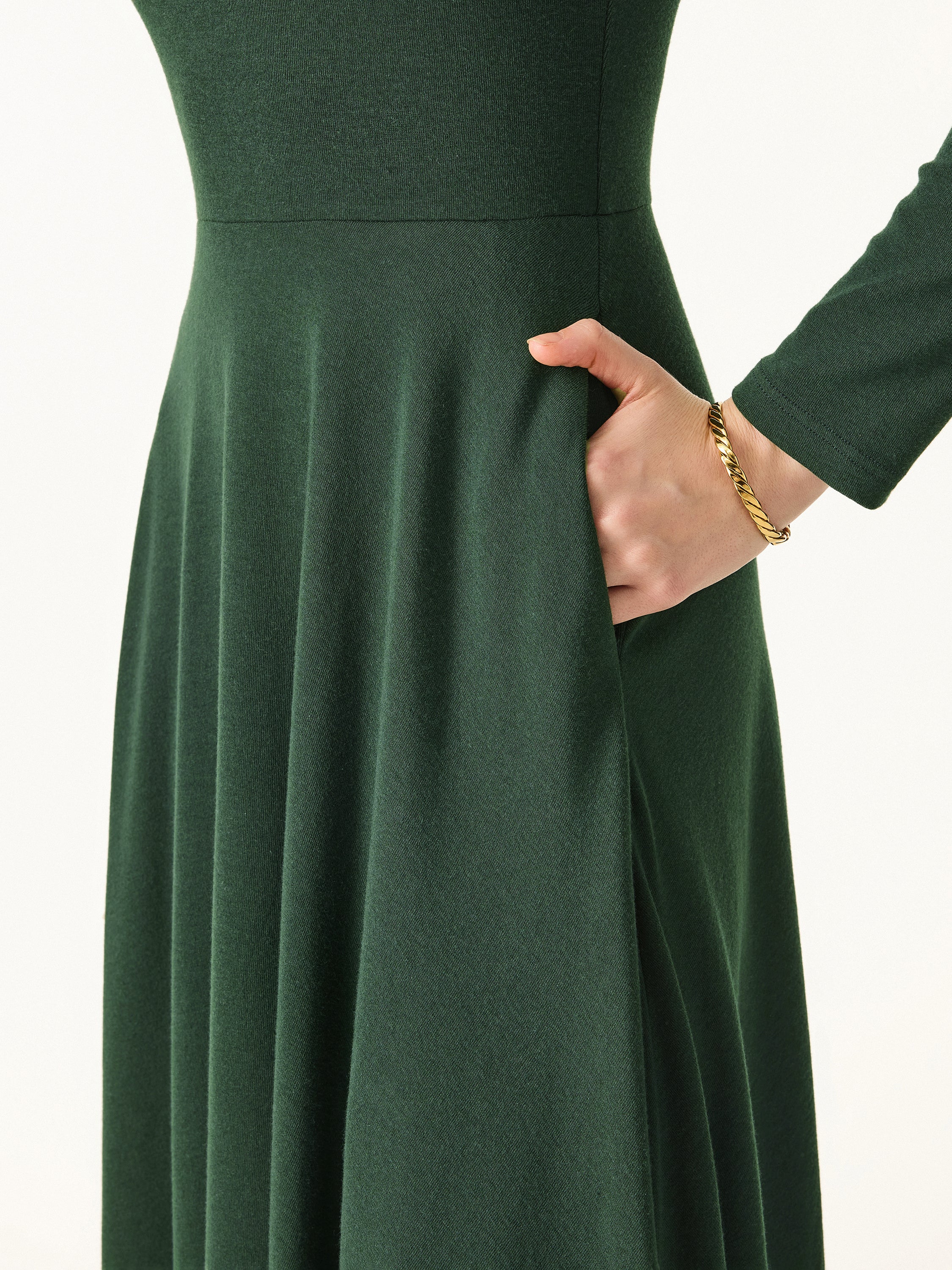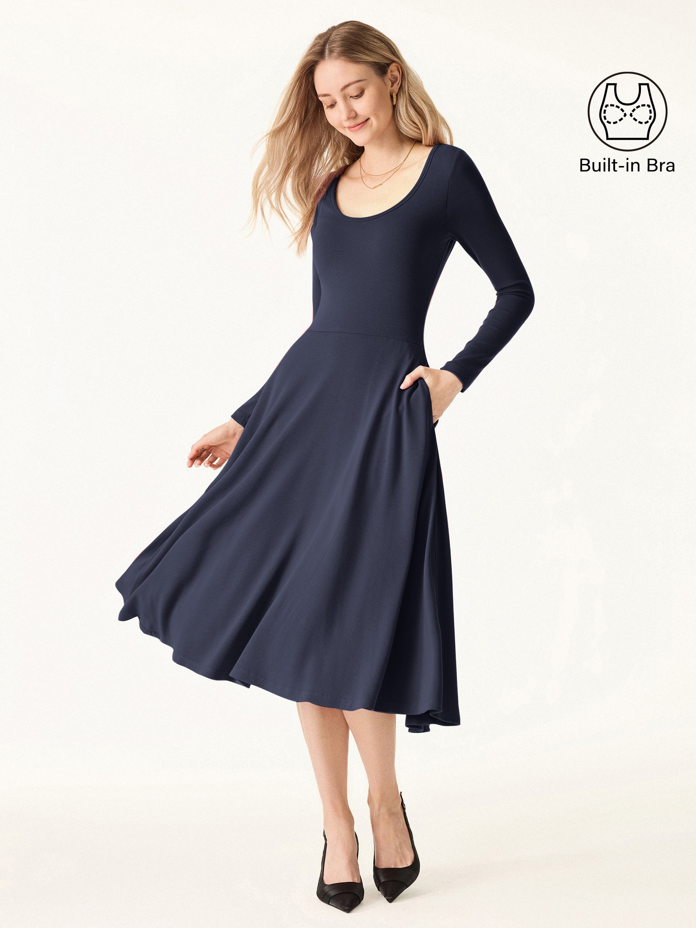 Essential Scoop Neck Long Sleeve Midi Brami Dress with Pockets