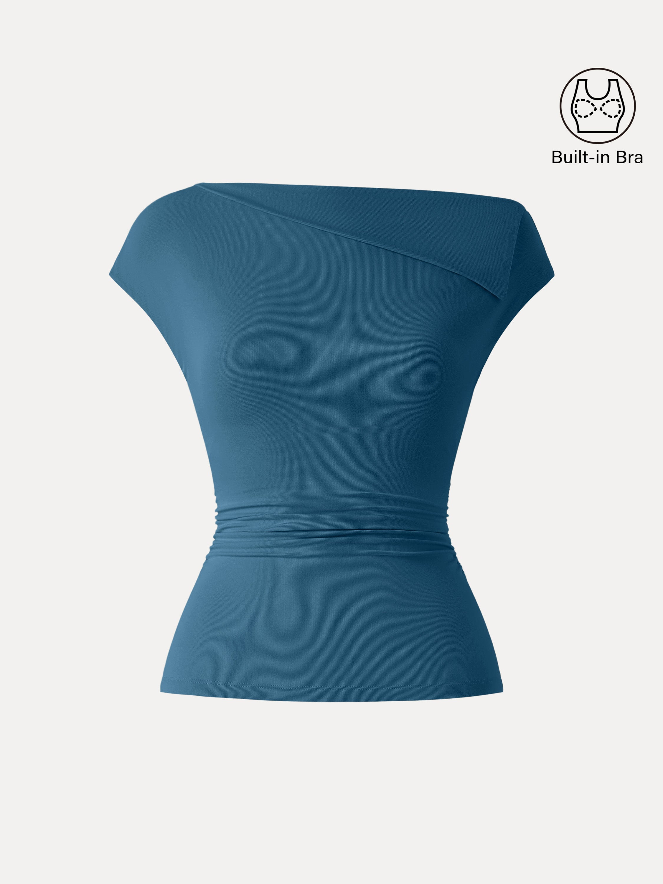 Sandwashed Boatneck Cap Sleeve Ruched Brami