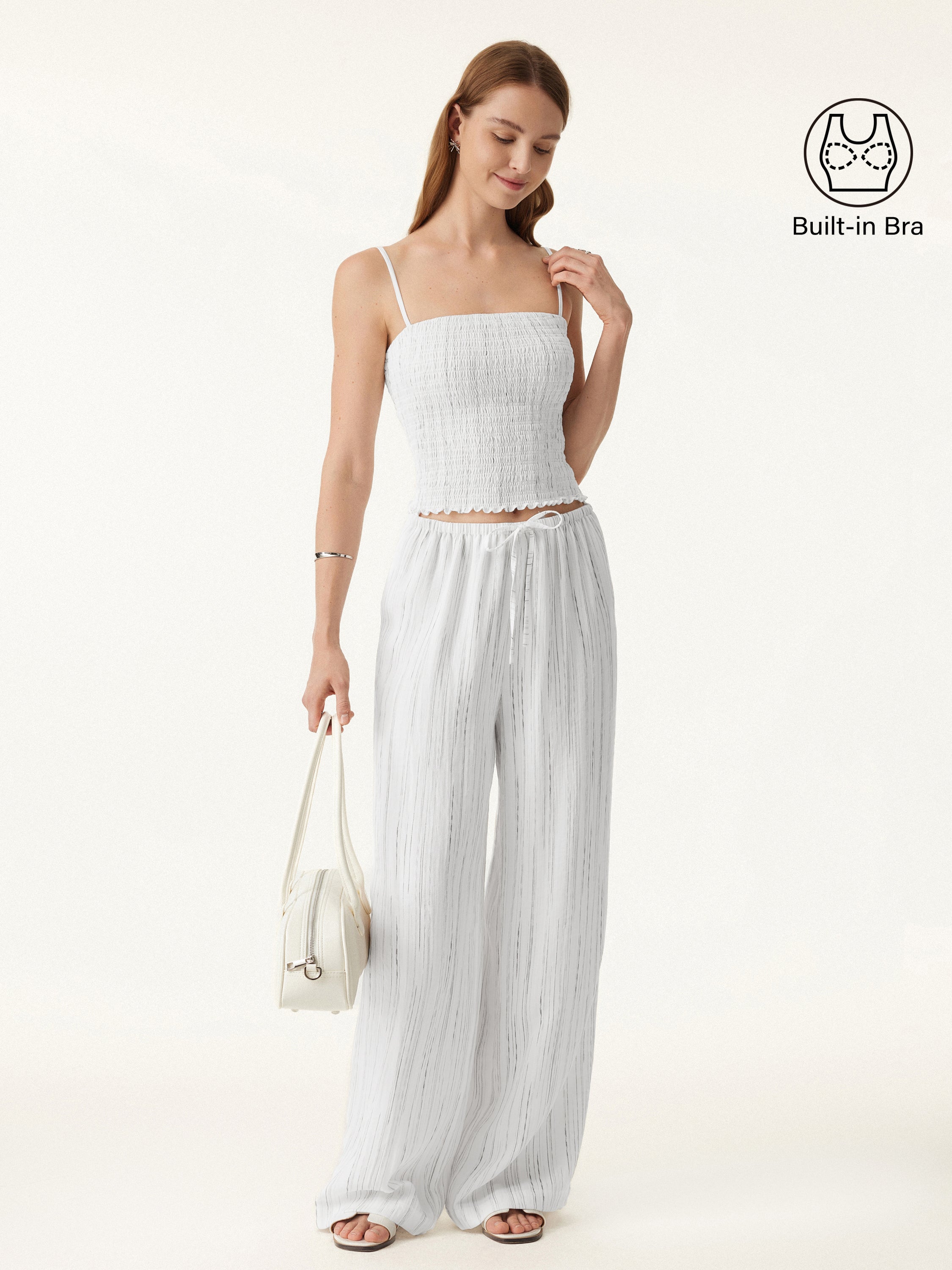 2Pcs Set Striped Adjustable Spaghetti Brami & Striped Wide Leg Pants with Pockets