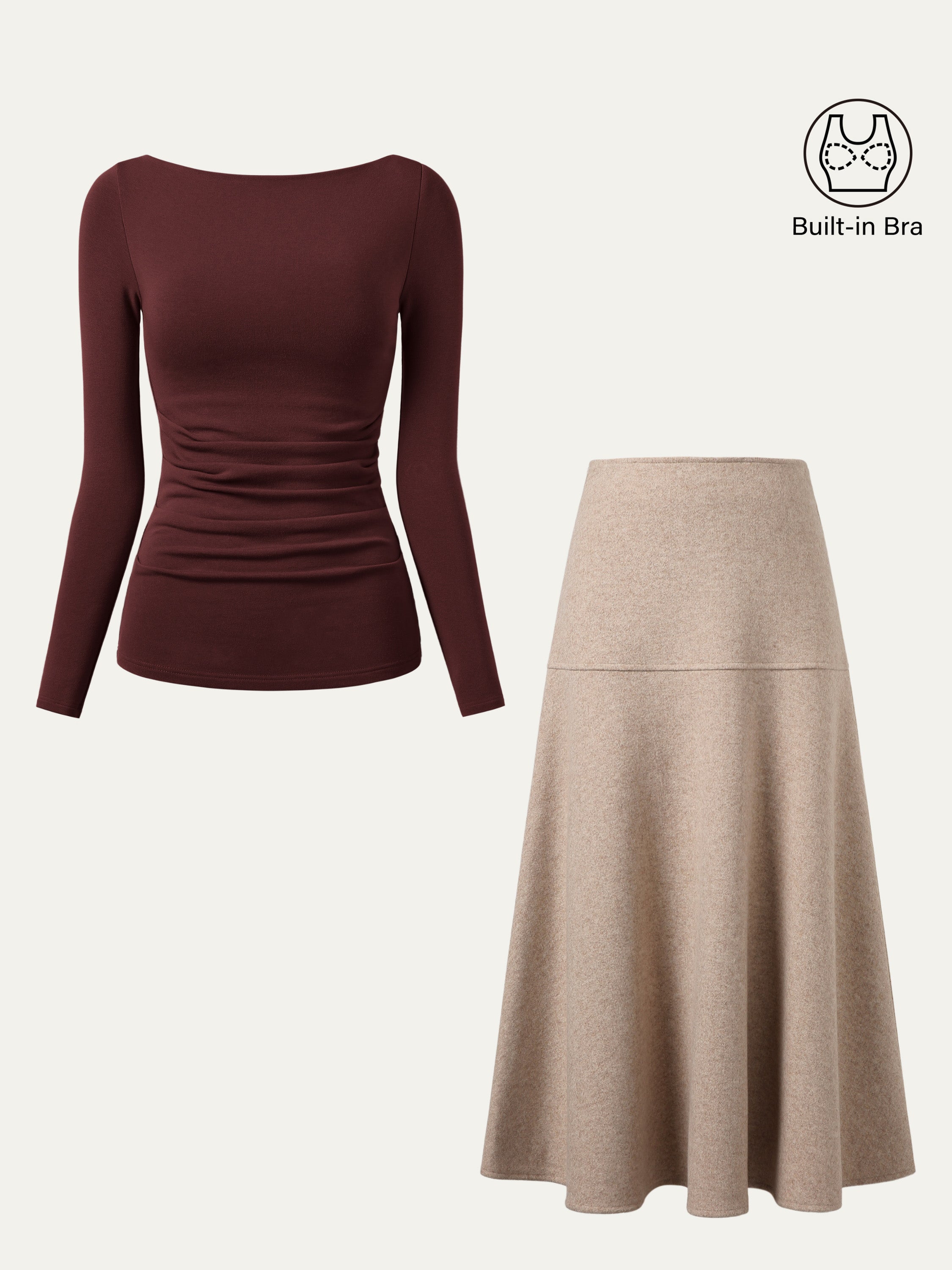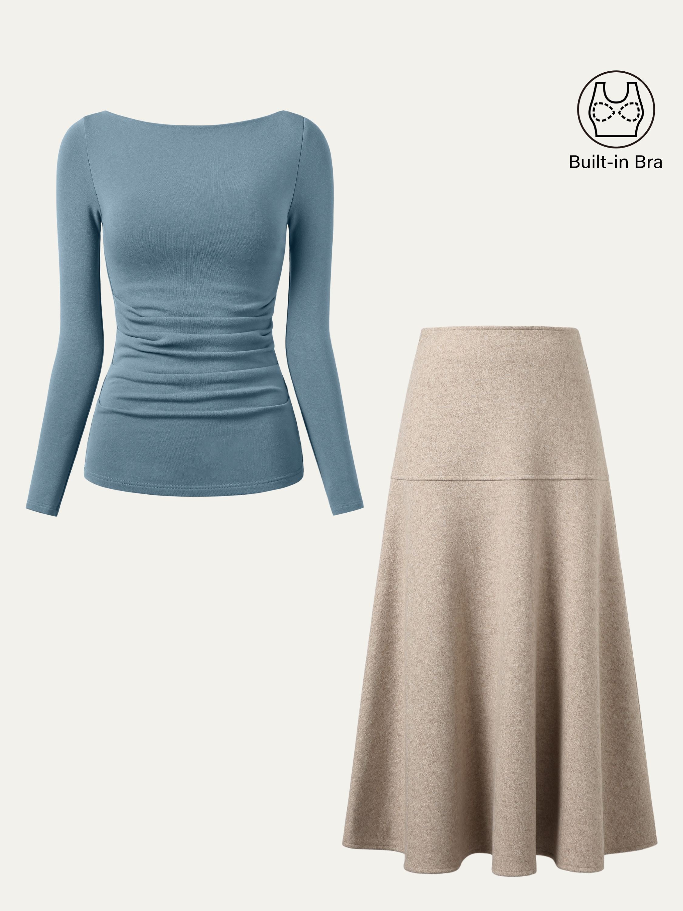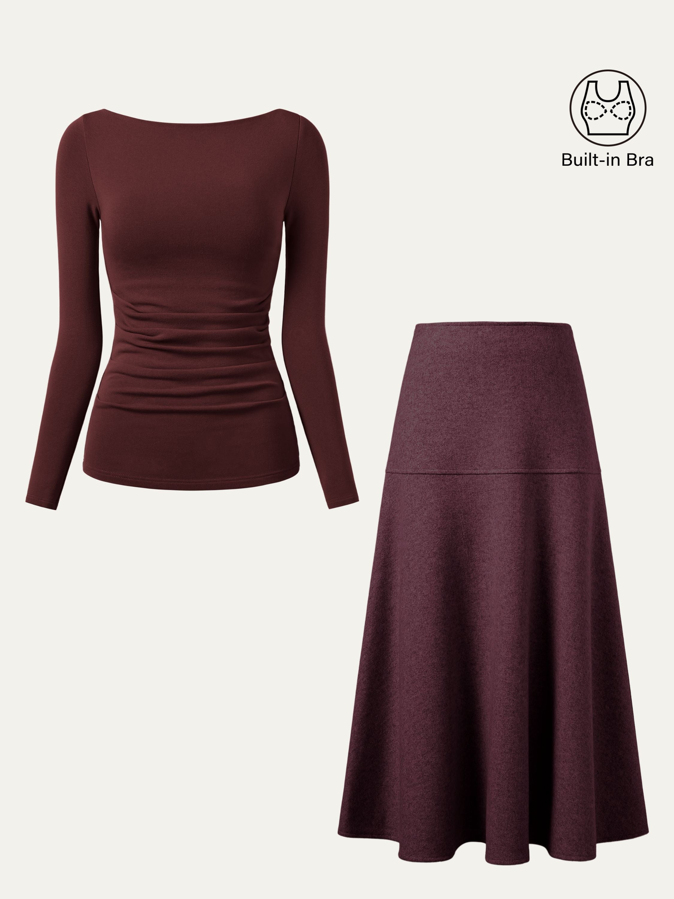 2Pcs Set Boatneck Tucks Brami Top & Flared Maxi Skirt