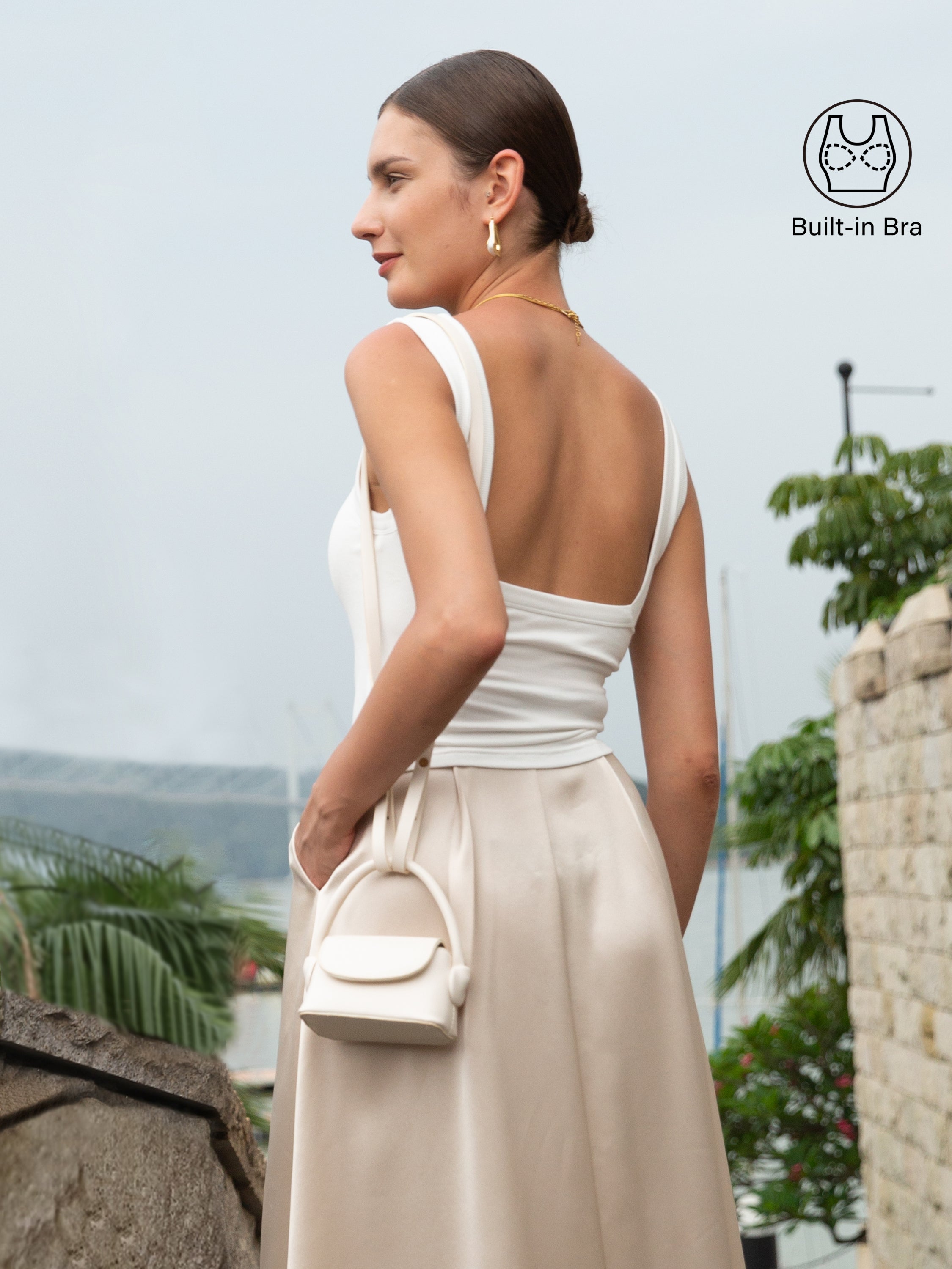 2Pcs Set Regular Slinky Square Open-Back Brami Tank Top