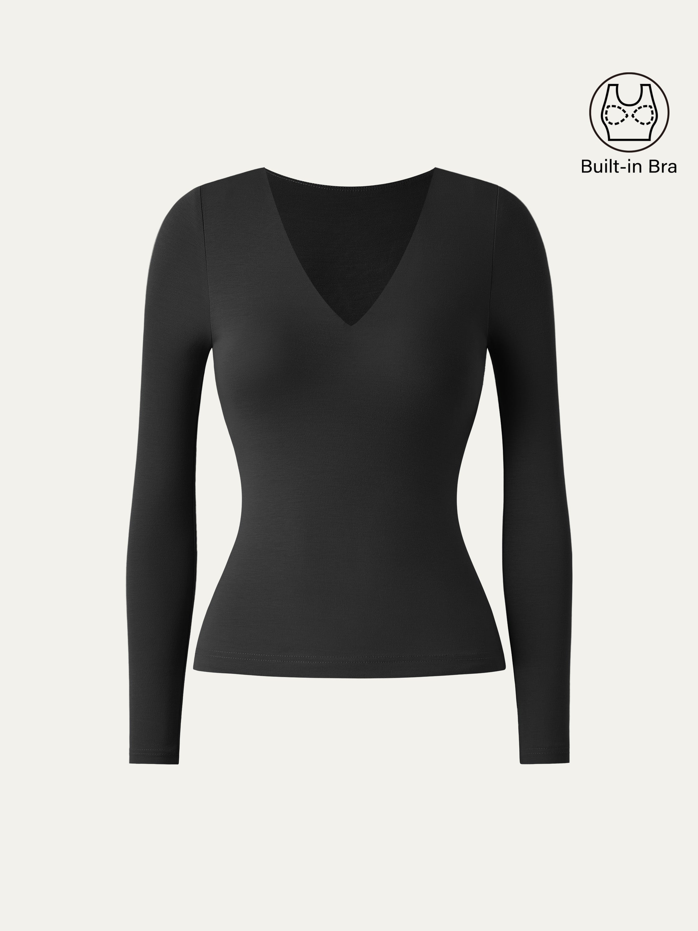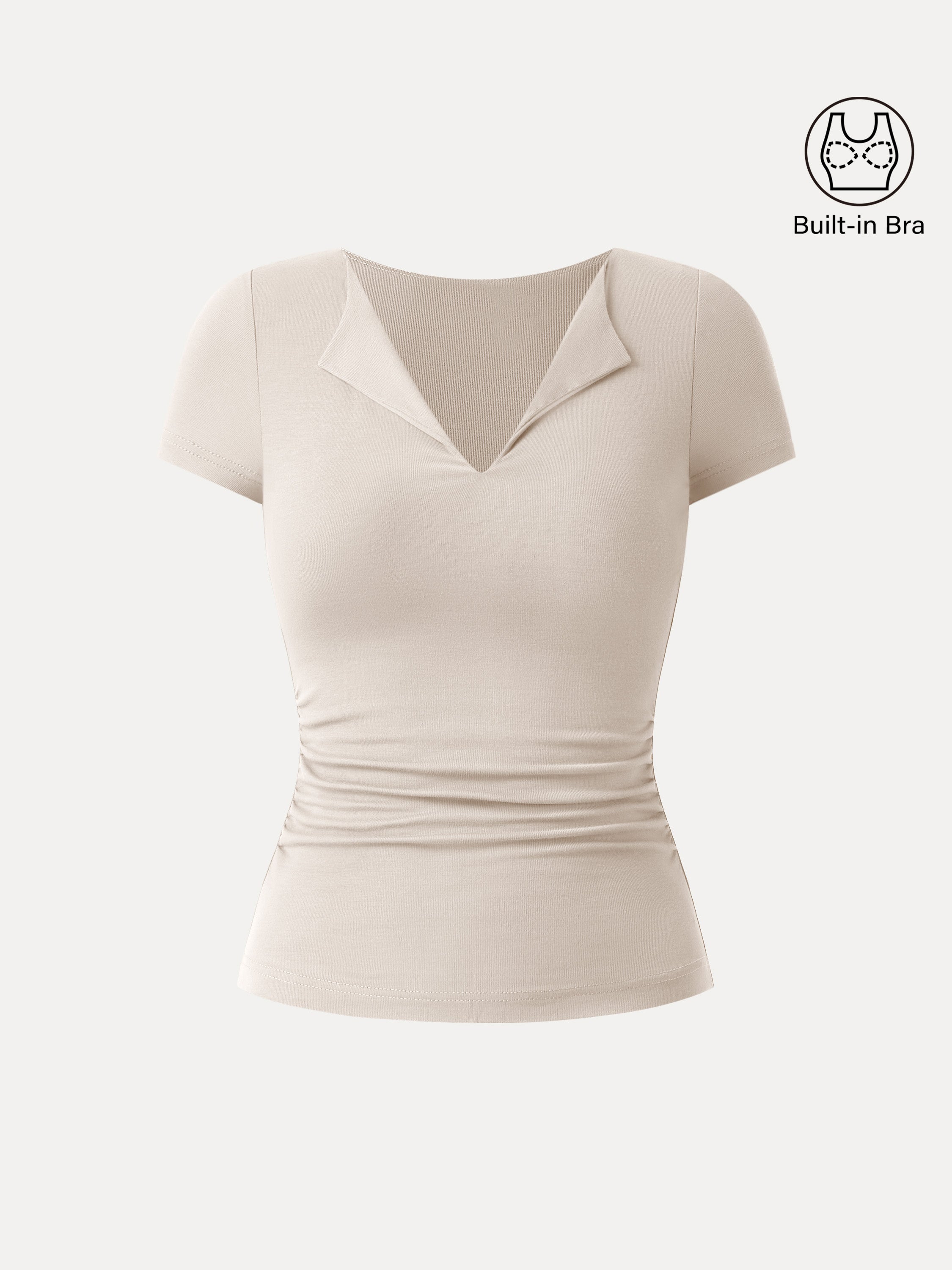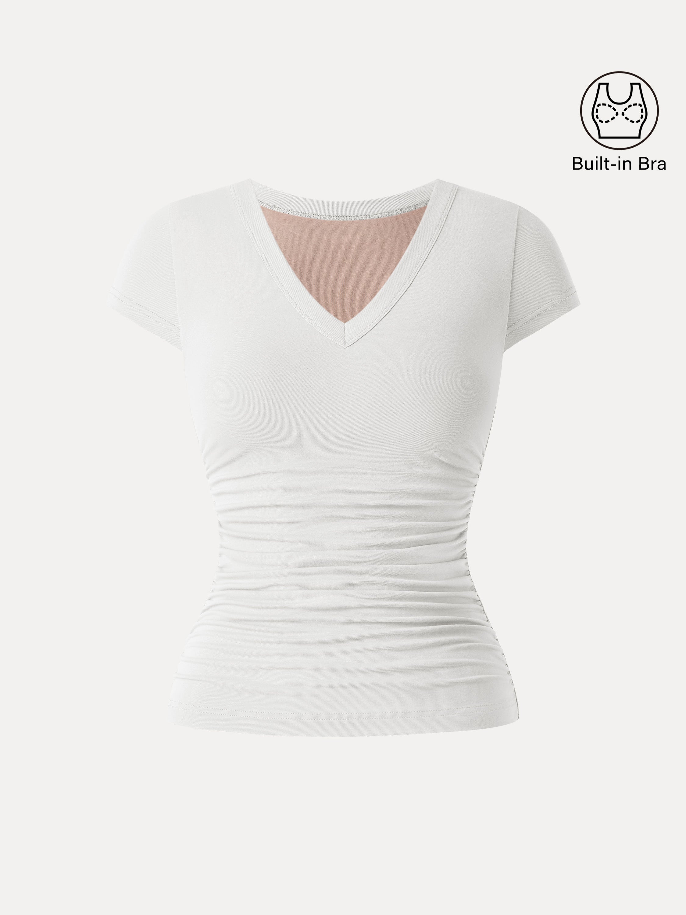 Flapped V-neck Side Ruched New Airy Brami Tee