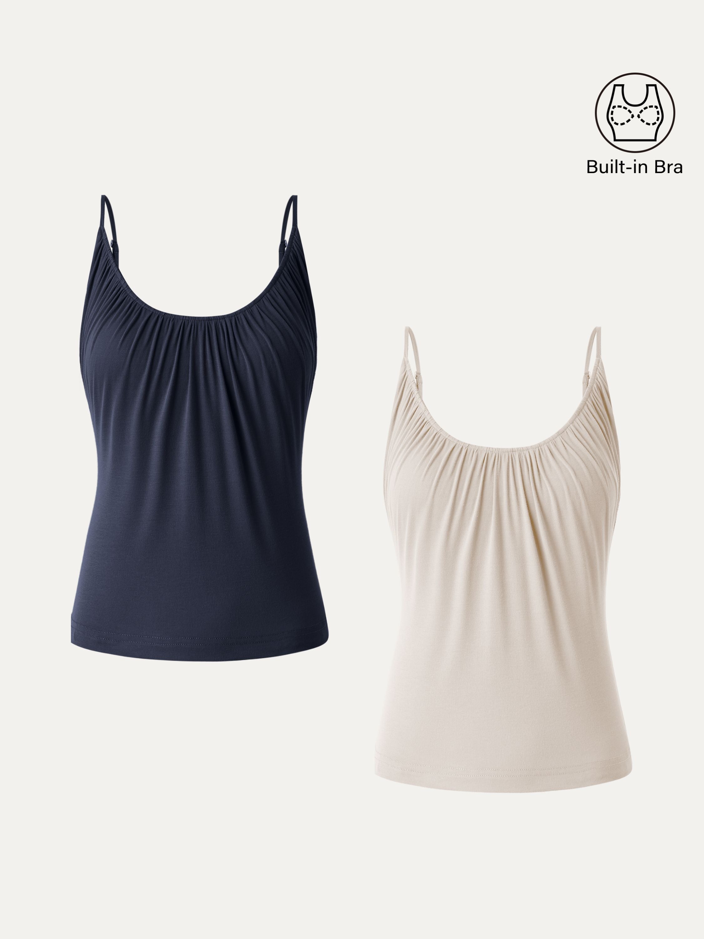 2Pcs Set Scoop Neck Gathered Spaghetti Brami Top