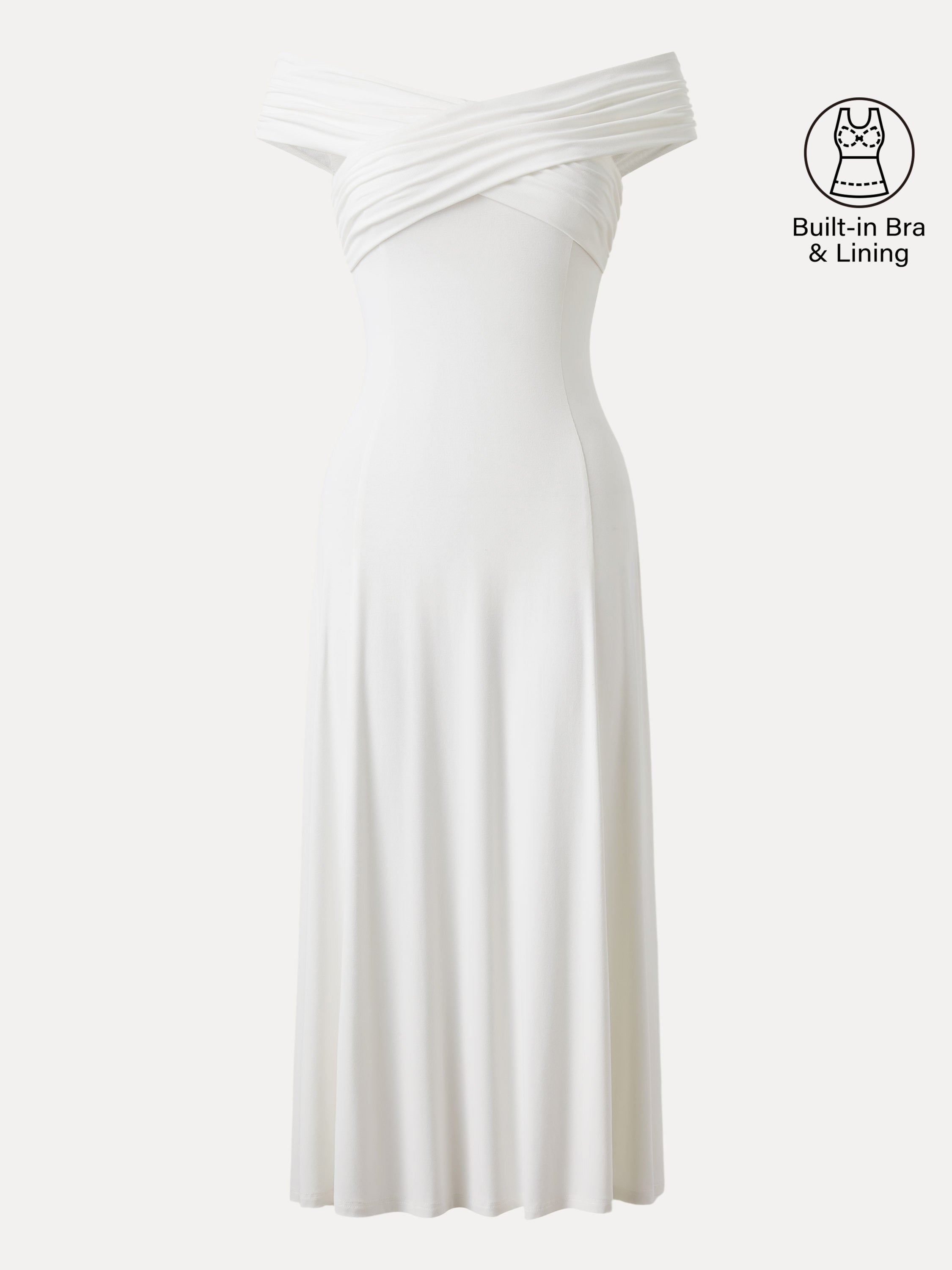 • Flowy Criss Cross Off-shoulder Midi Brami Dress