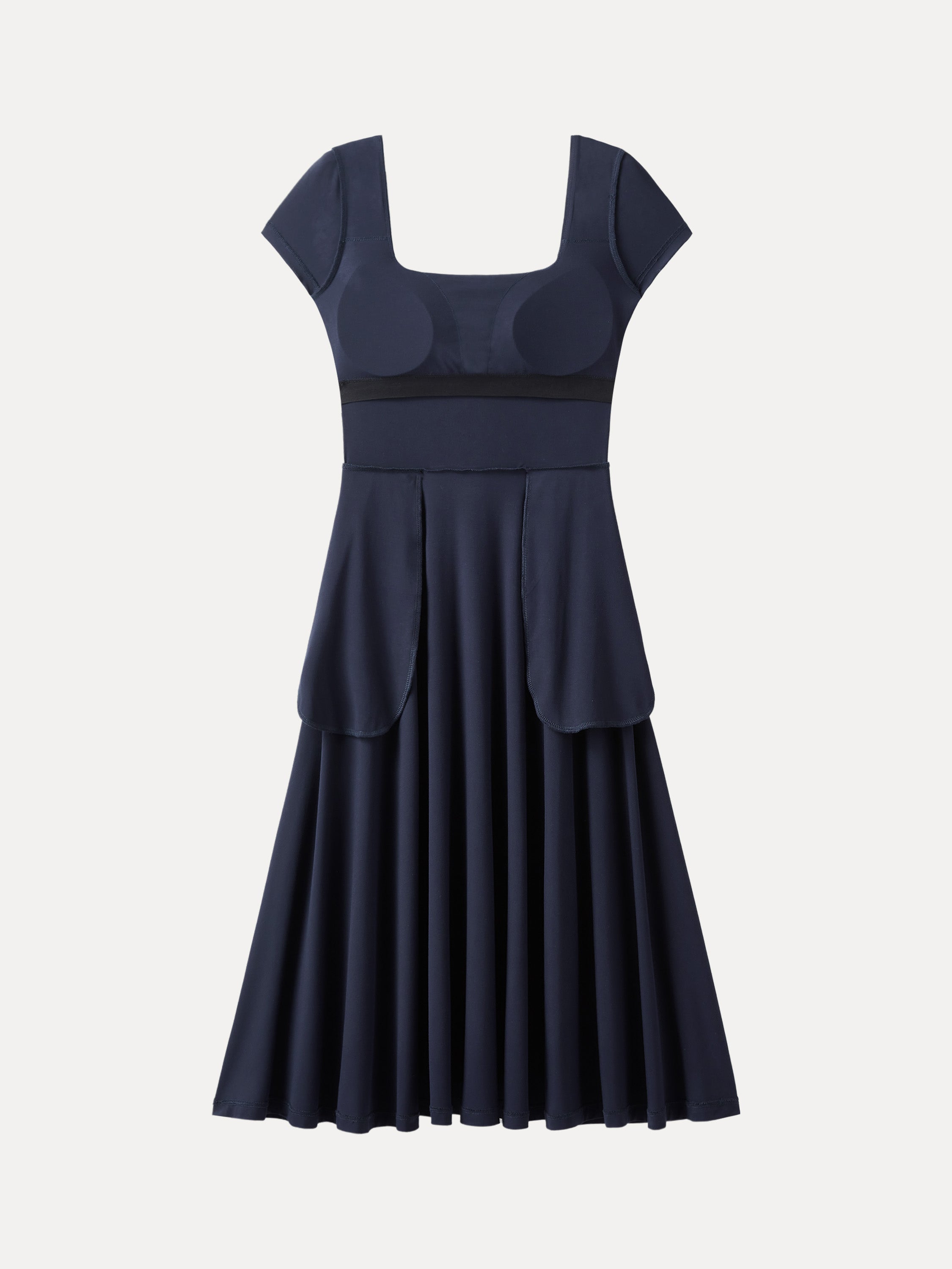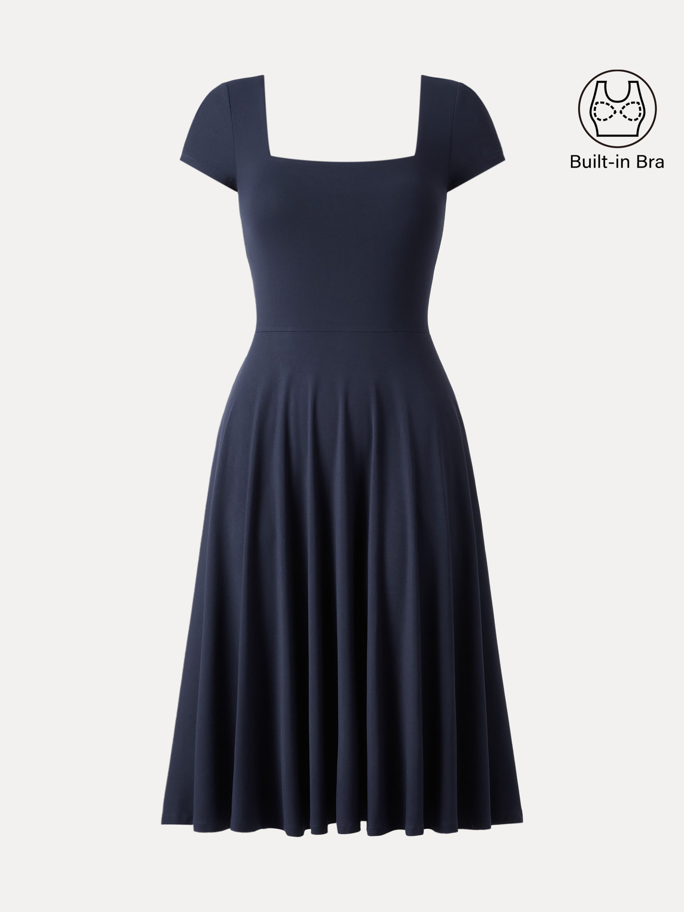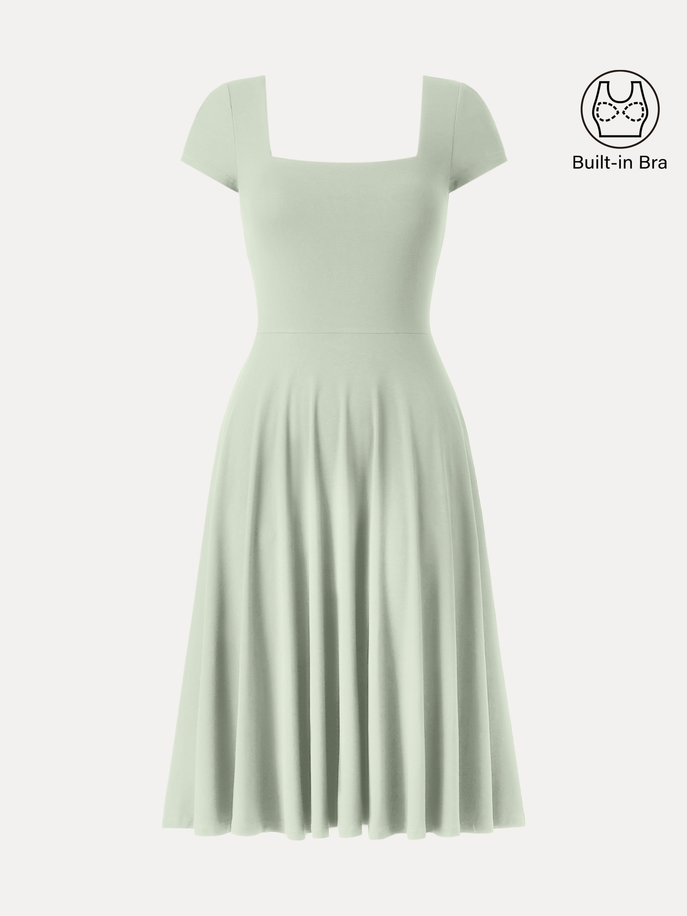 • Flowy Square Neck Short Sleeve Midi Brami Dress