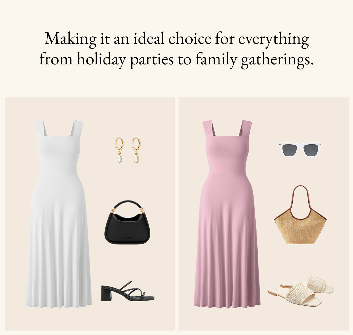 • Flowy Square Neck Wide Straps Midi Brami Dress with Pockets