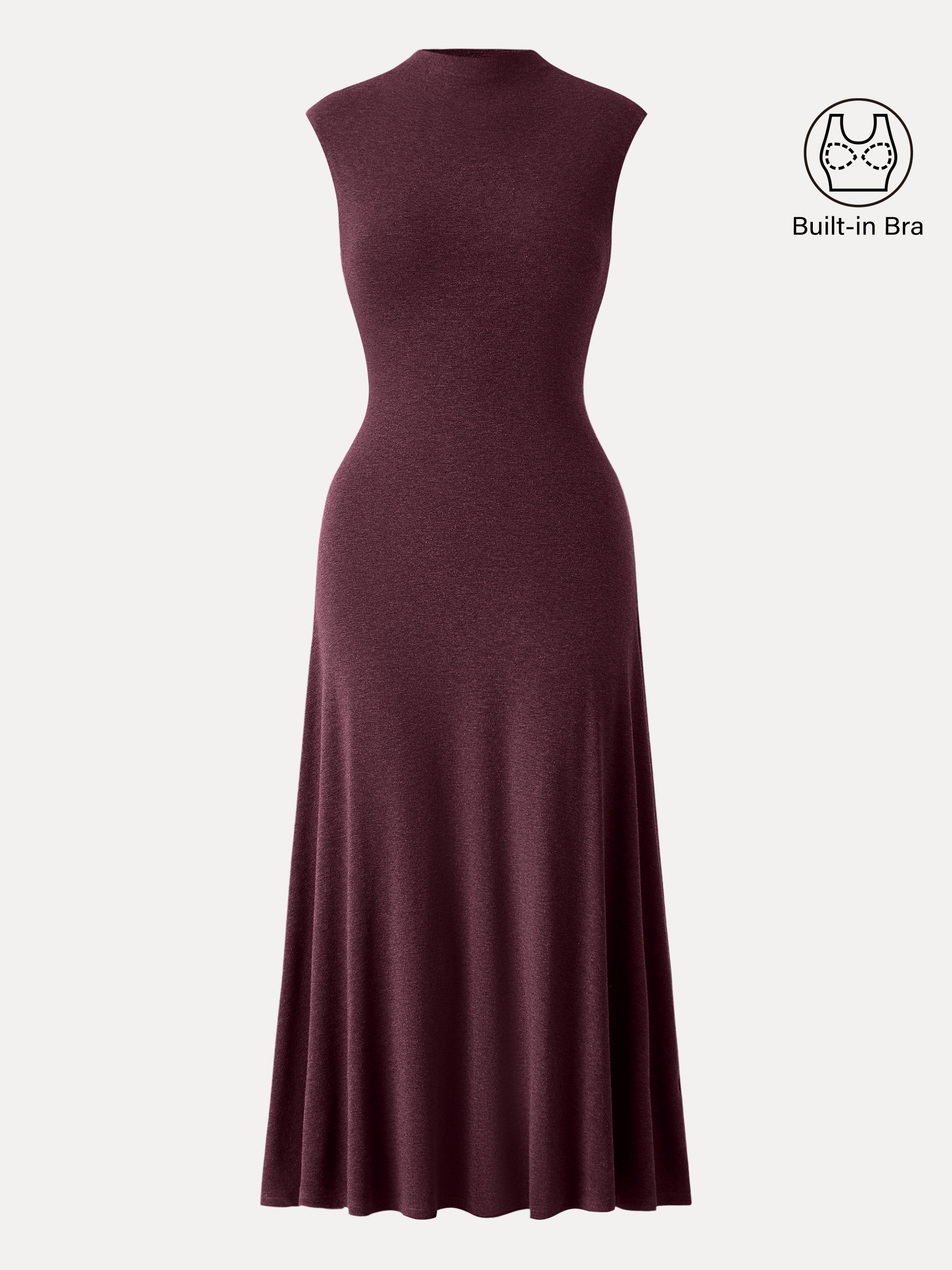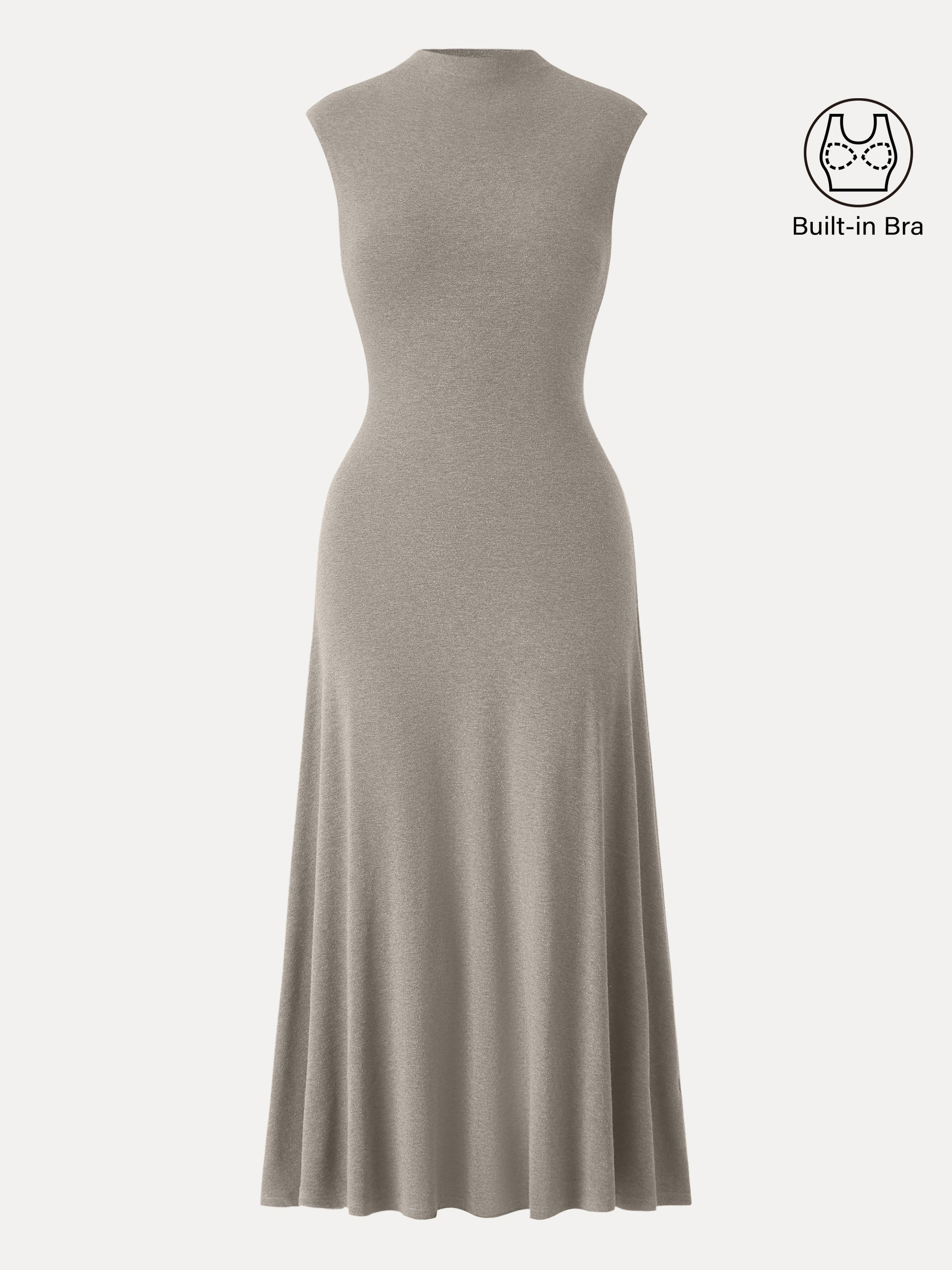 Light Warm Mockneck Wide Shoulder Midi Brami Dress
