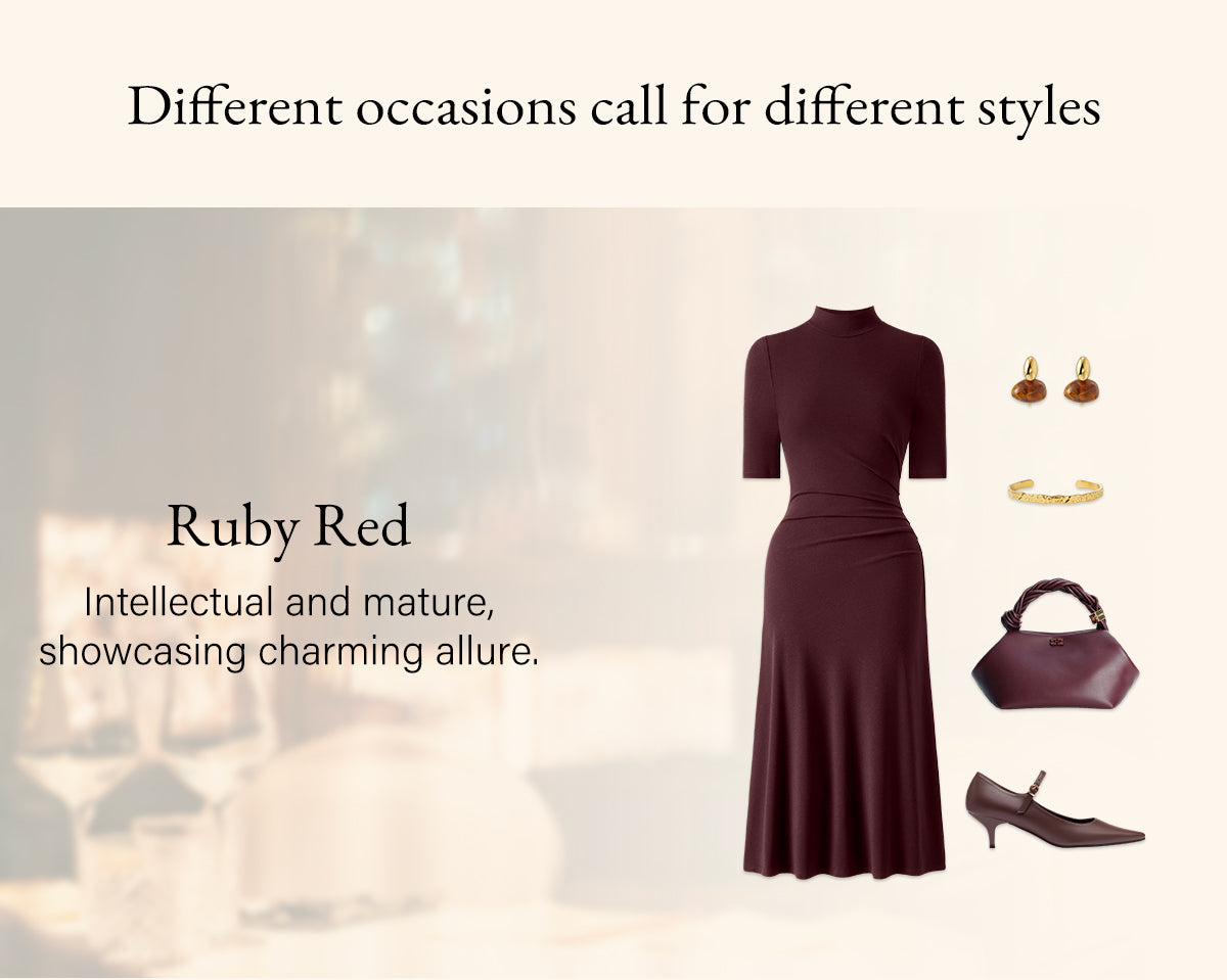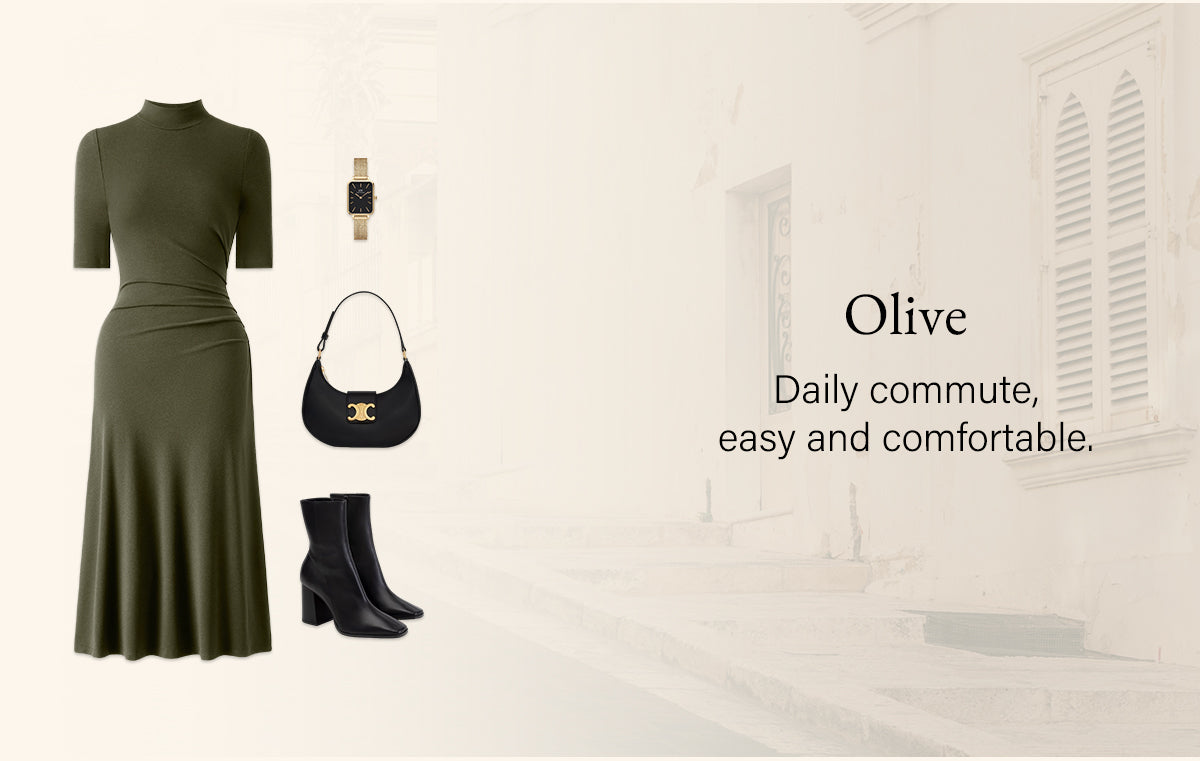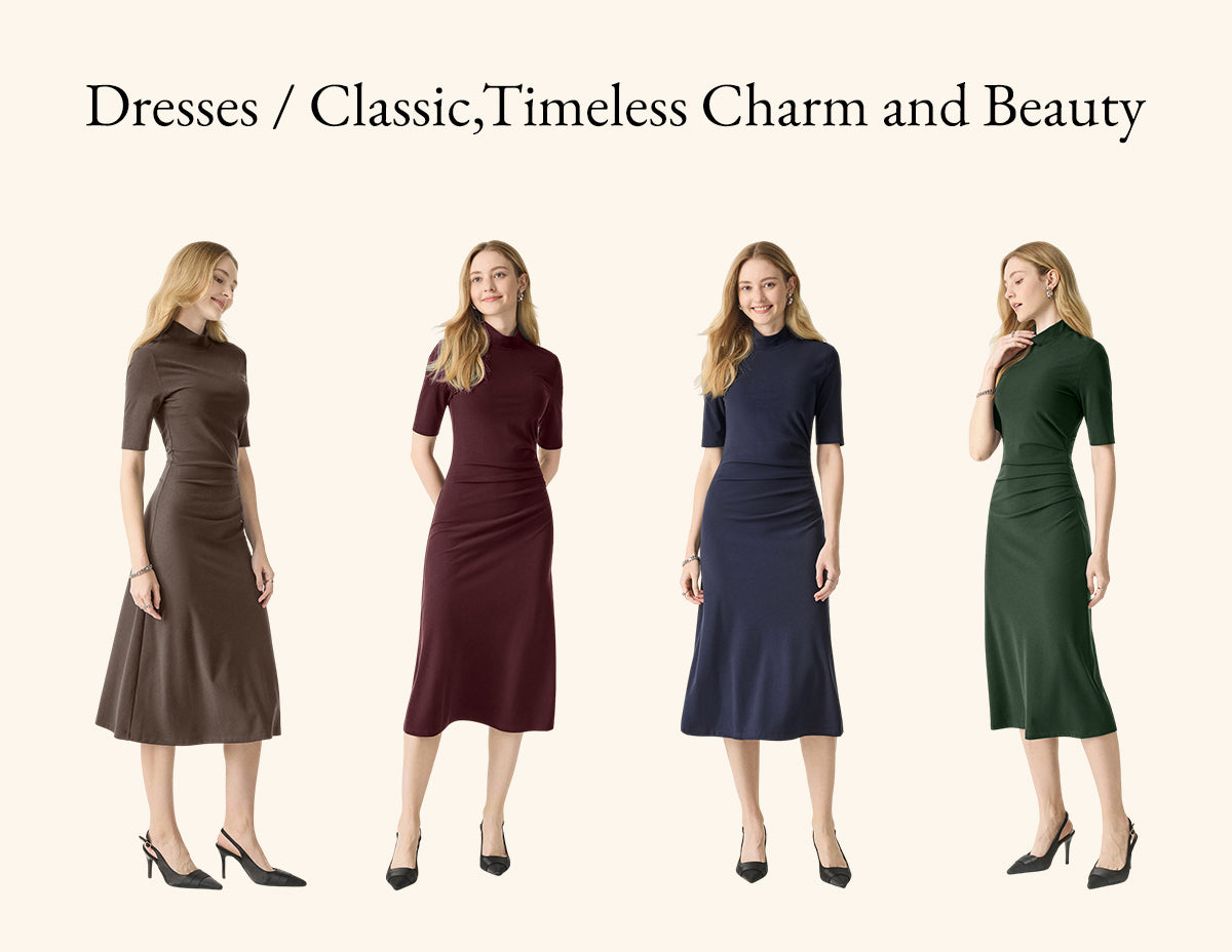 • Mockneck Elbow Length Sleeve Tucked Midi Dress