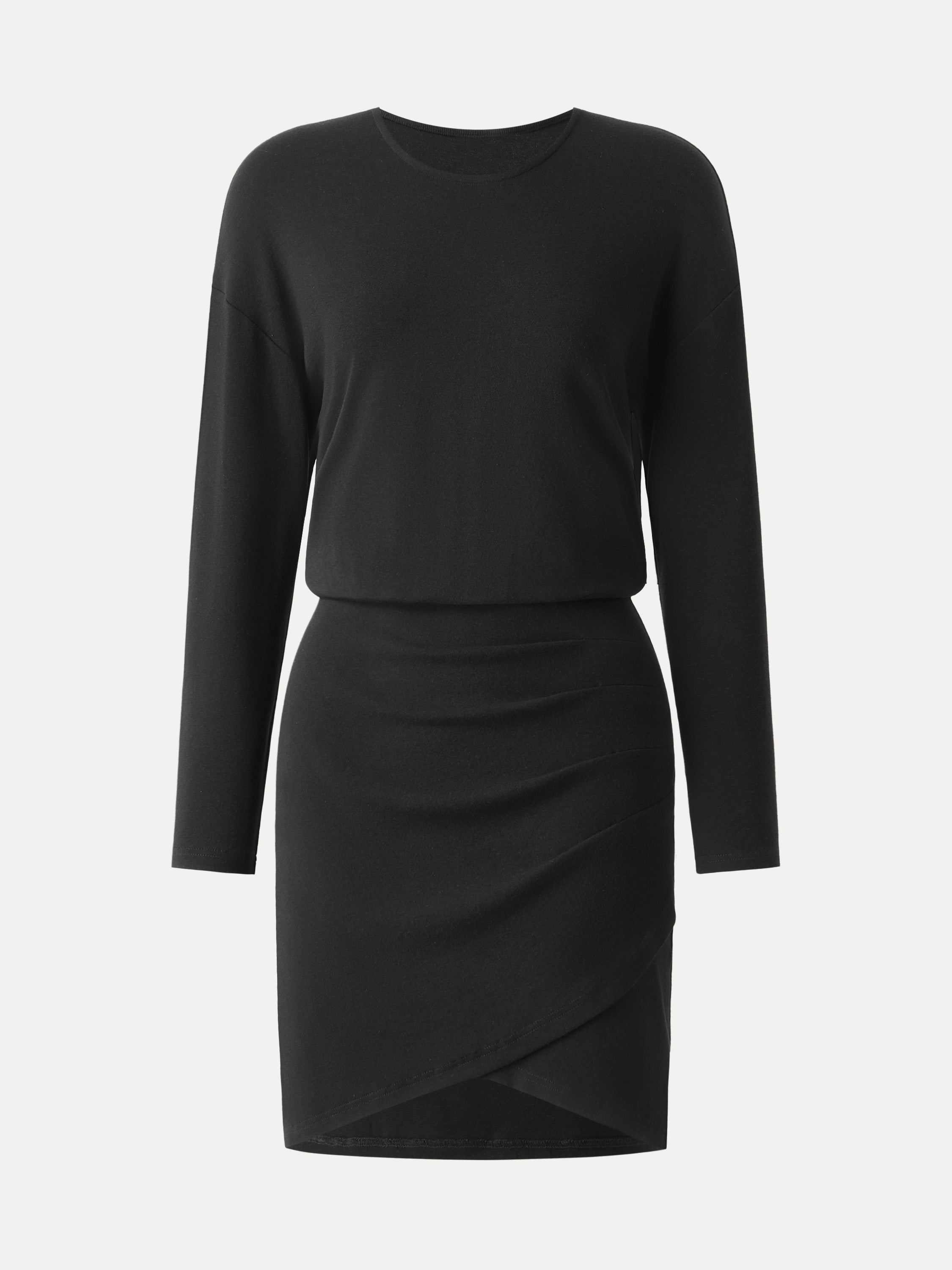 • Round Neck Long Sleeve Surplice Hem Mini Dress