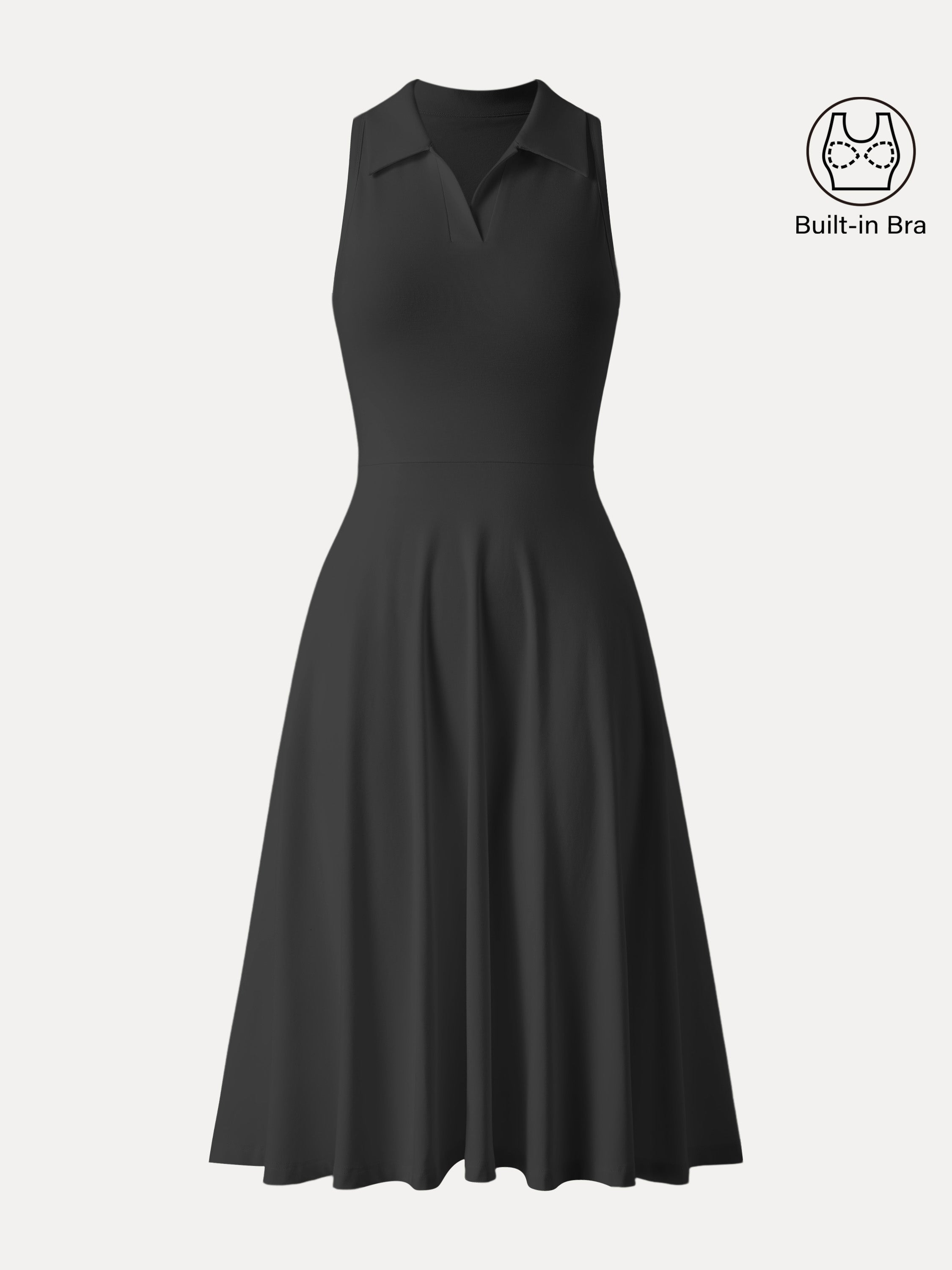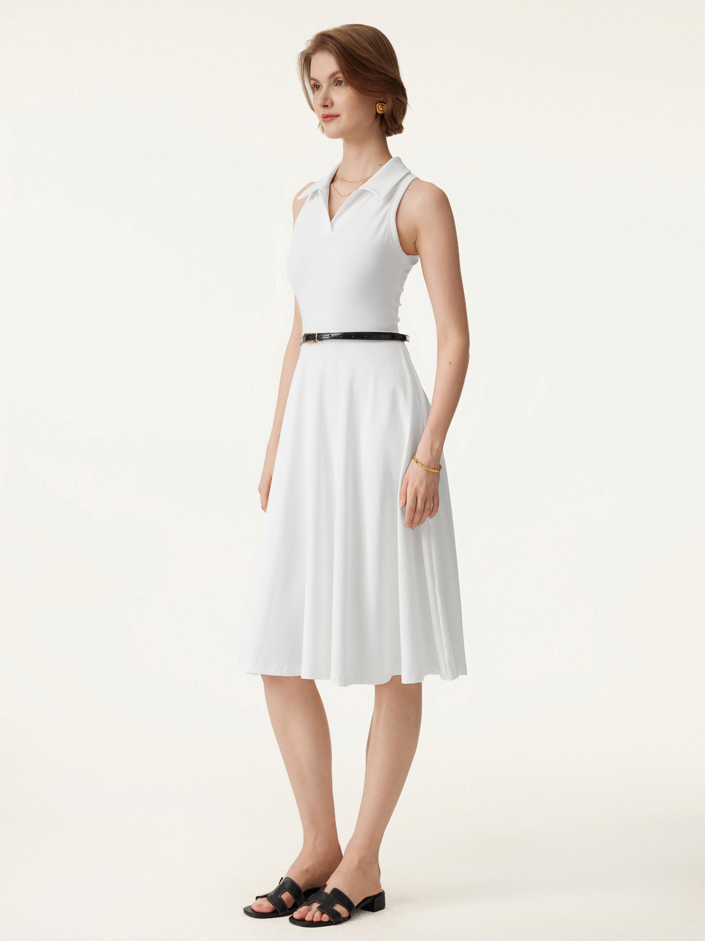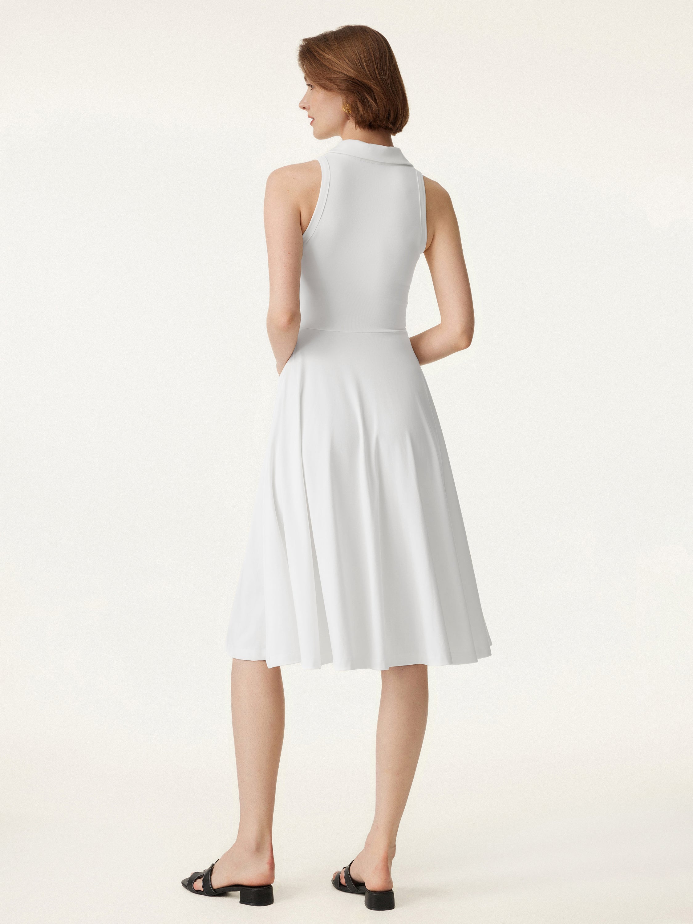 • Stretch Cotton Polo Neck Fit-and-flare Midi Brami Dress with Pockets