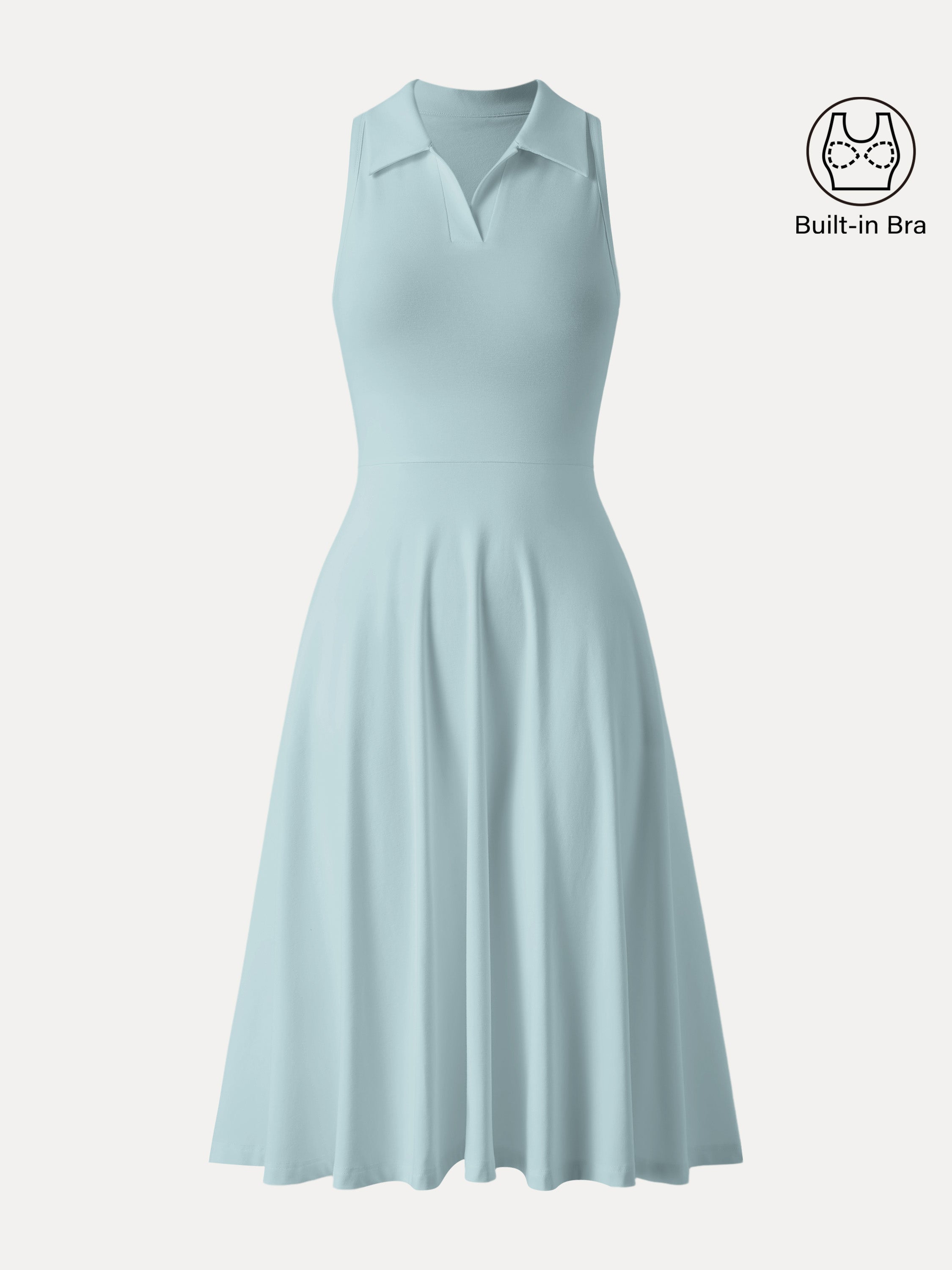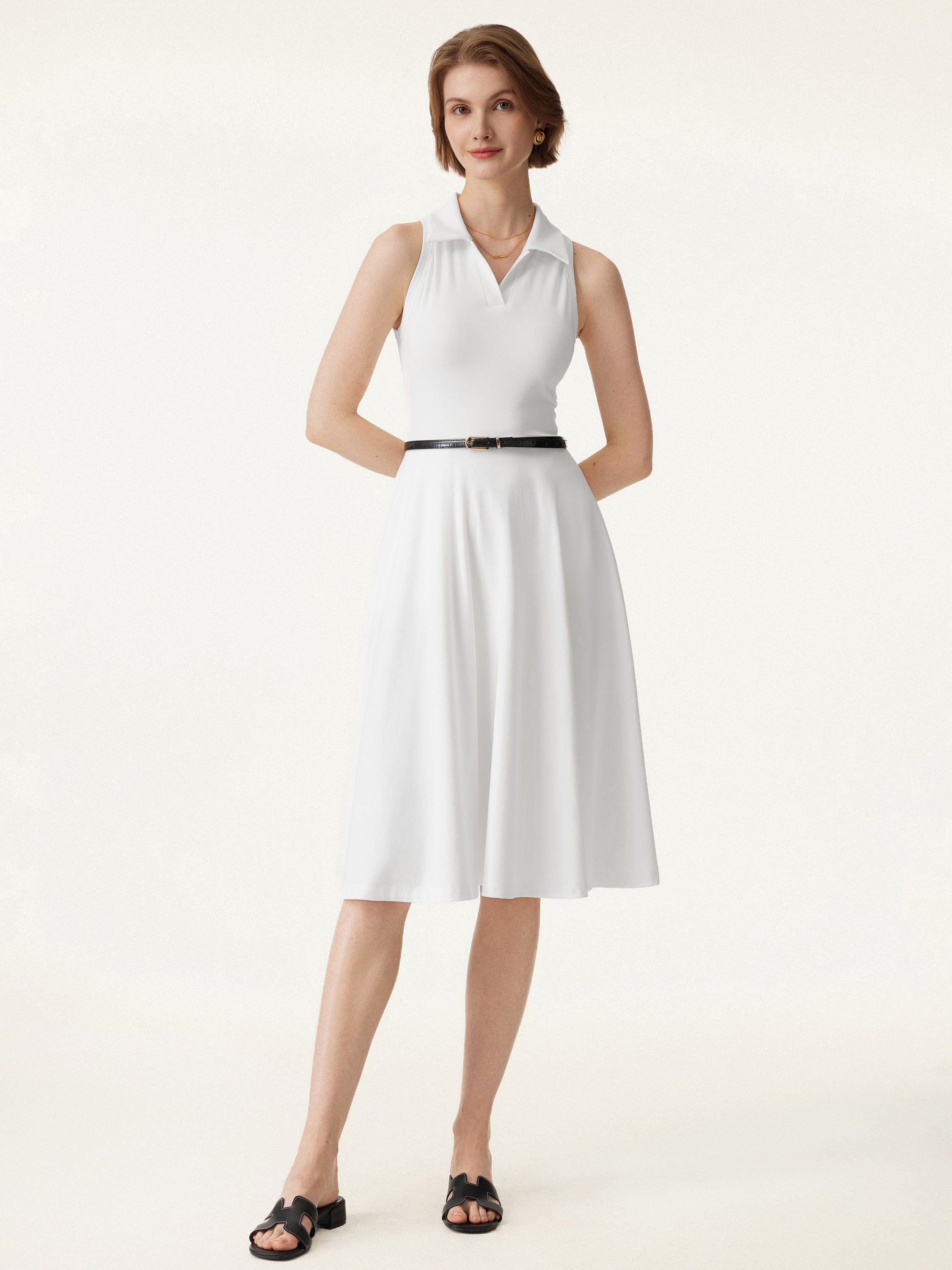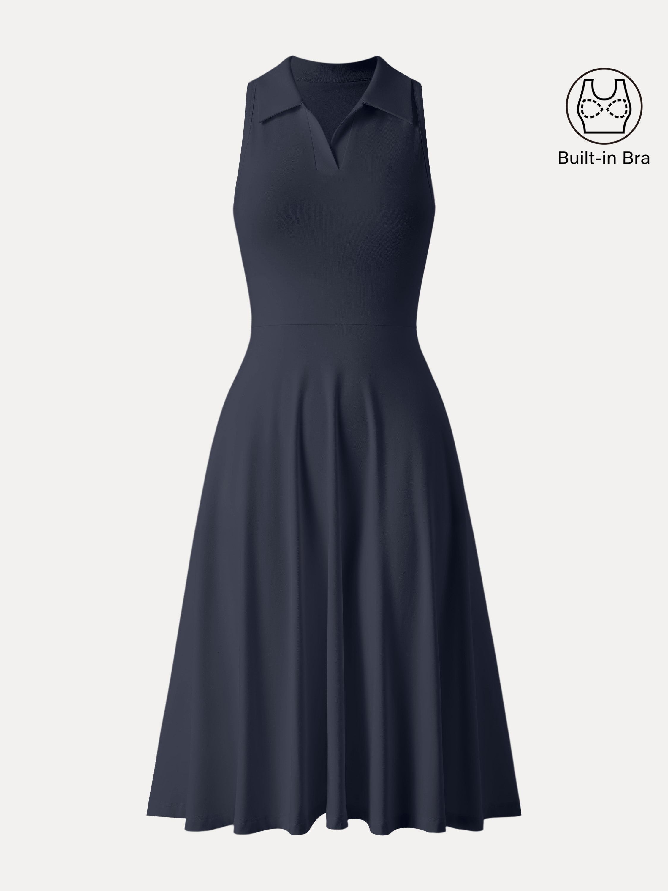 • Stretch Cotton Polo Neck Fit-and-flare Midi Brami Dress with Pockets