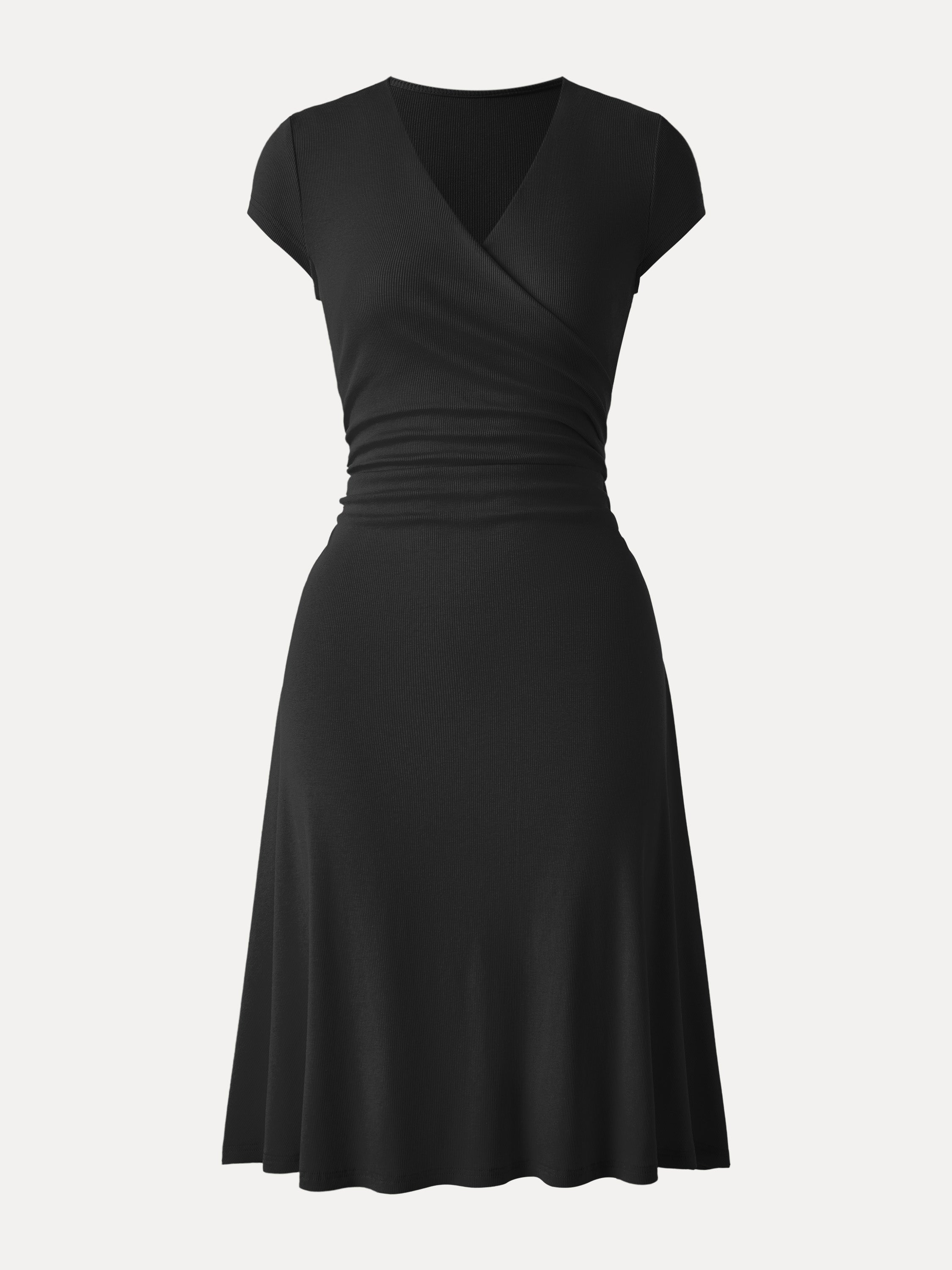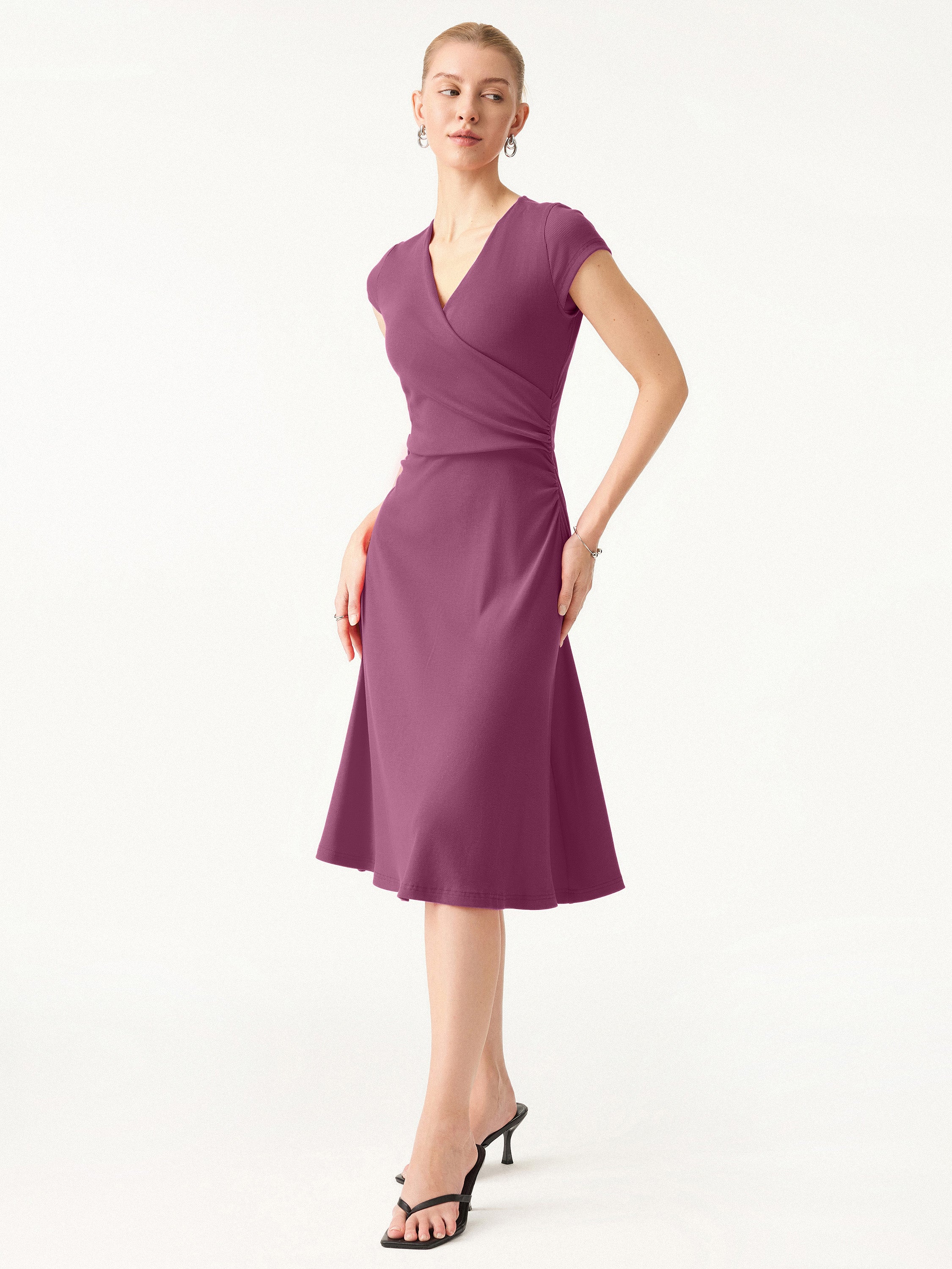 • Stretch Cotton Surplice V-neck Cap Sleeve Midi Dress