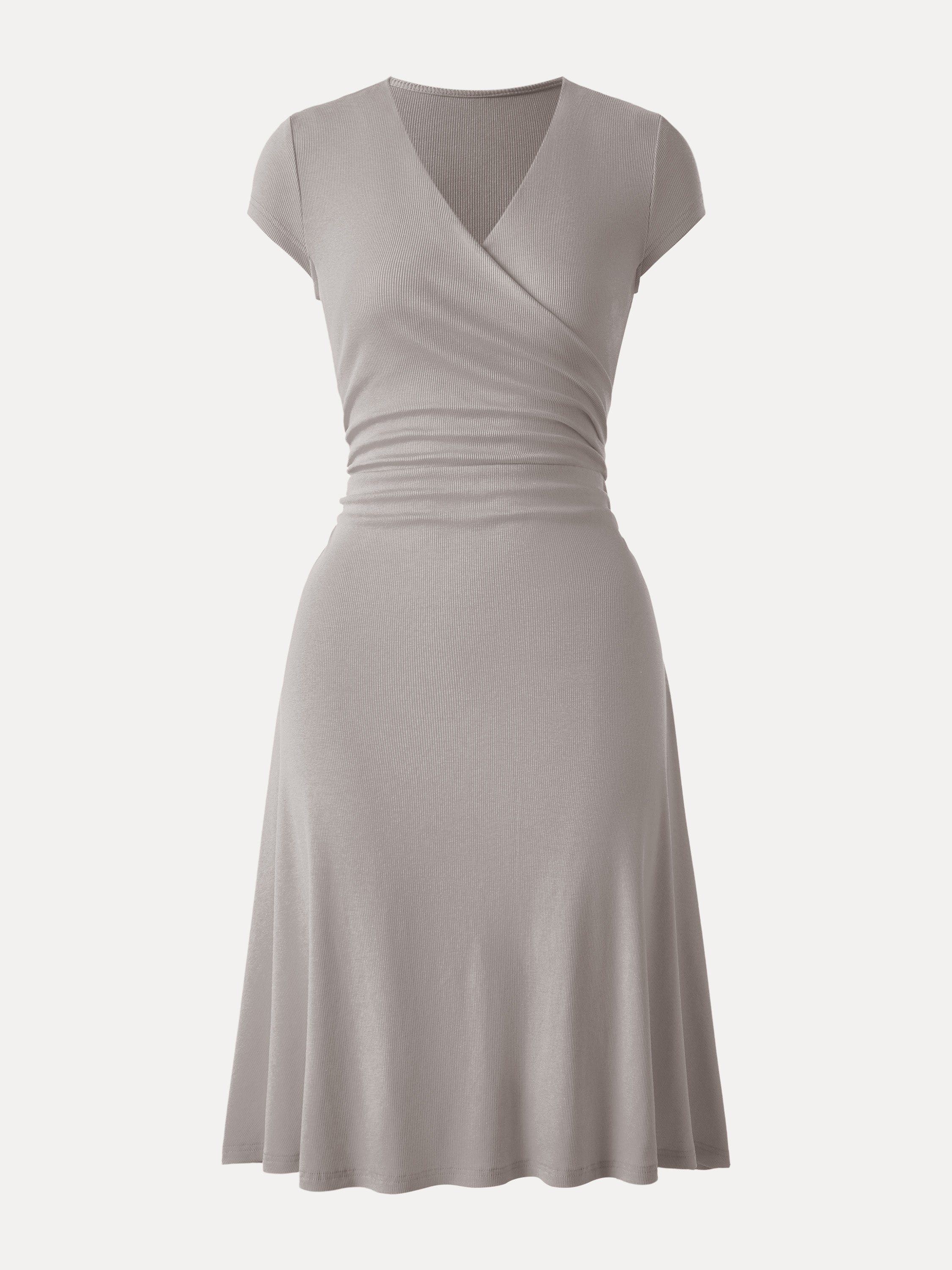 Stretch Cotton Surplice V-neck Cap Sleeve Midi Dress