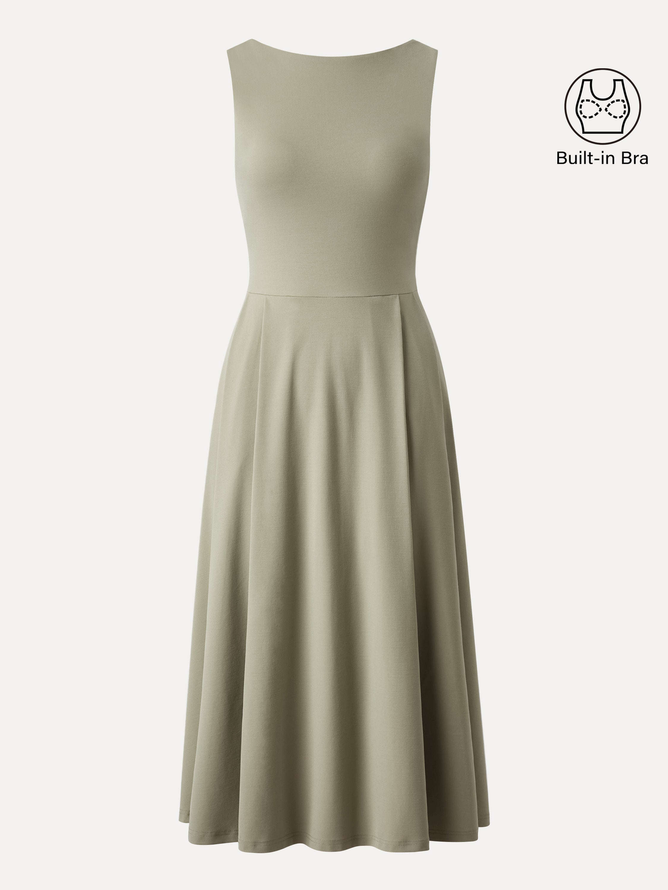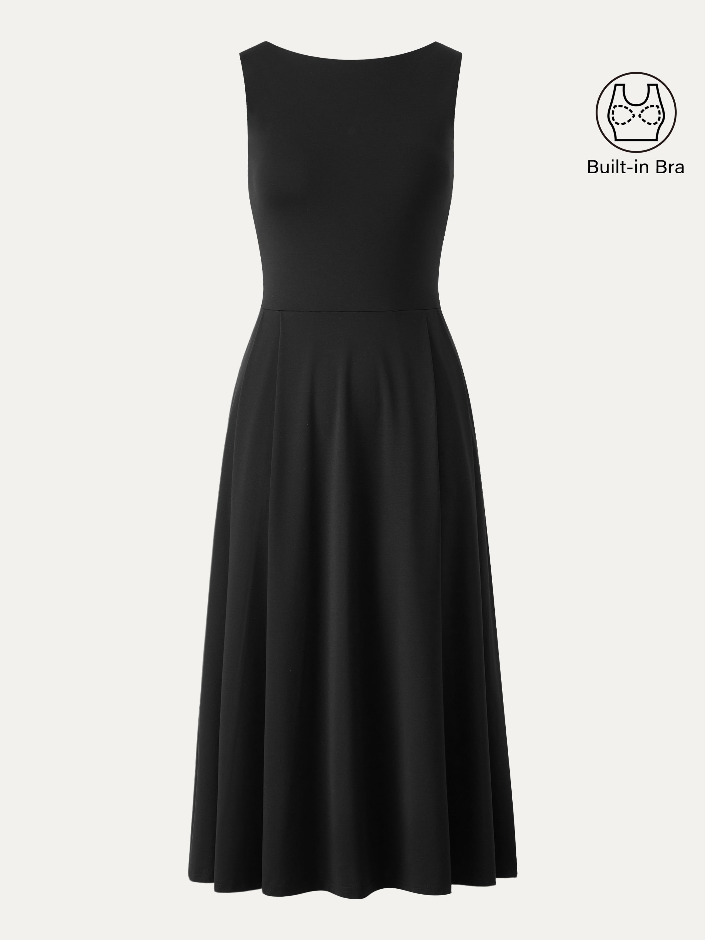 Boatneck Bamboo Ponte Brami Midi Dress with Pockets