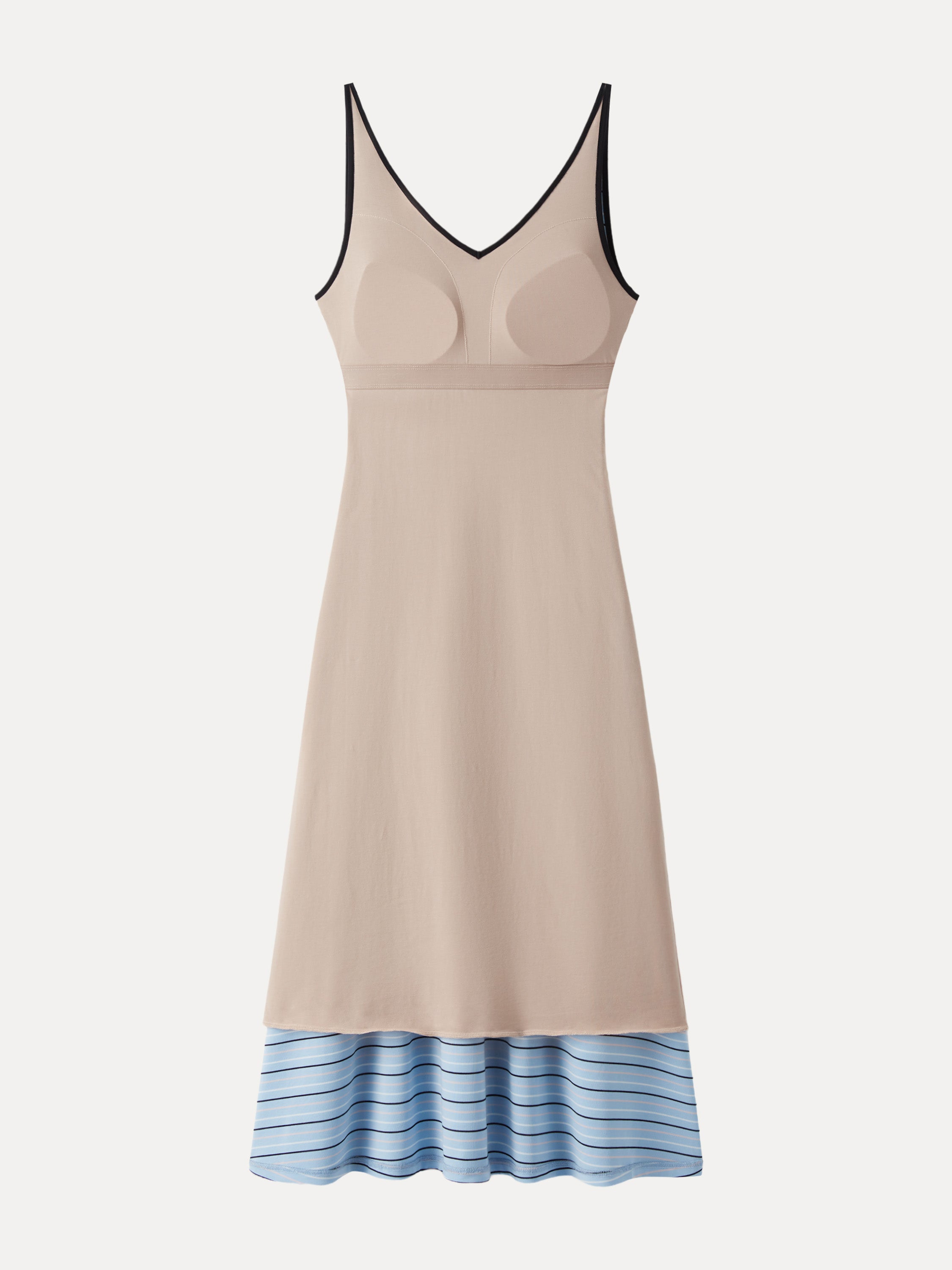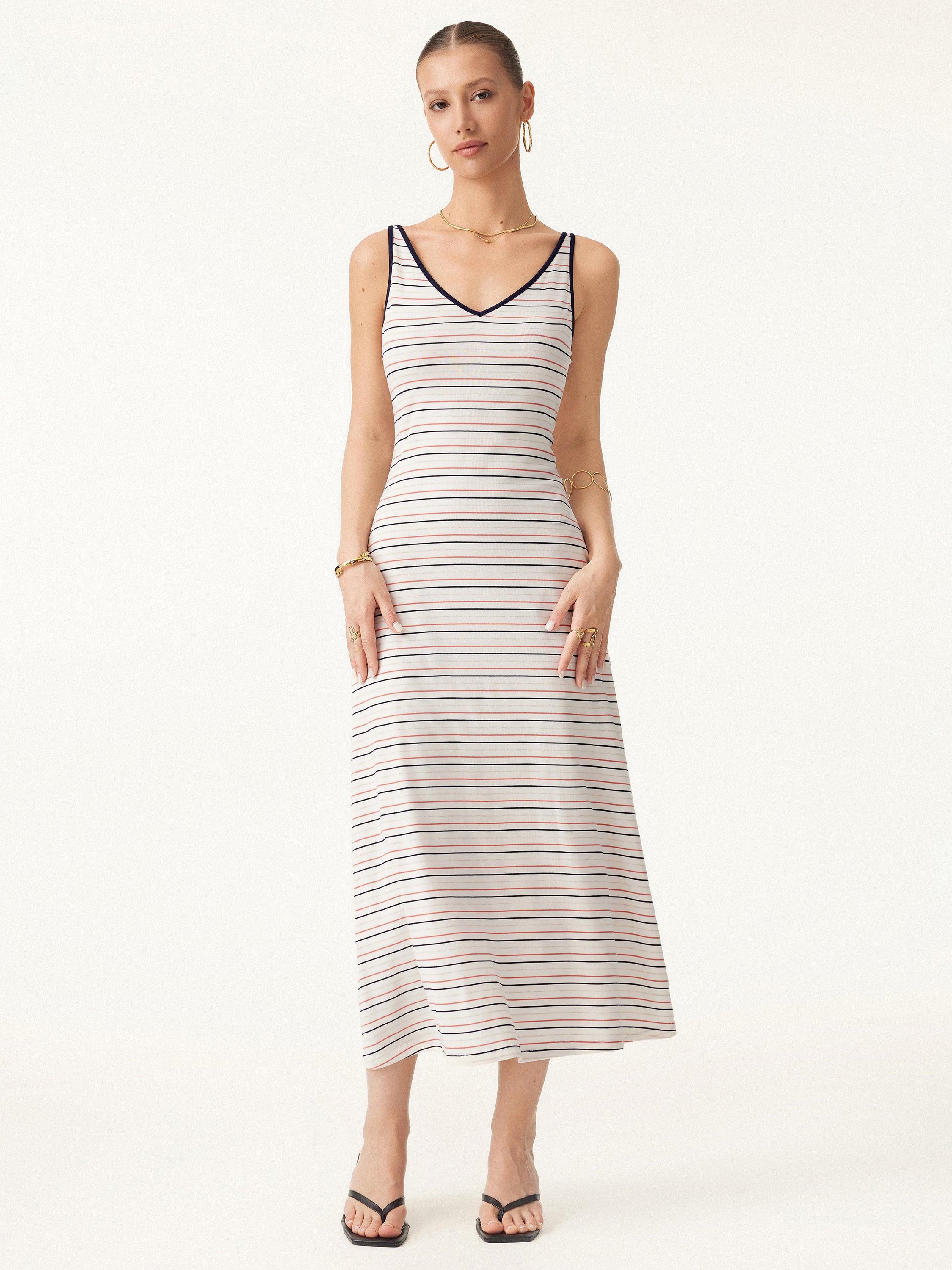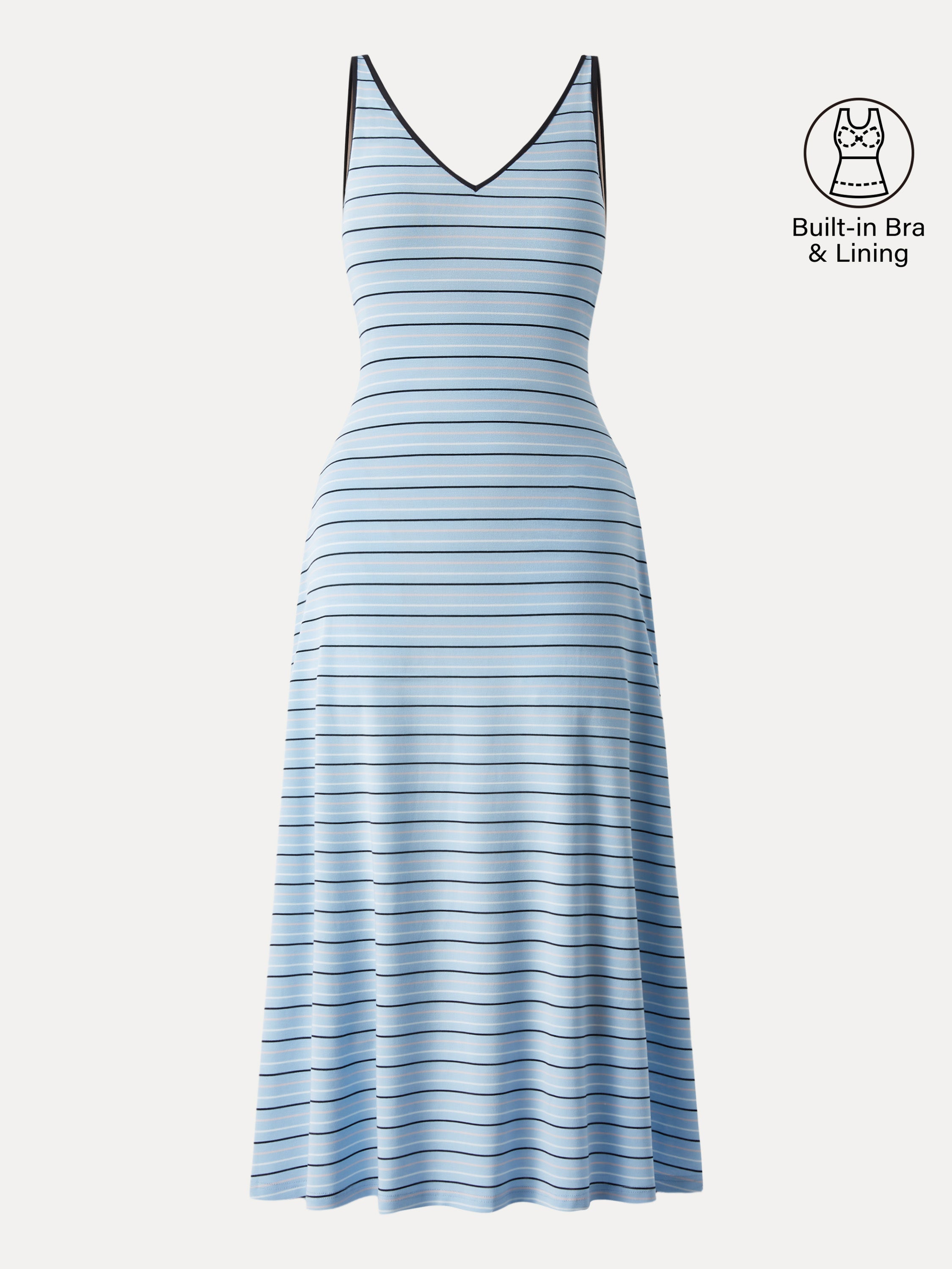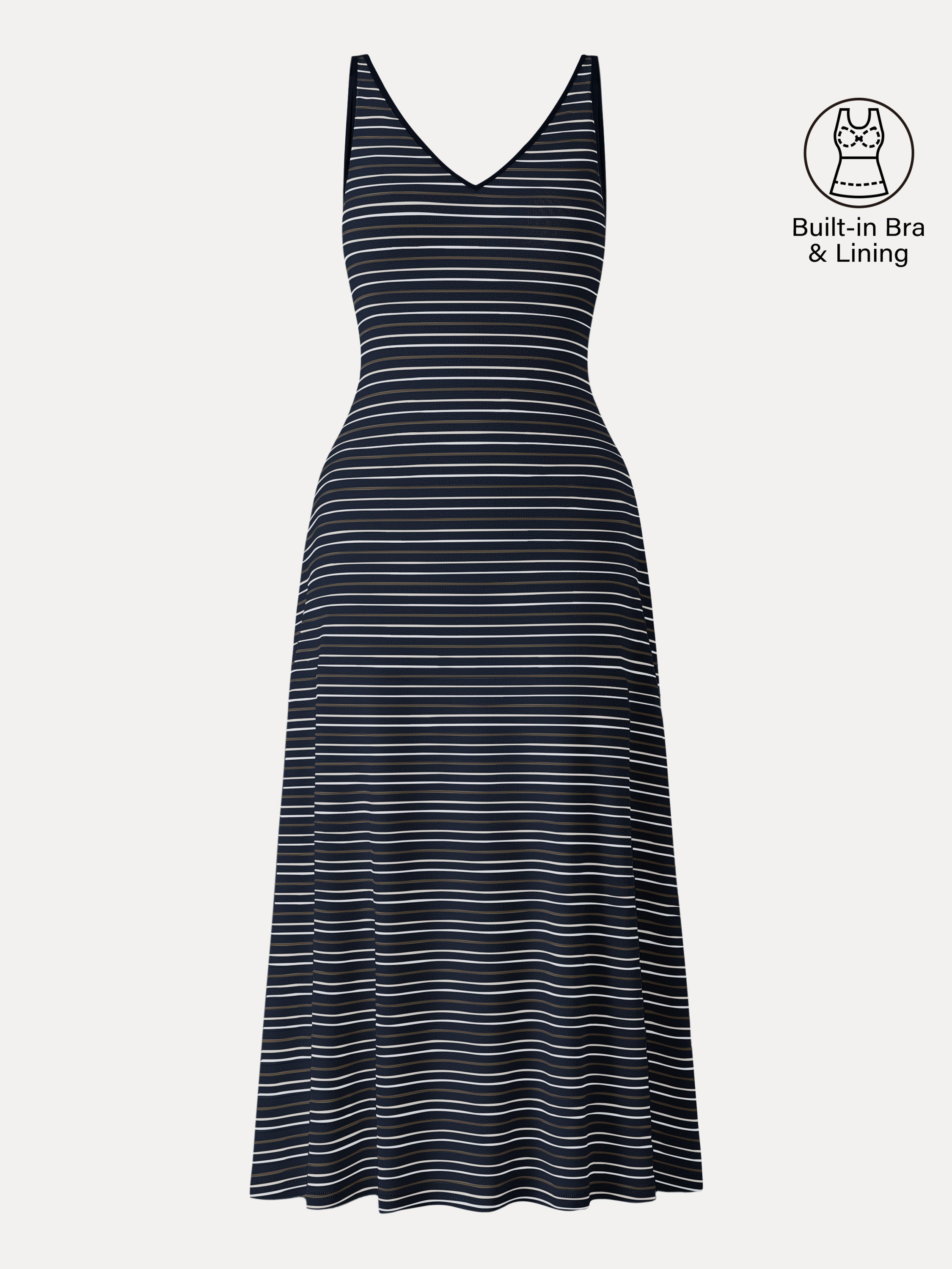 • V-neck Low Back Striped Midi Brami Dress with Pockets
