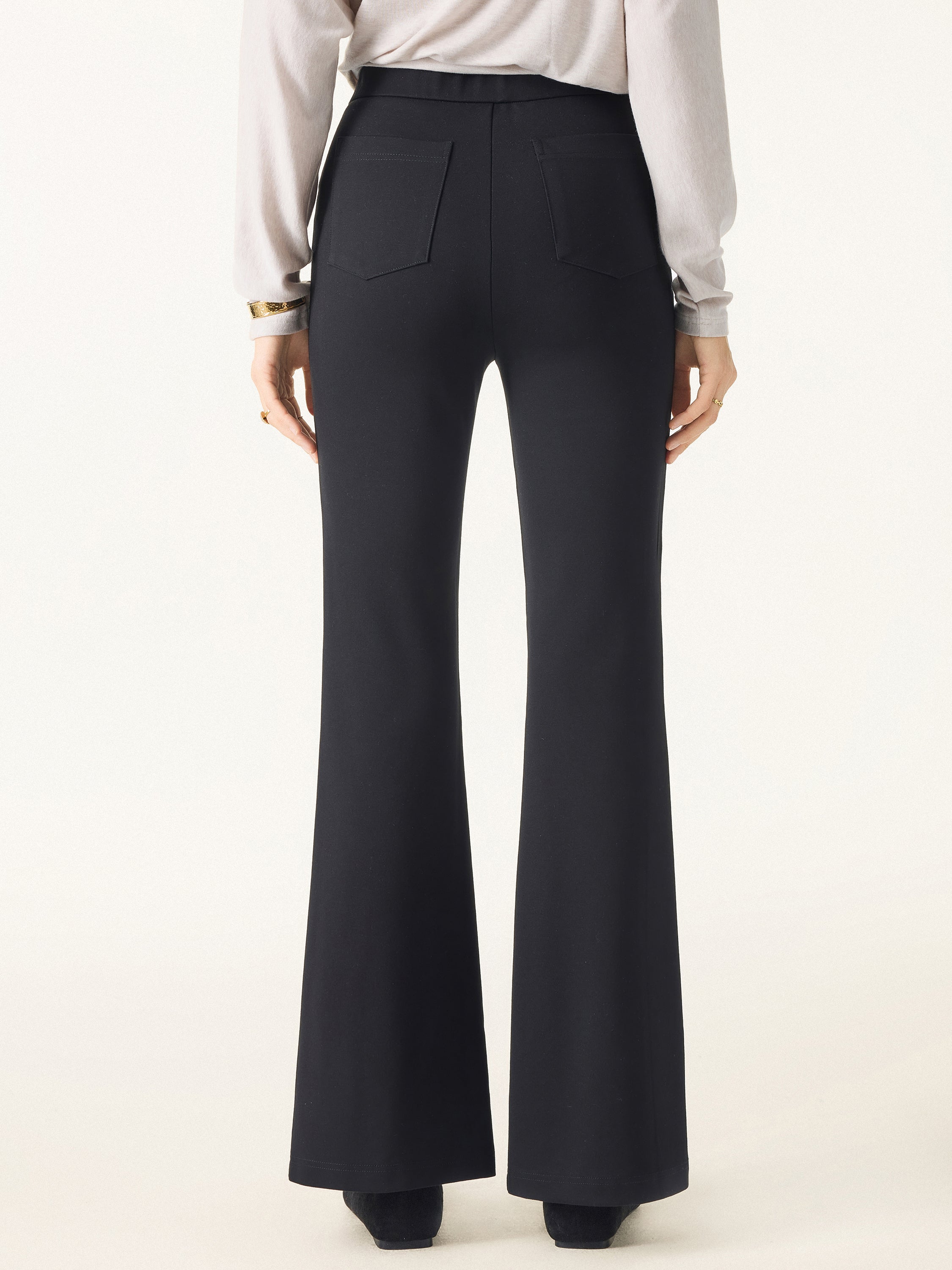 2Pcs Set Gathered Long Sleeve Brami & High Rise Pull-on Flared Petite Pants