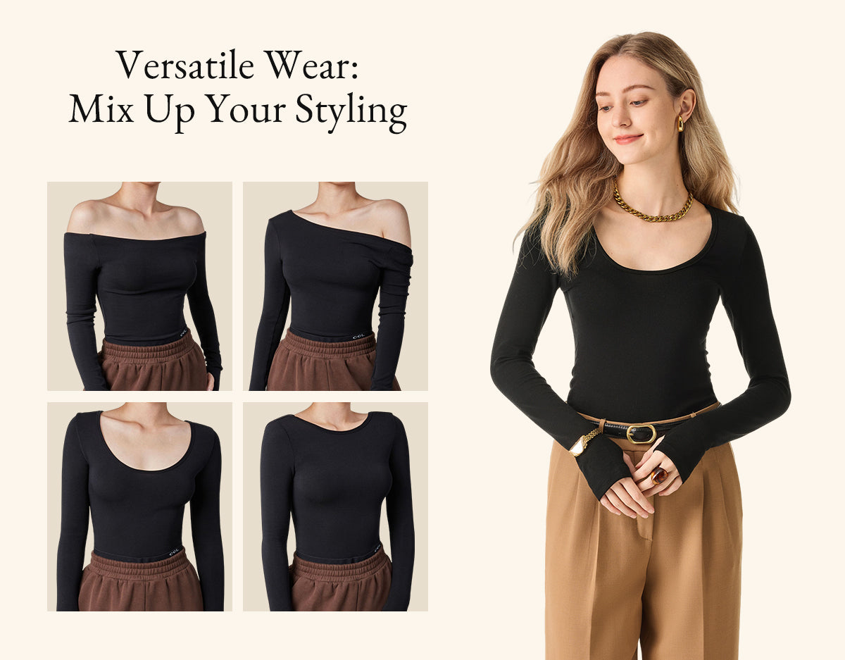 2Pcs Set Lyocell Cashmere Multi-Wear Long Sleeve Top with Thumbholes