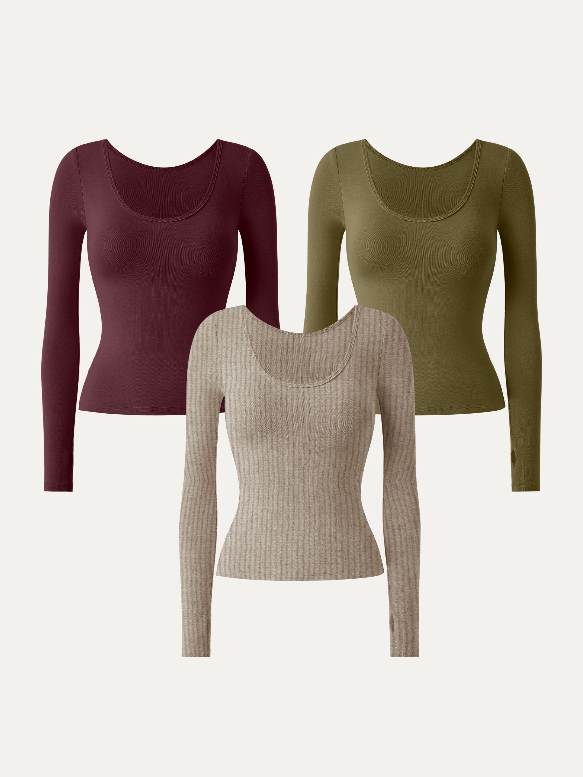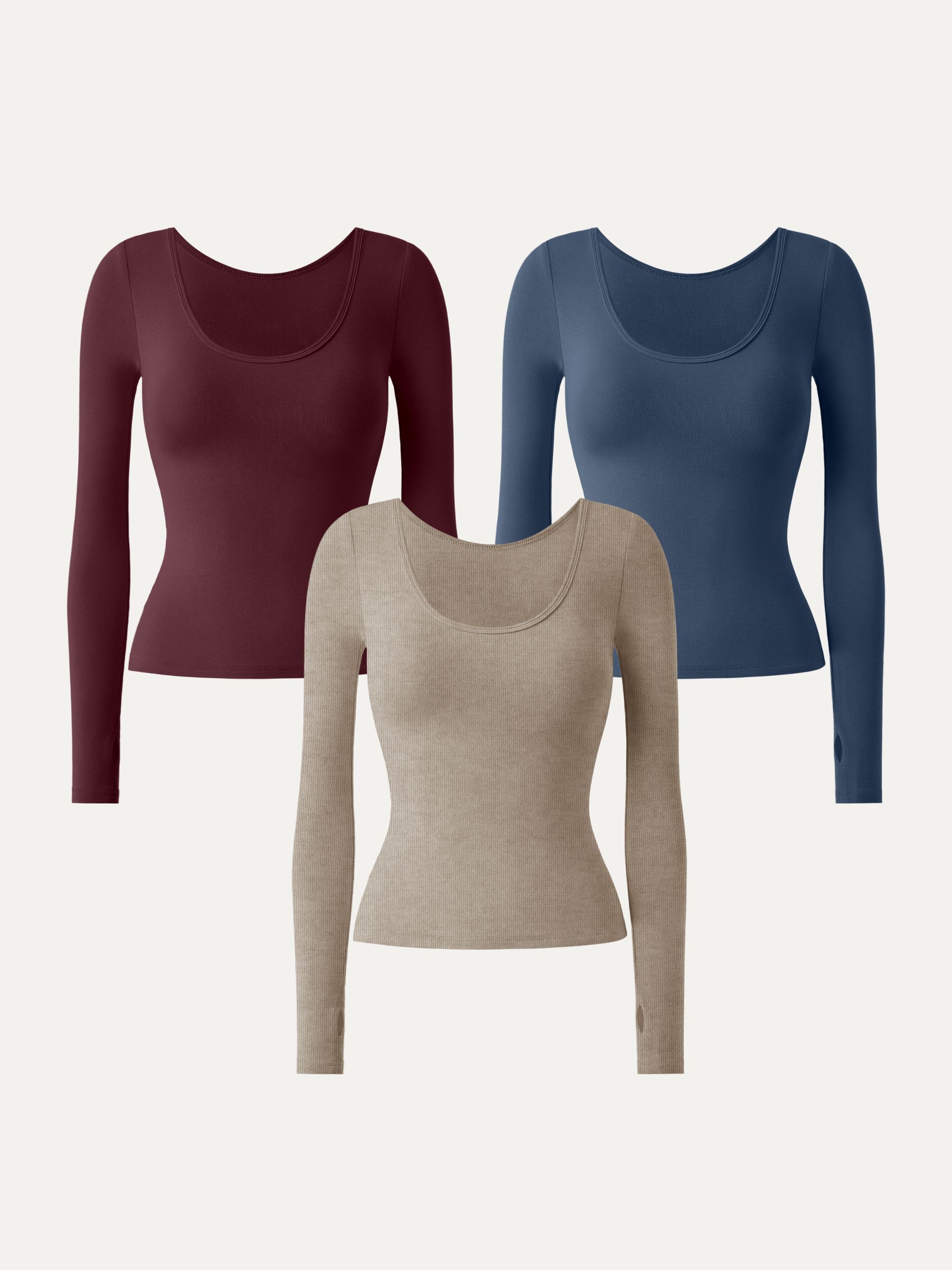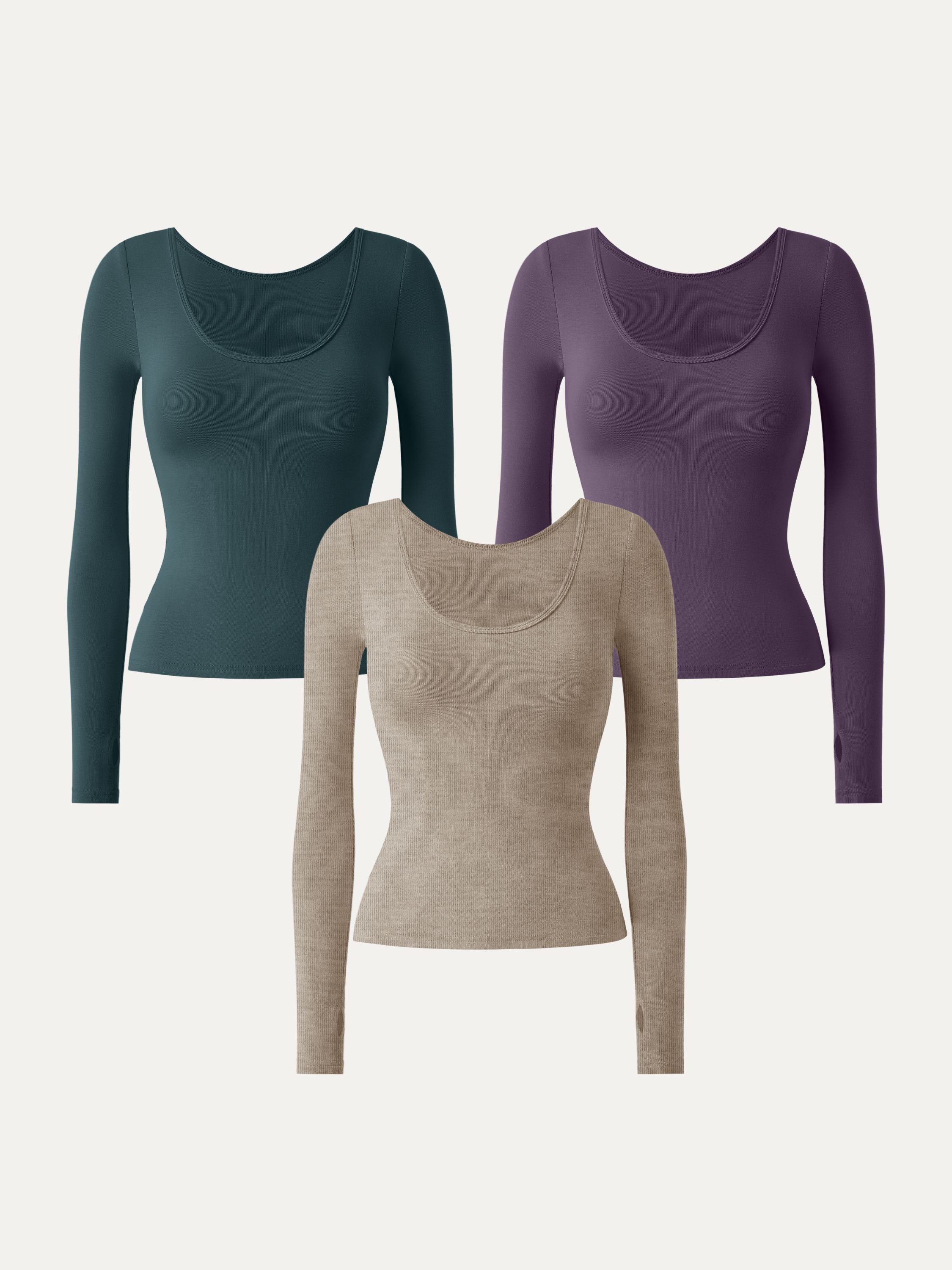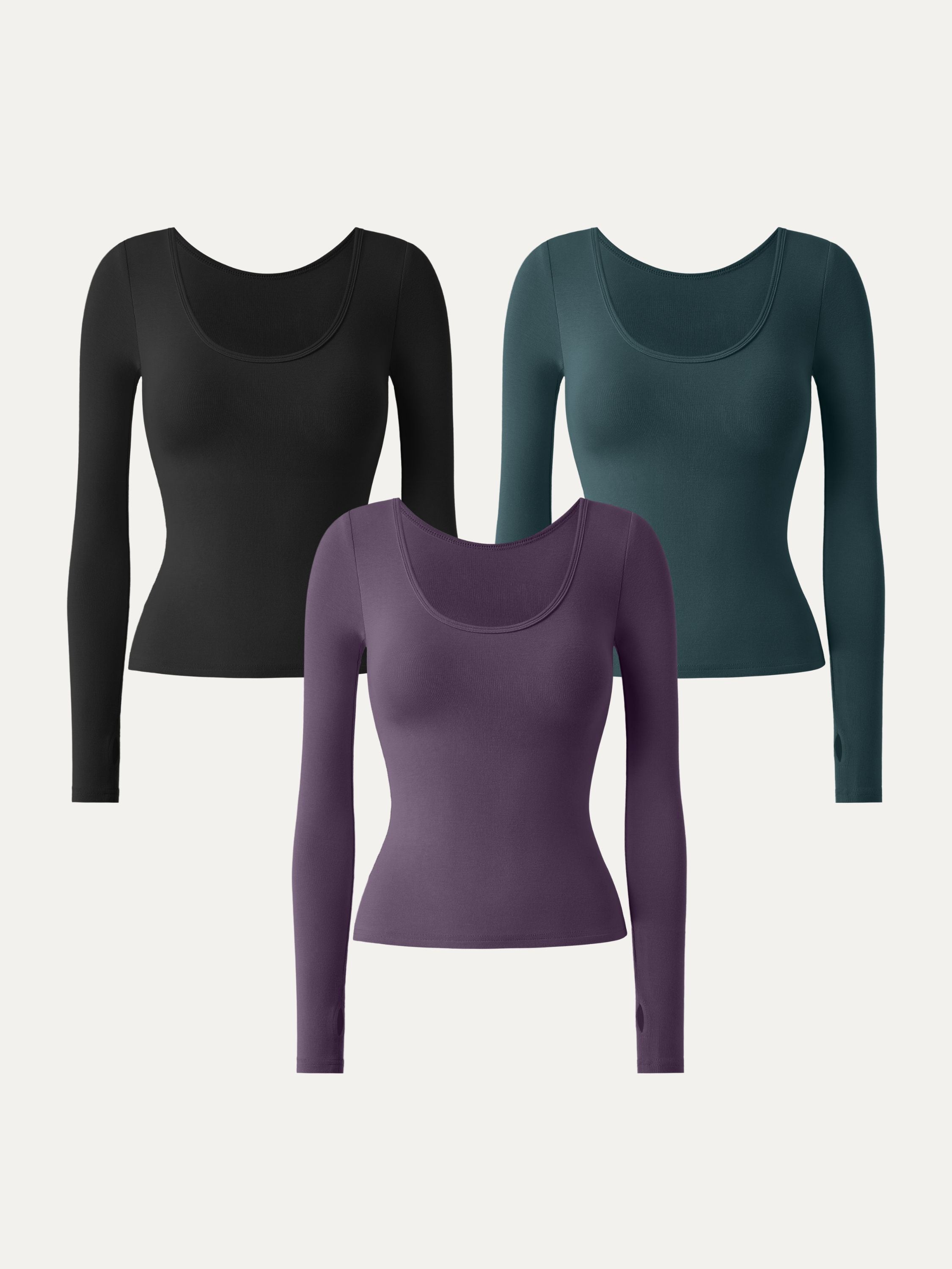 3Pcs Set Essential Lyocell Cashmere Multi-Wear Long Sleeve Top with Thumbholes