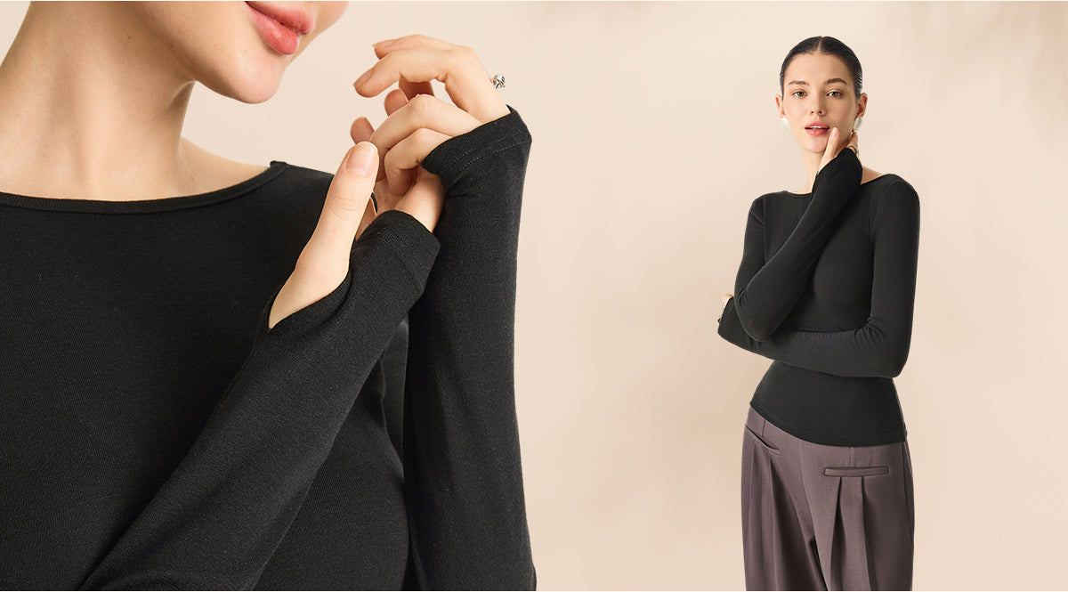 Essential Lyocell Cashmere Multi-Wear Long Sleeve Top with Thumbholes