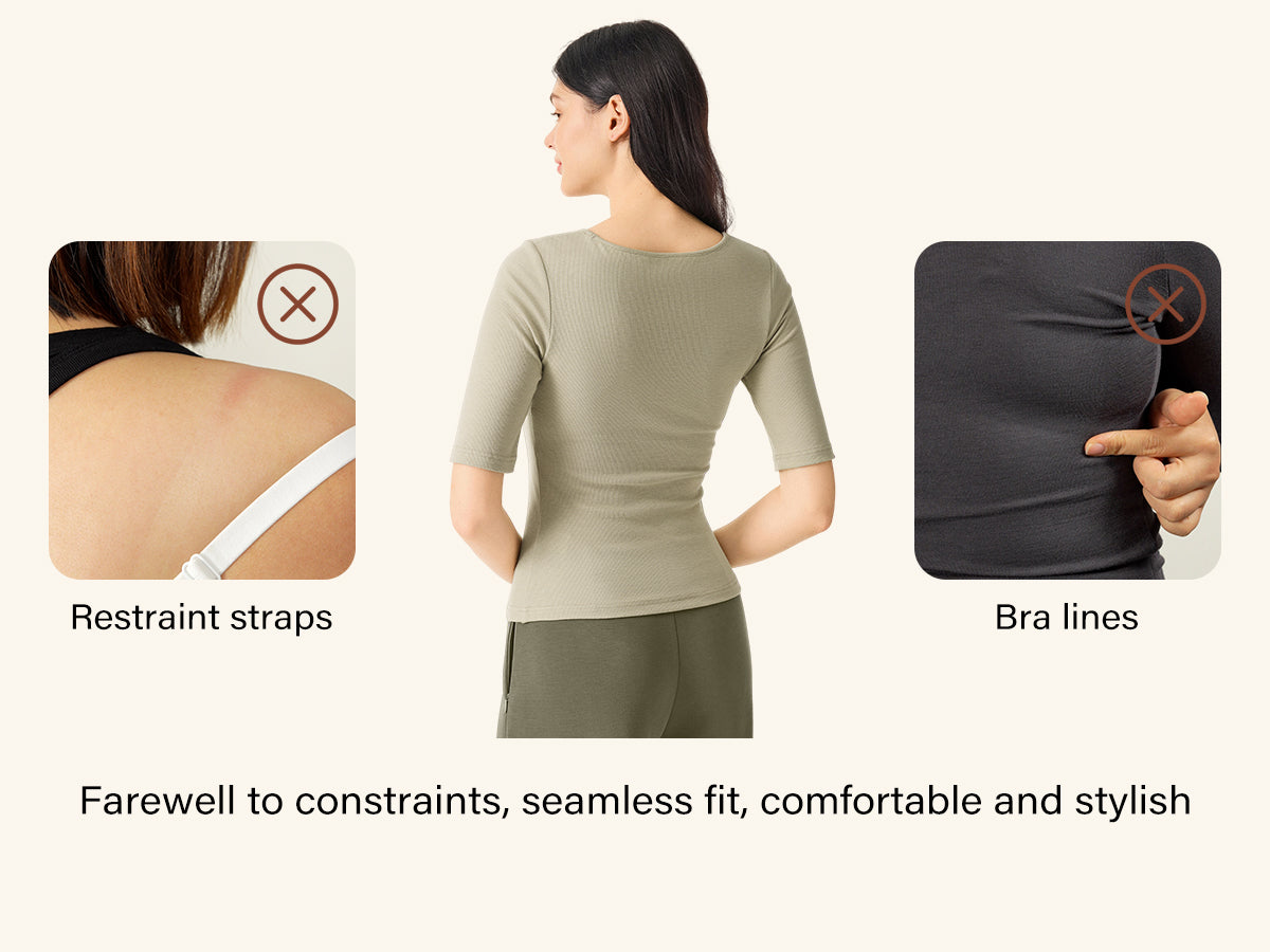• Essential Stretch Cotton Square Neck Elbow Length Sleeve Brami