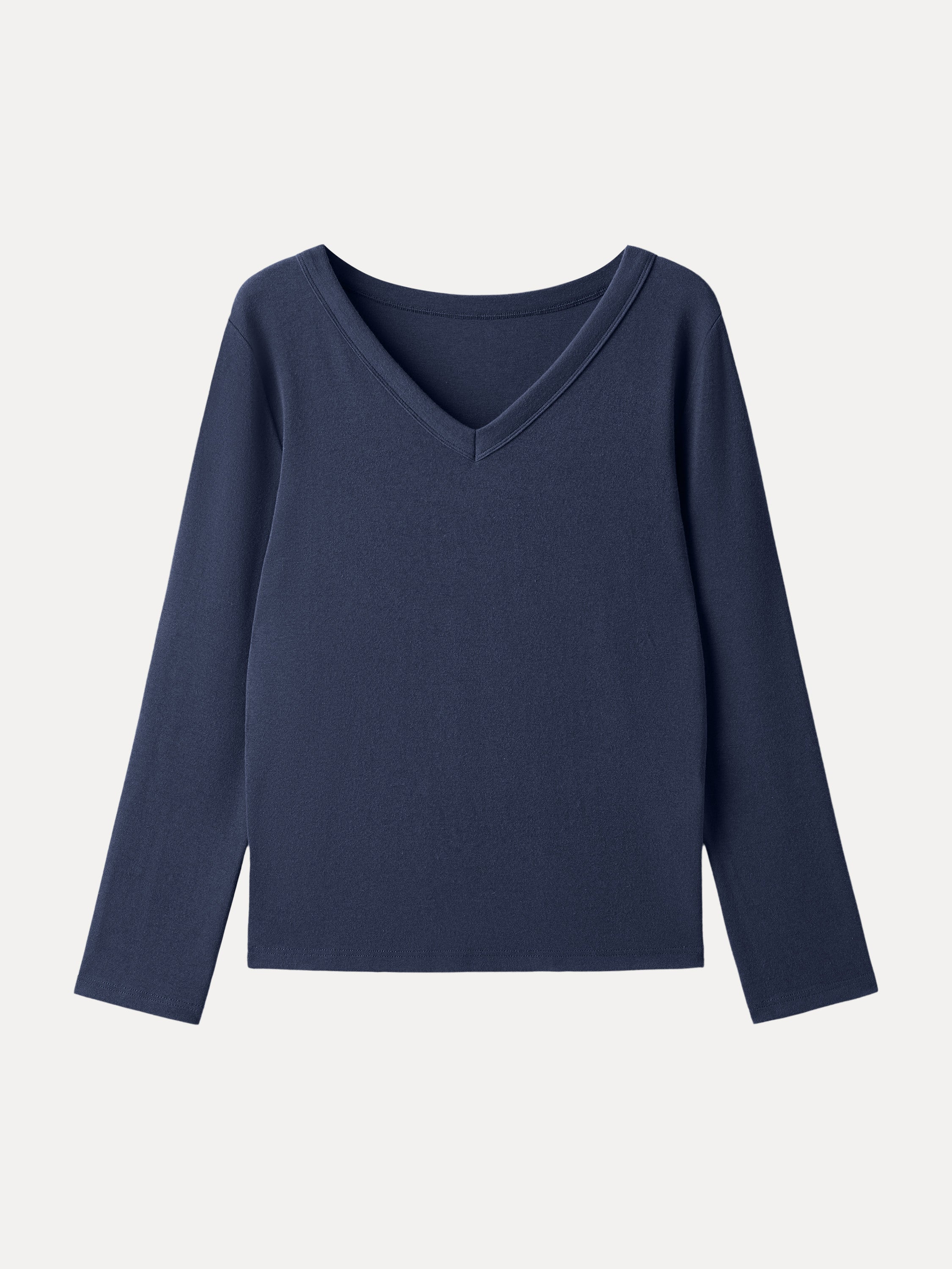• Essential V-neck Long Sleeve Top with Close-fit Hem