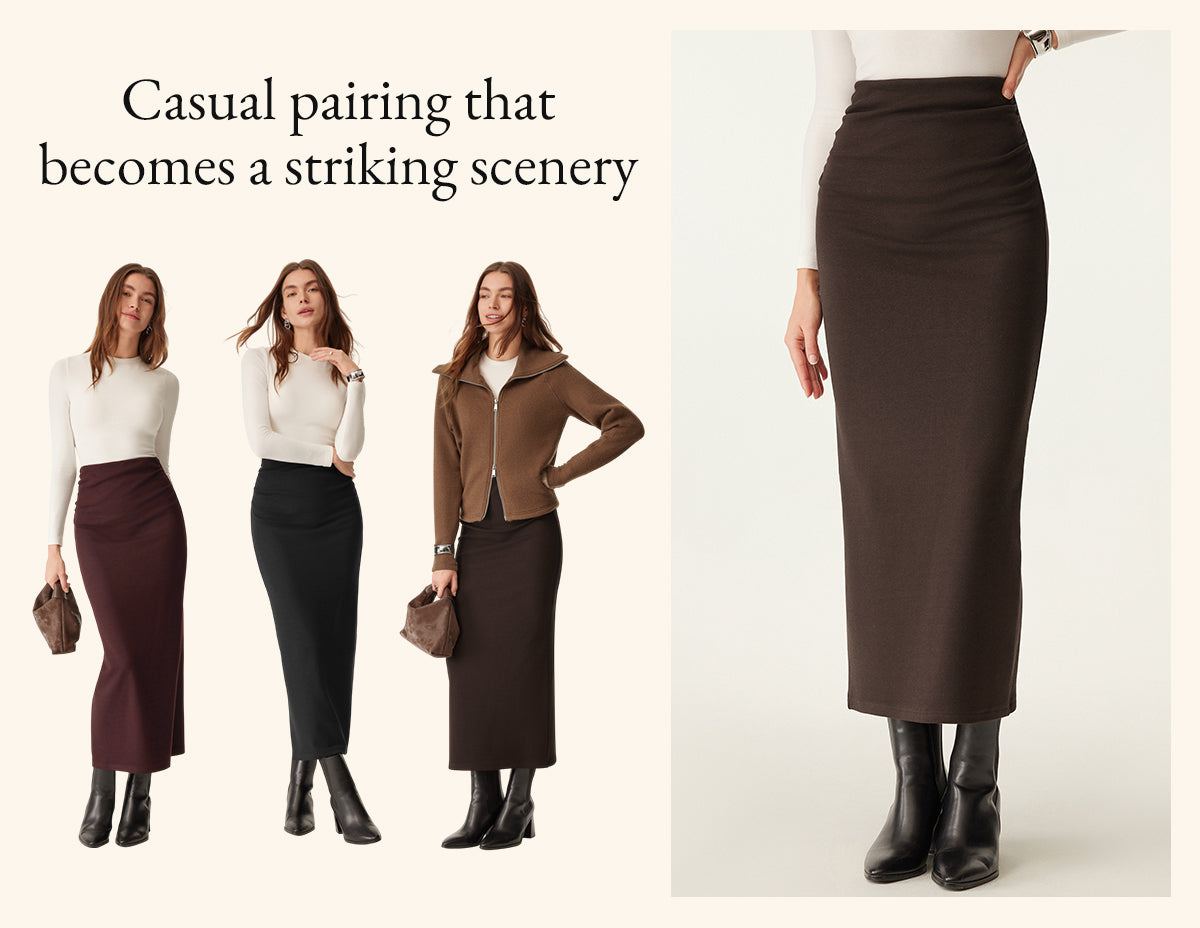 Heat-Tech Ruched Side Pencil Maxi Skirt