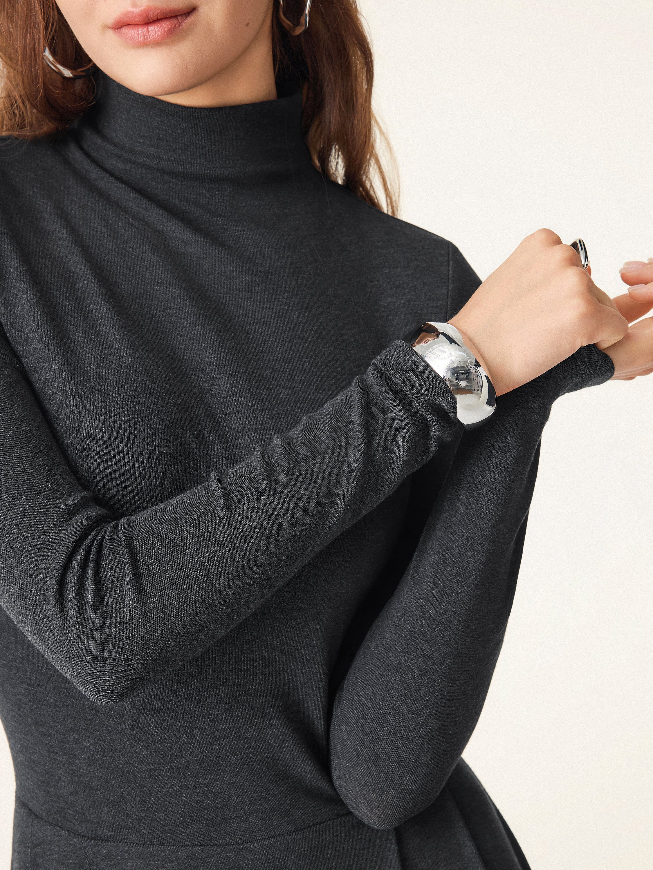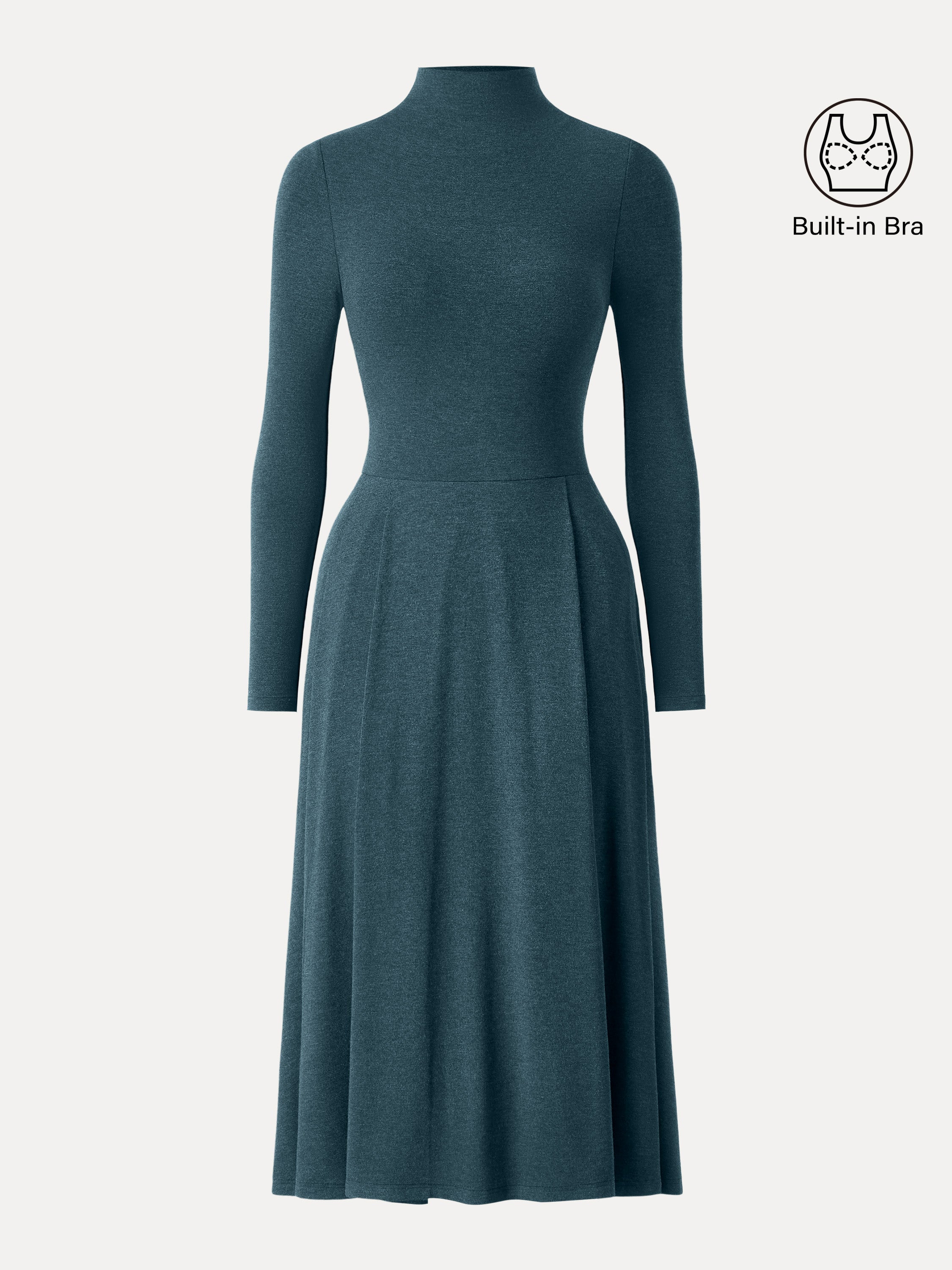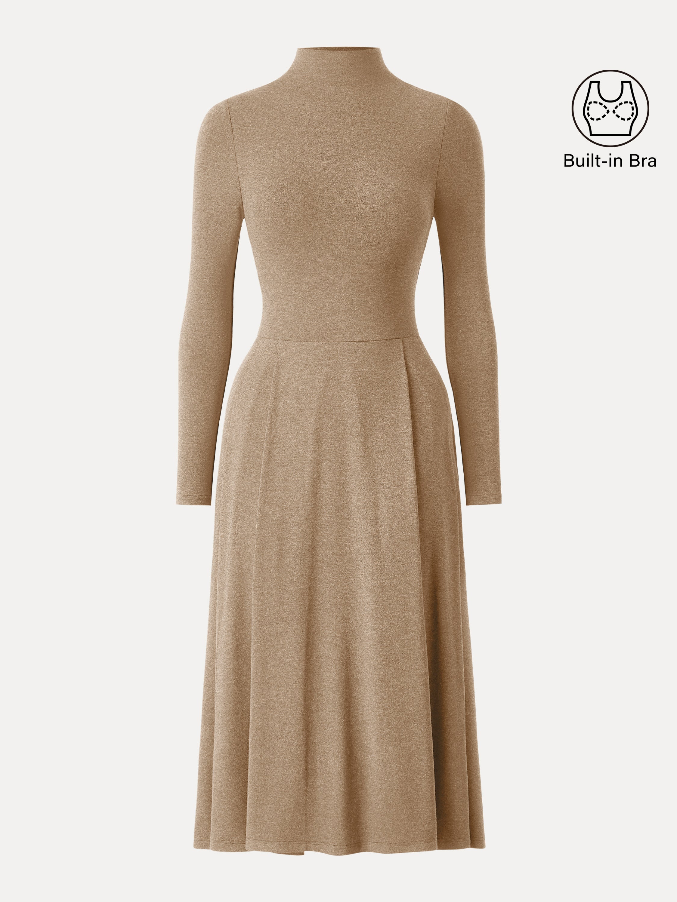 Light Warm Mockneck Pleated Midi Brami Dress with Pockets
